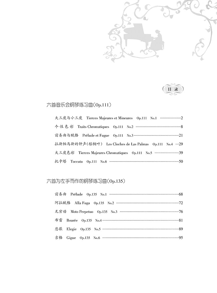 沈阳音乐学院李依桐老师对书中所选的12首乐曲均作了详细的演奏分析,能帮助演奏者了解这两套作品的技术特点和风格特征,以便在演奏中能够更准确地把握作品。同时笔者还结合了自身的经验对这部练习曲提出了一些演奏观点,希望能够帮助演奏者更快的掌握其中的技术难点,对演奏者学习、演奏这两套练习曲提供有效的帮助。