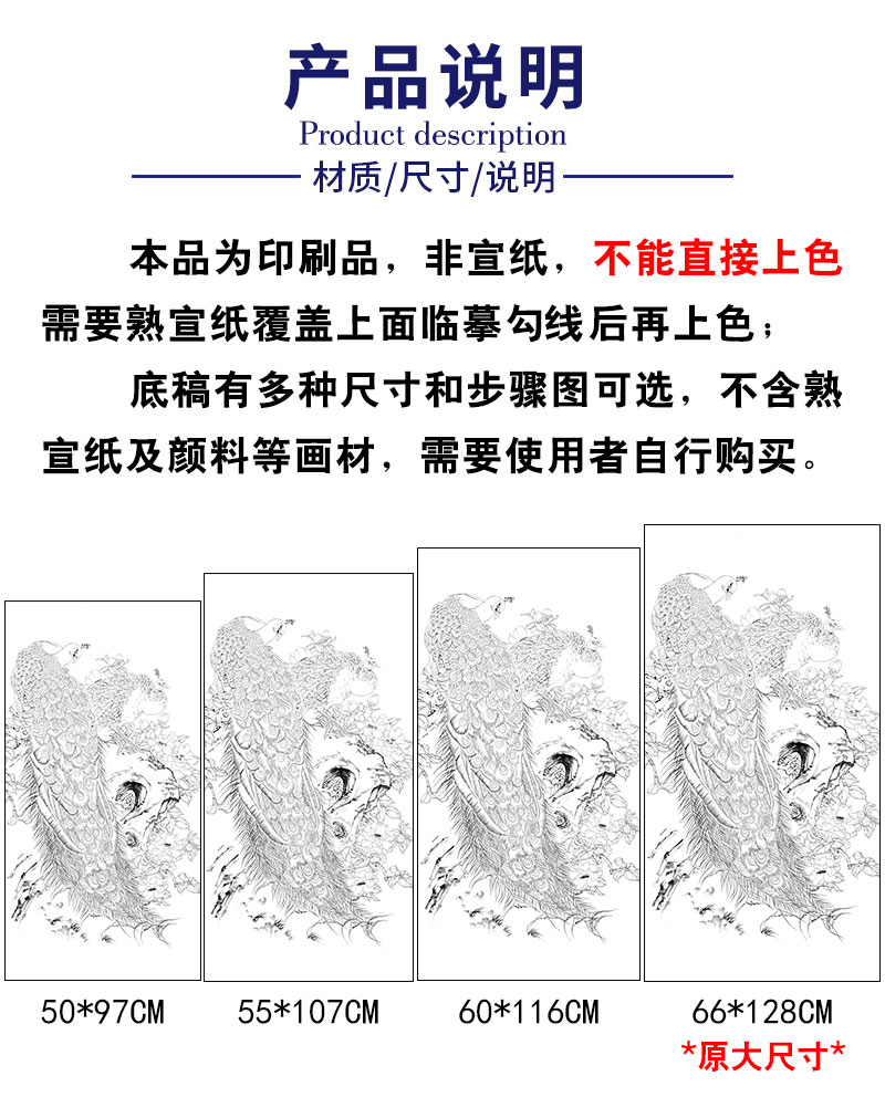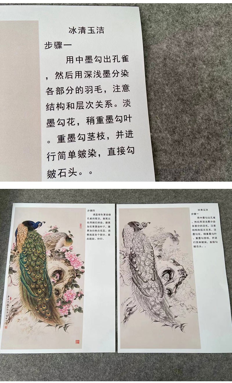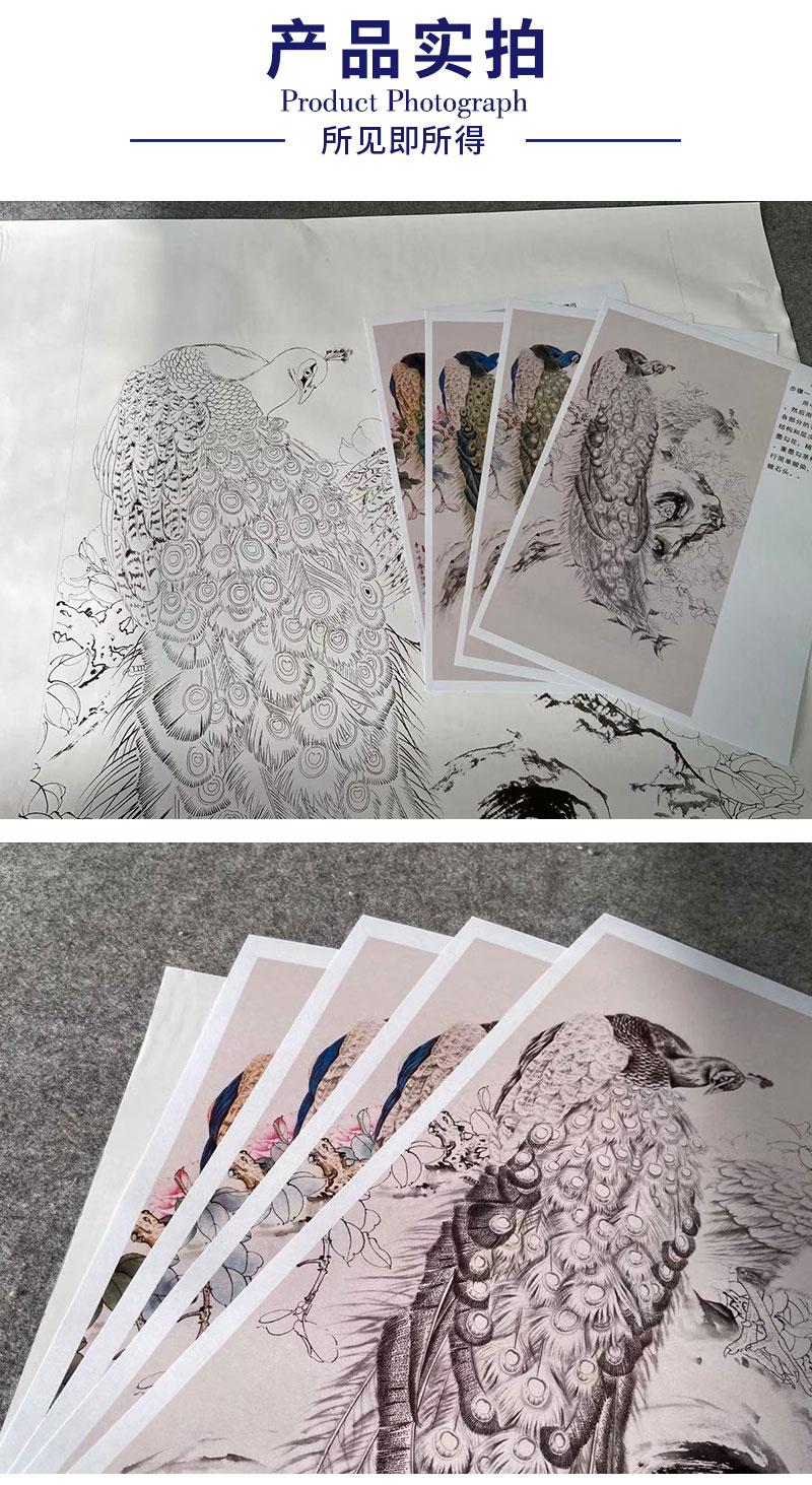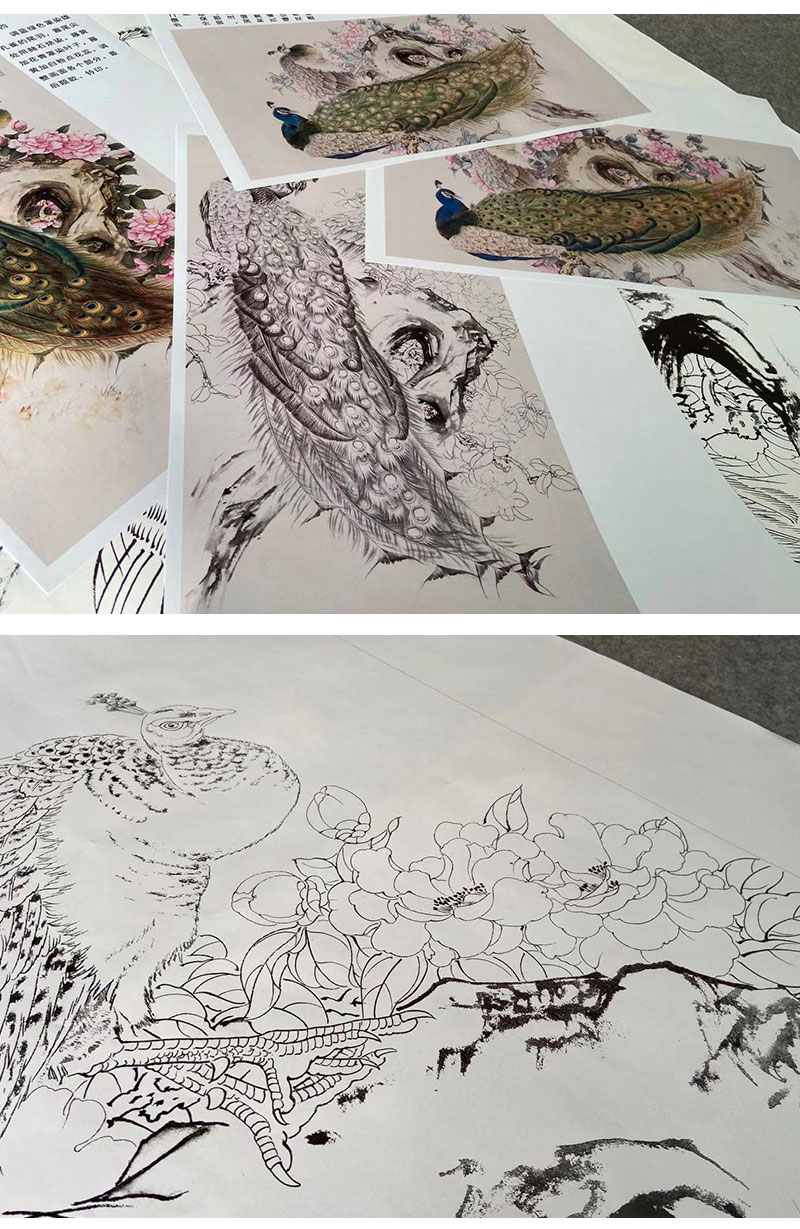 【有步骤】陈军四尺工笔画白描底稿《冰清玉洁》孔雀初学者临摹花鸟线稿CJ29