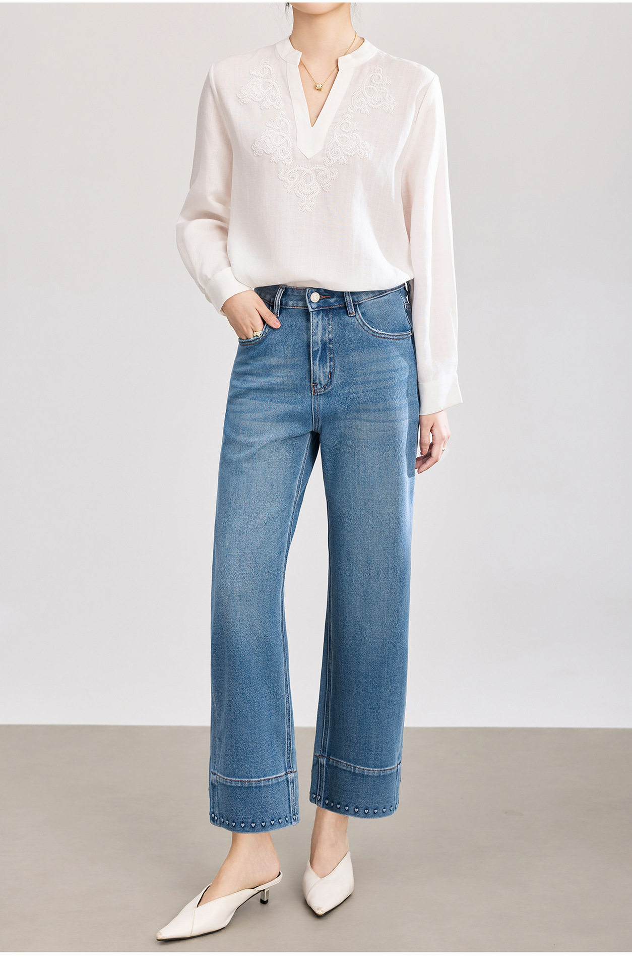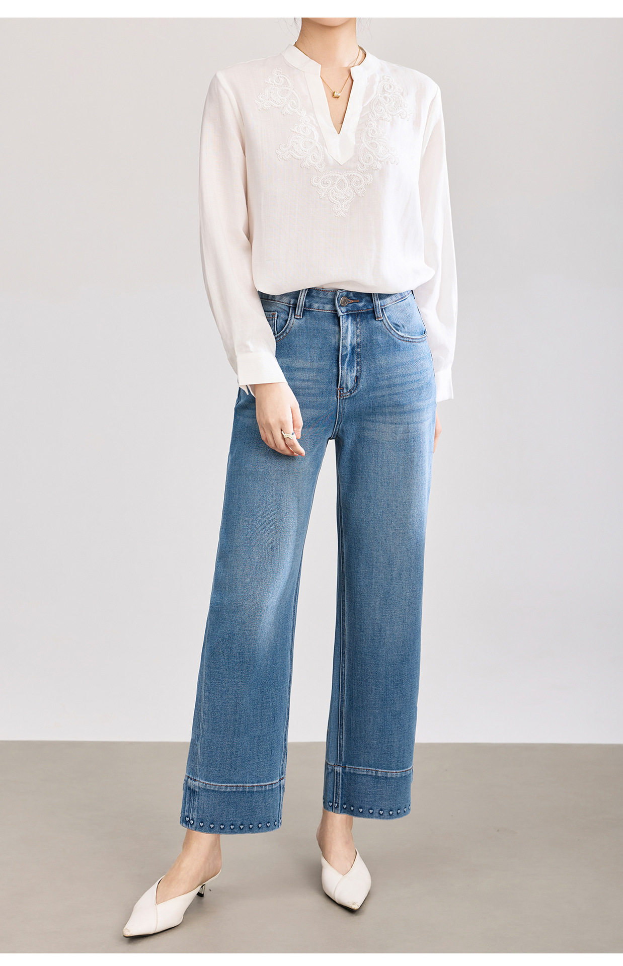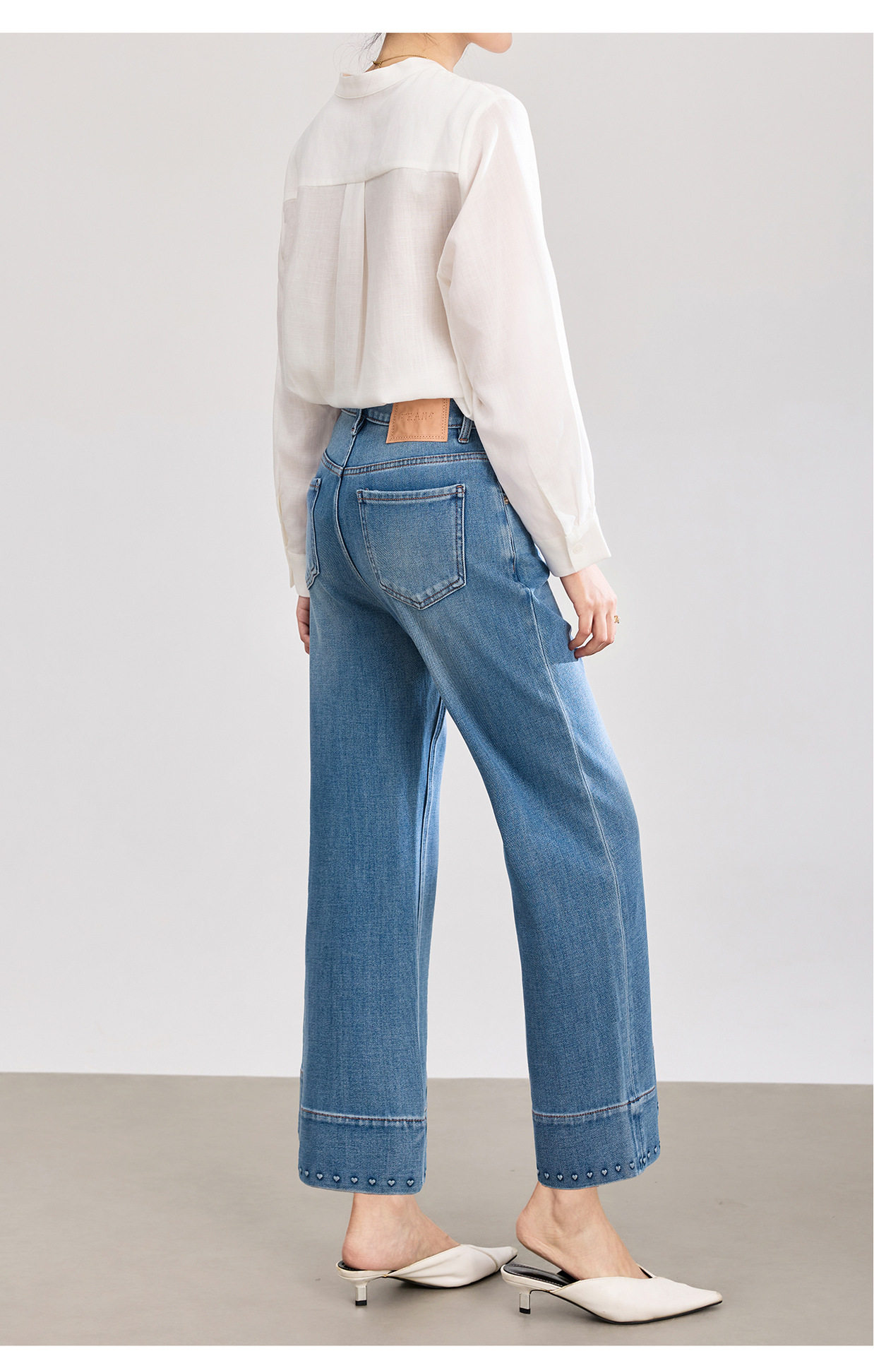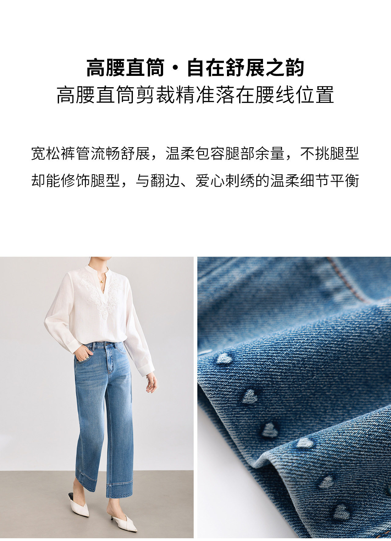 「高货wl」全新升级【铂金会员275/天猫369/差价94】(00411)洛诗琳气质爱心压印牛仔裤女2026春夏新款高腰显瘦直筒裤