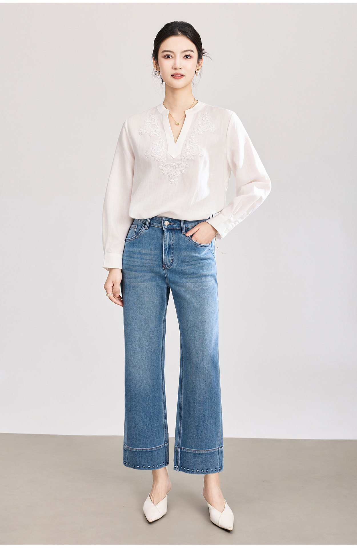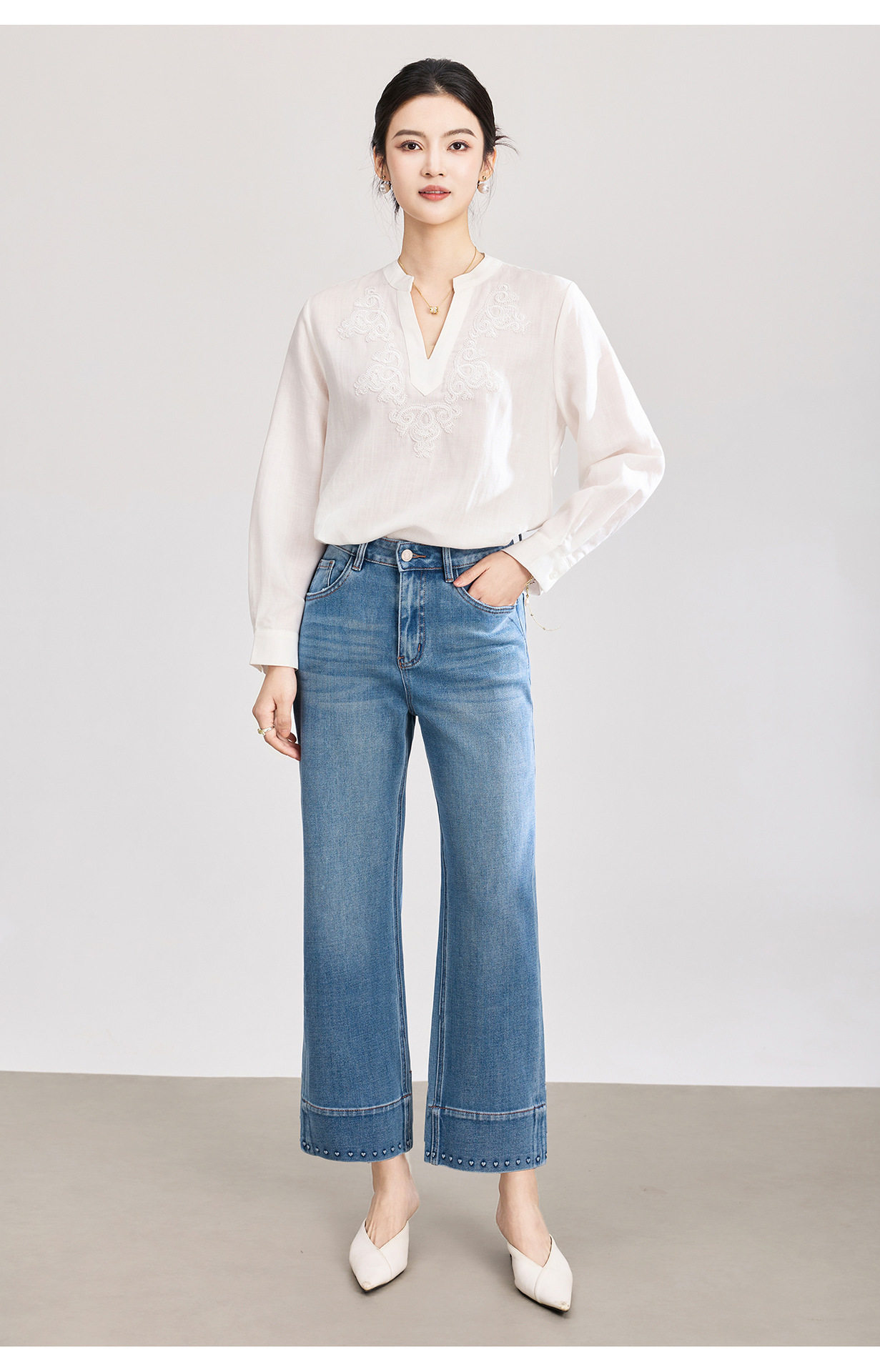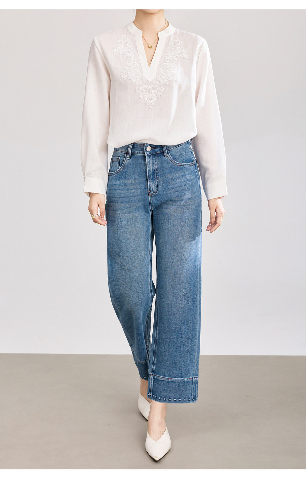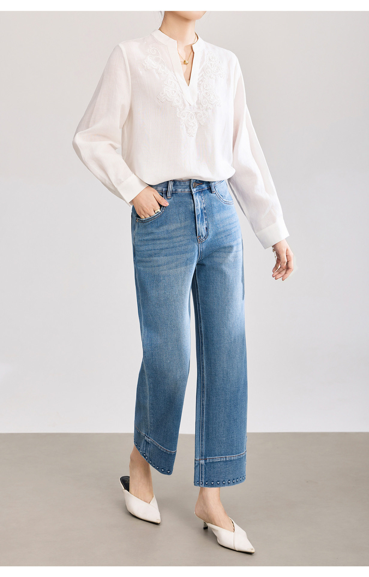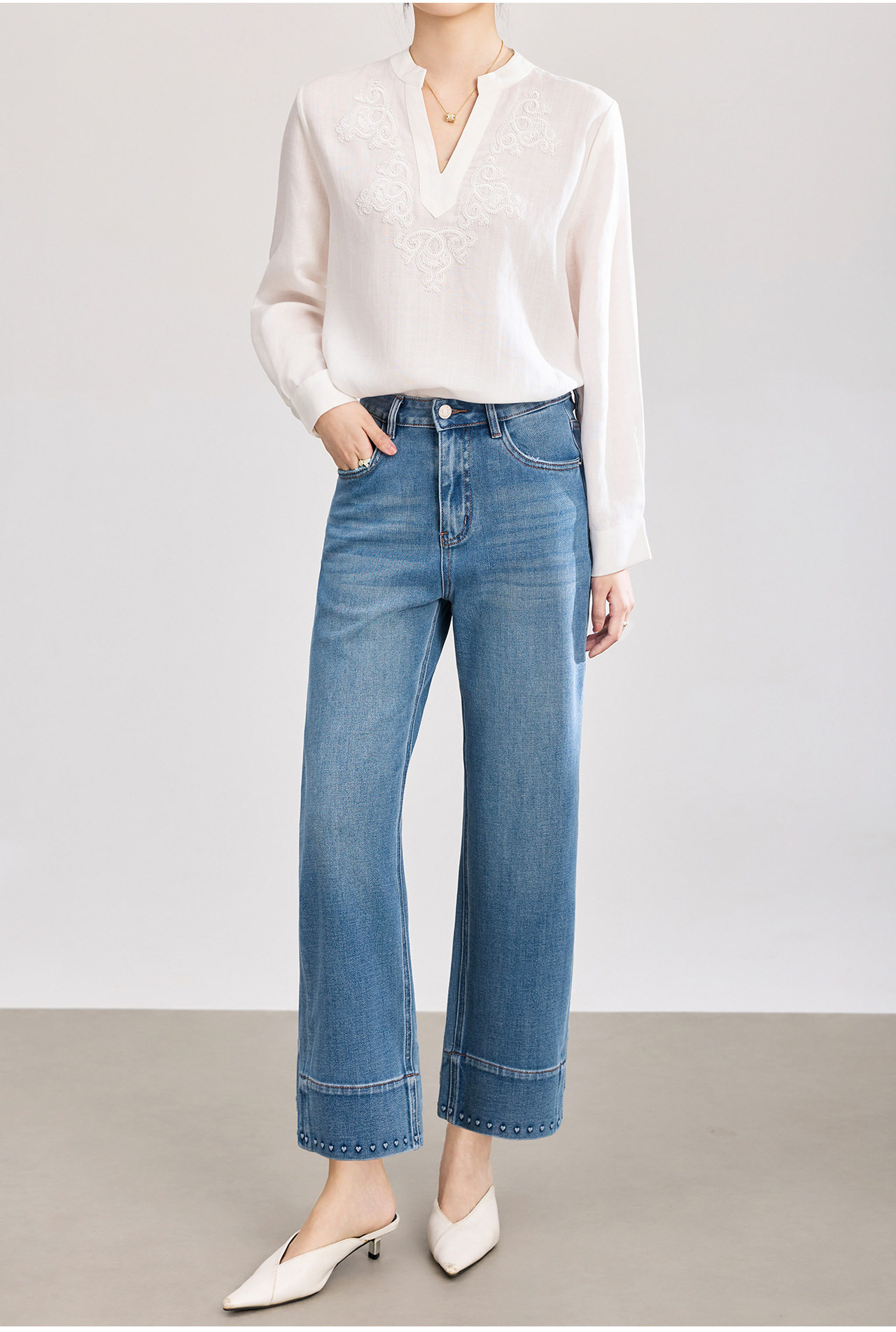 「高货wl」全新升级【铂金会员275/天猫369/差价94】(00411)洛诗琳气质爱心压印牛仔裤女2026春夏新款高腰显瘦直筒裤
