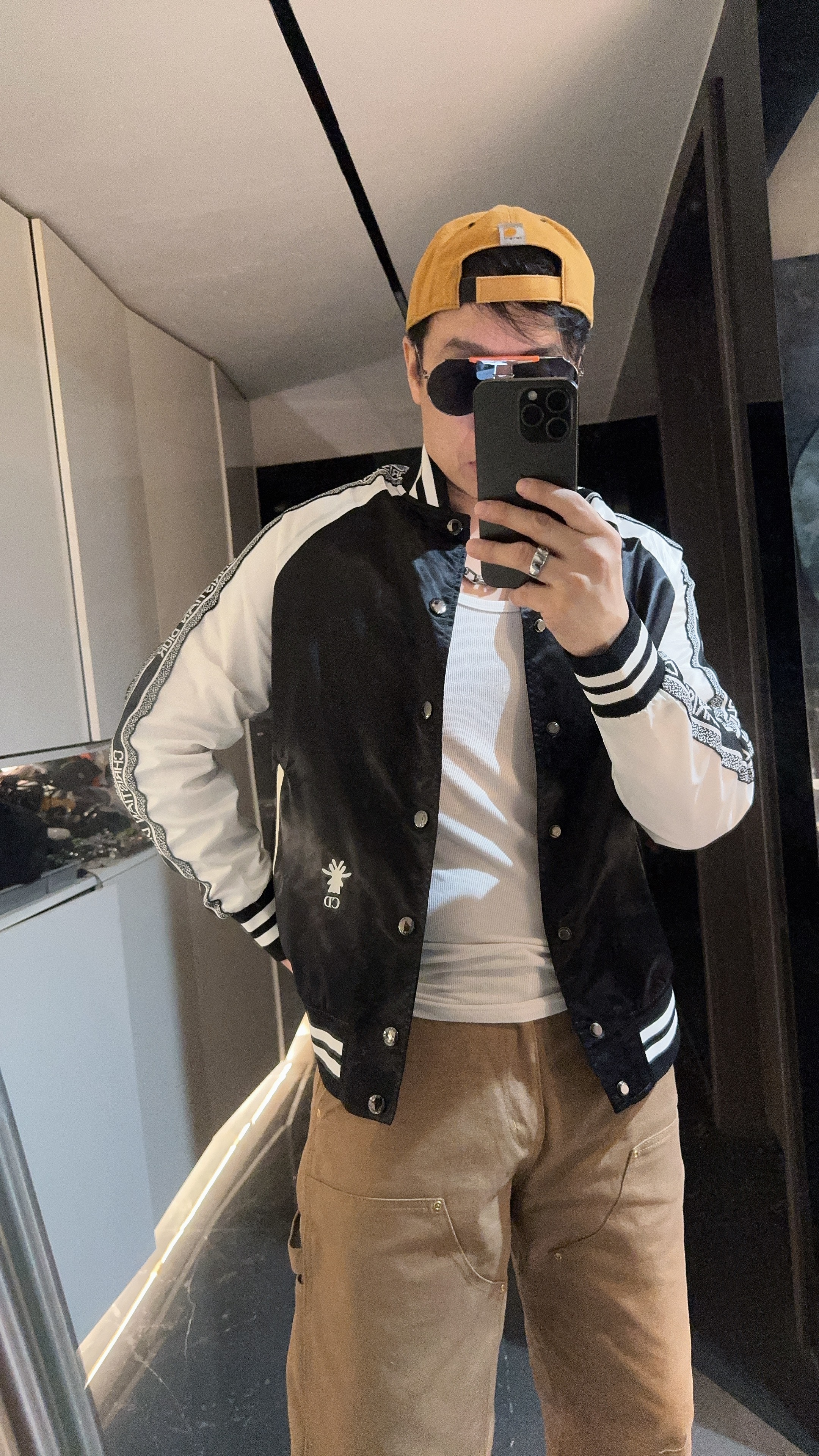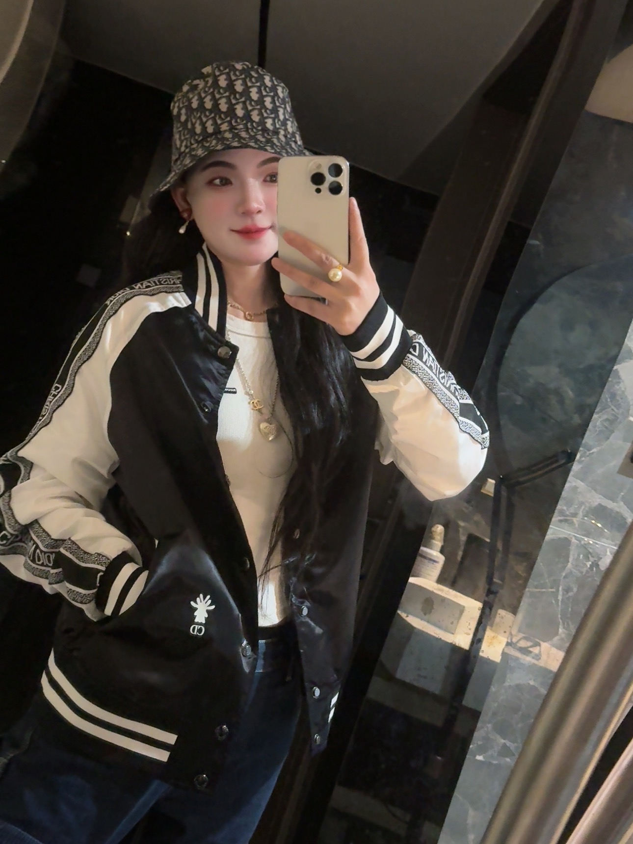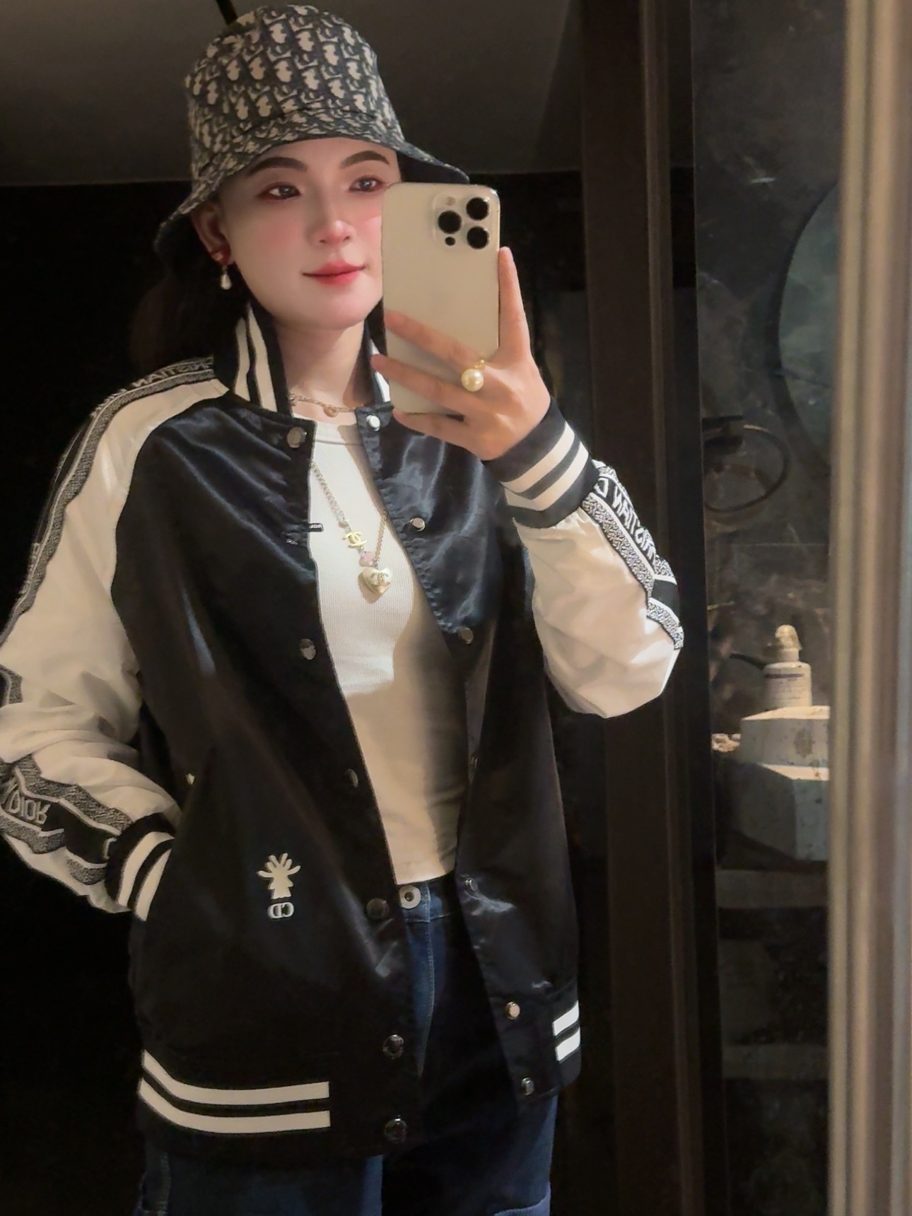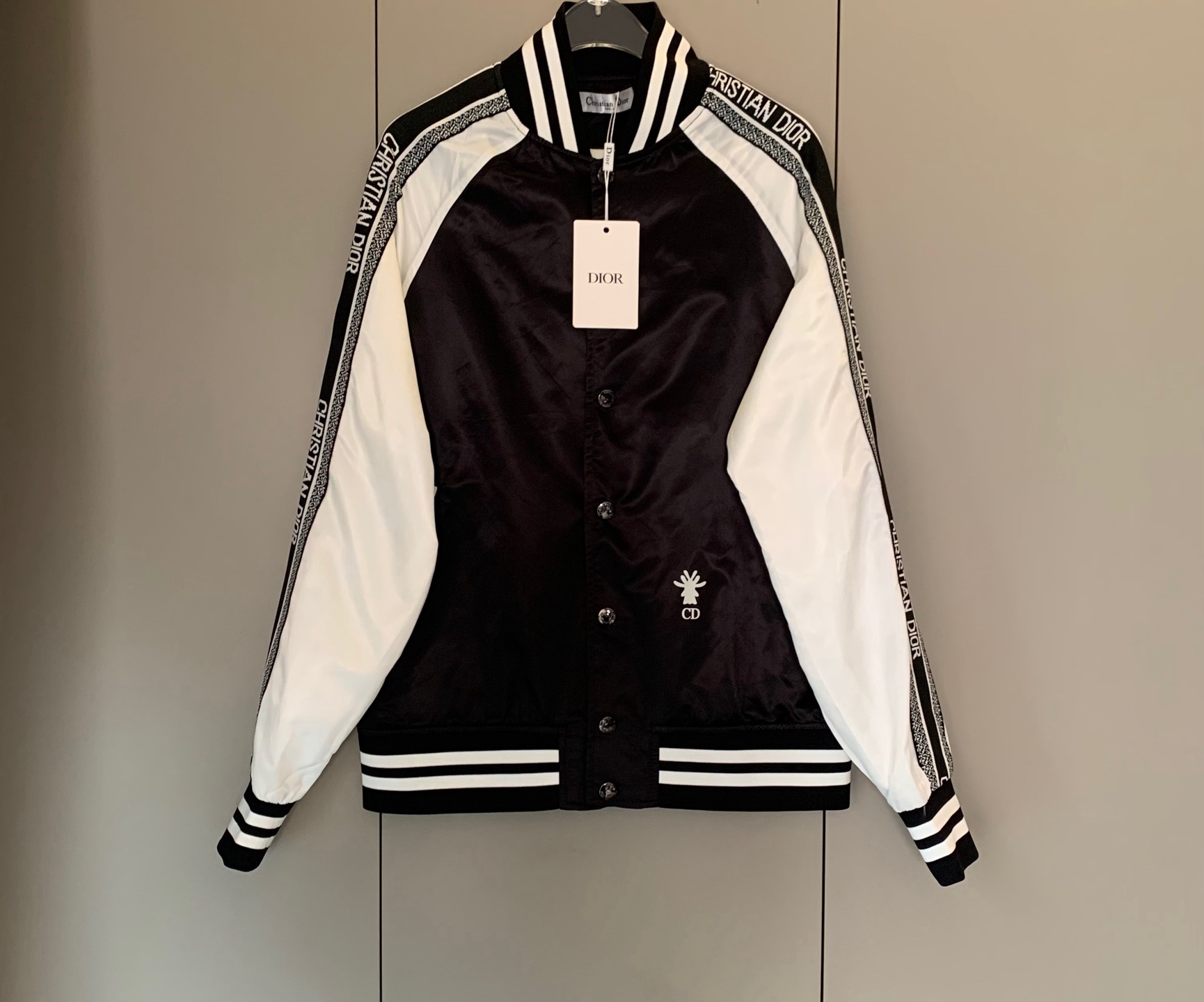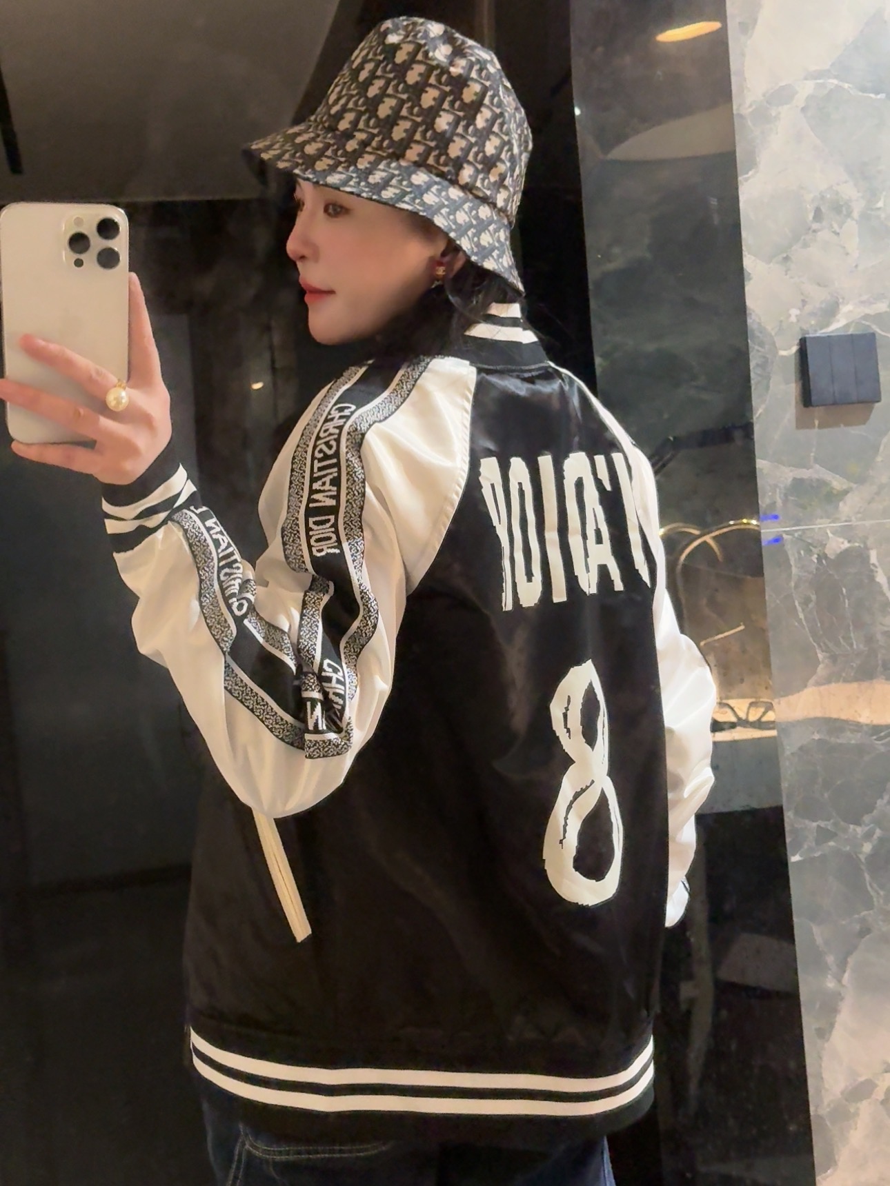 黑白撞色经典到骨子里,“CHRISTIAN DIOR”织带一路从袖身蔓延出品牌辨识度,后背“J'ADIOR 8”的像素印花潮到犯规,还有小蜜蜂印花暗戳戳彰显高定细节配西装,是雅痞贵公子;搭牛仔,是街头潮酷咖;甚至配条连衣裙,都能玩转出甜酷反差感。