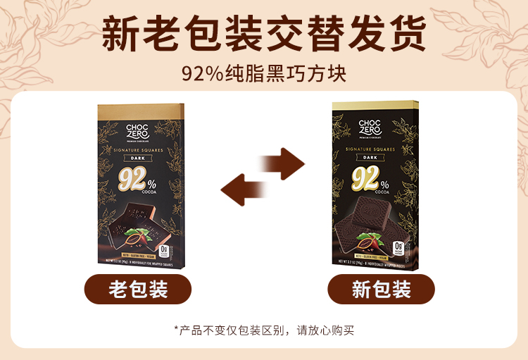 【瘦龙】Choczero 92%黑巧克力 90g/盒 8片 0蔗糖 生酮友好 饱腹代餐儿童零食