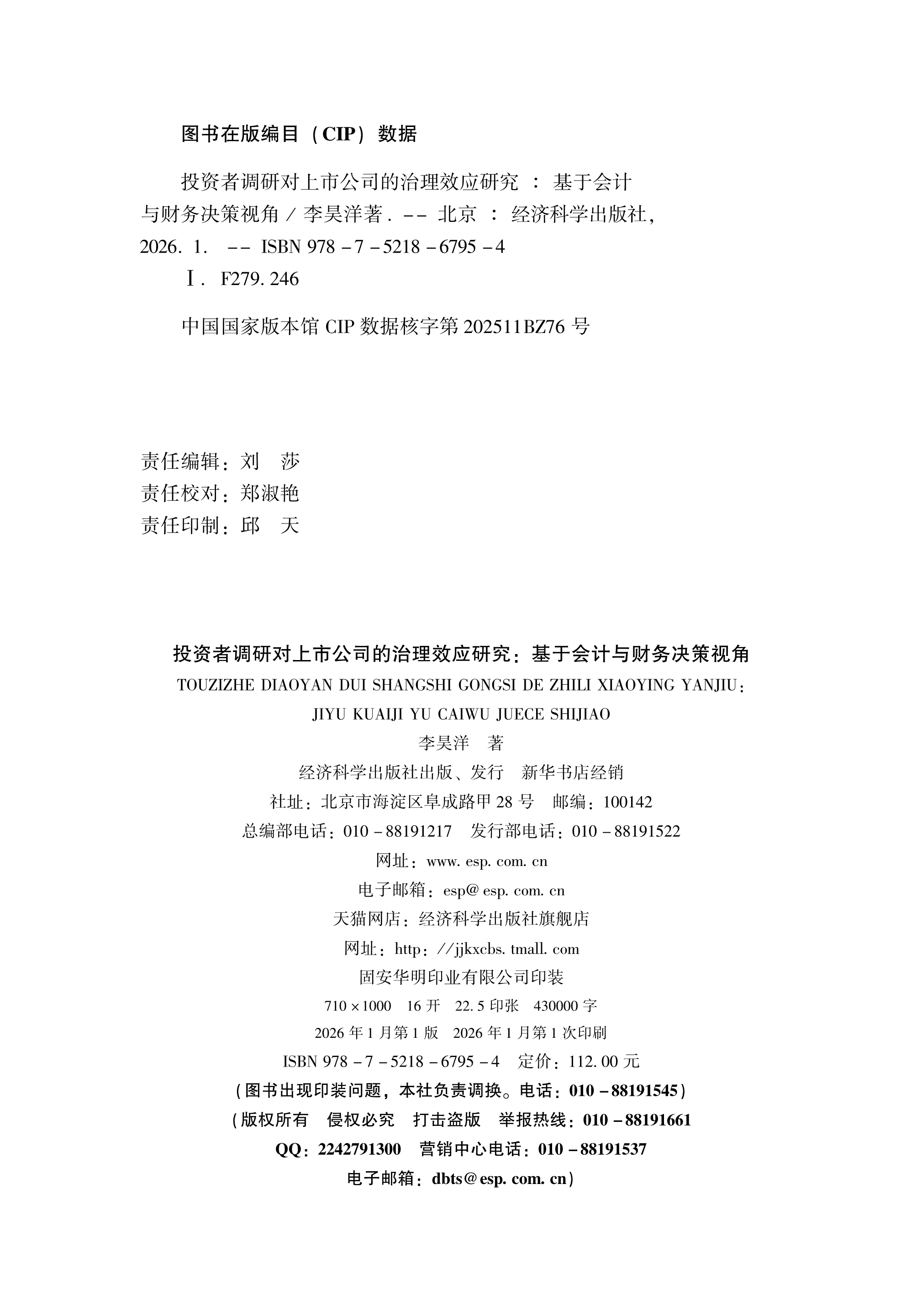 投资者调研对上市公司的治理效应研究:基于会计与财务决策视角