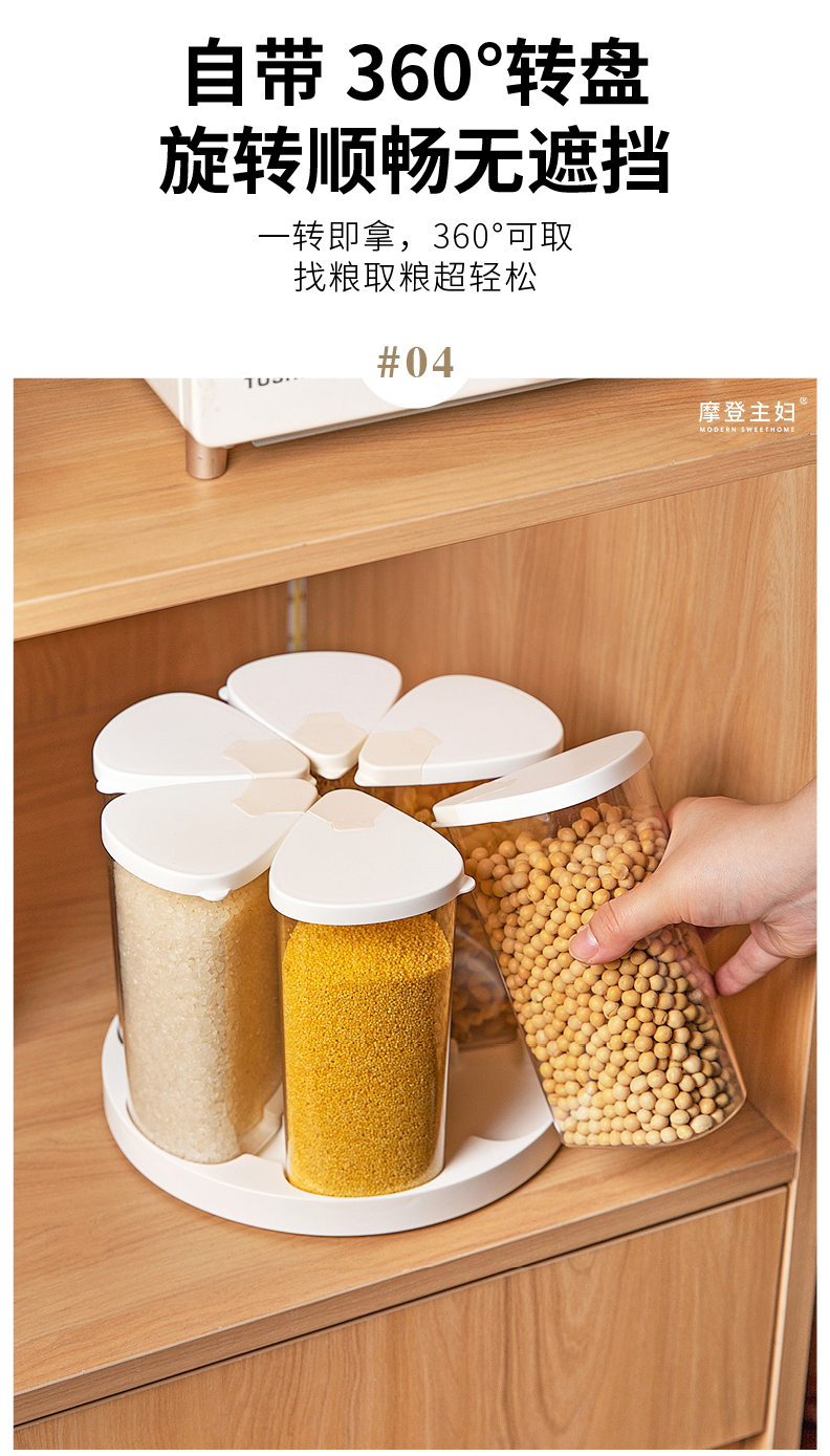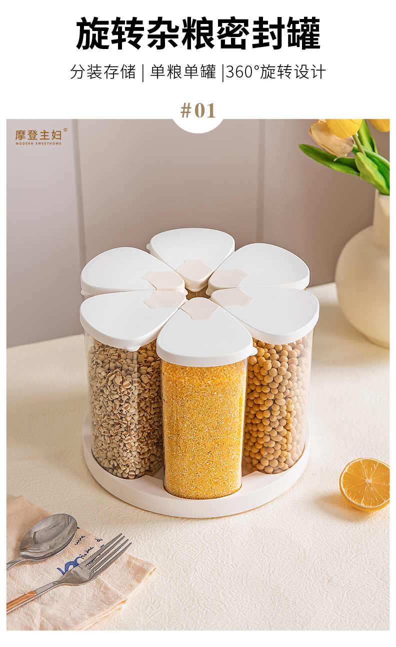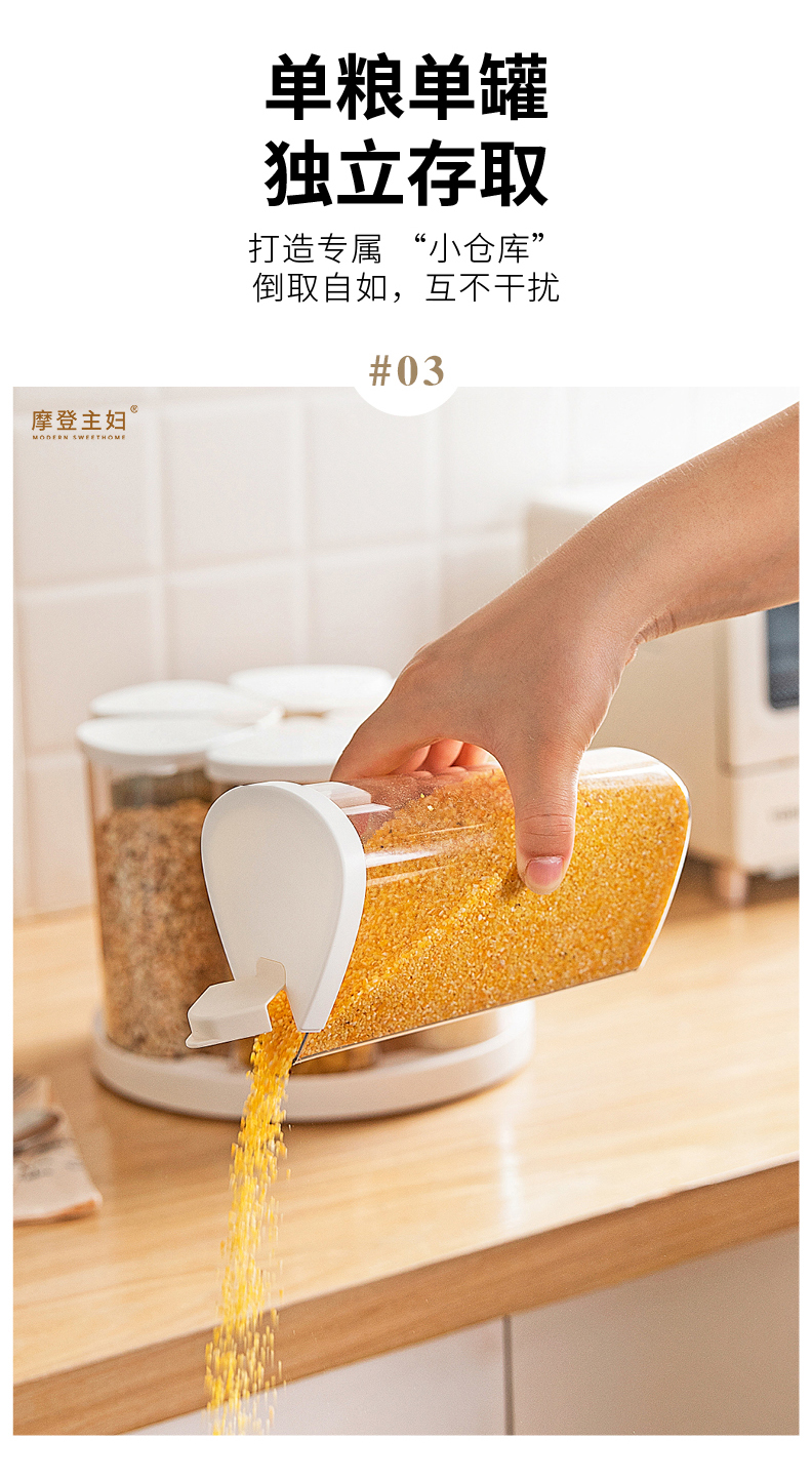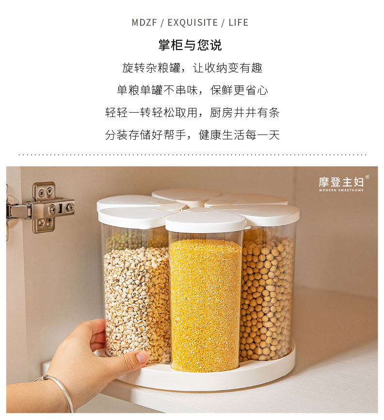 摩登主妇旋转五谷杂粮收纳盒家用密封防潮豆子储物储存罐分格米桶