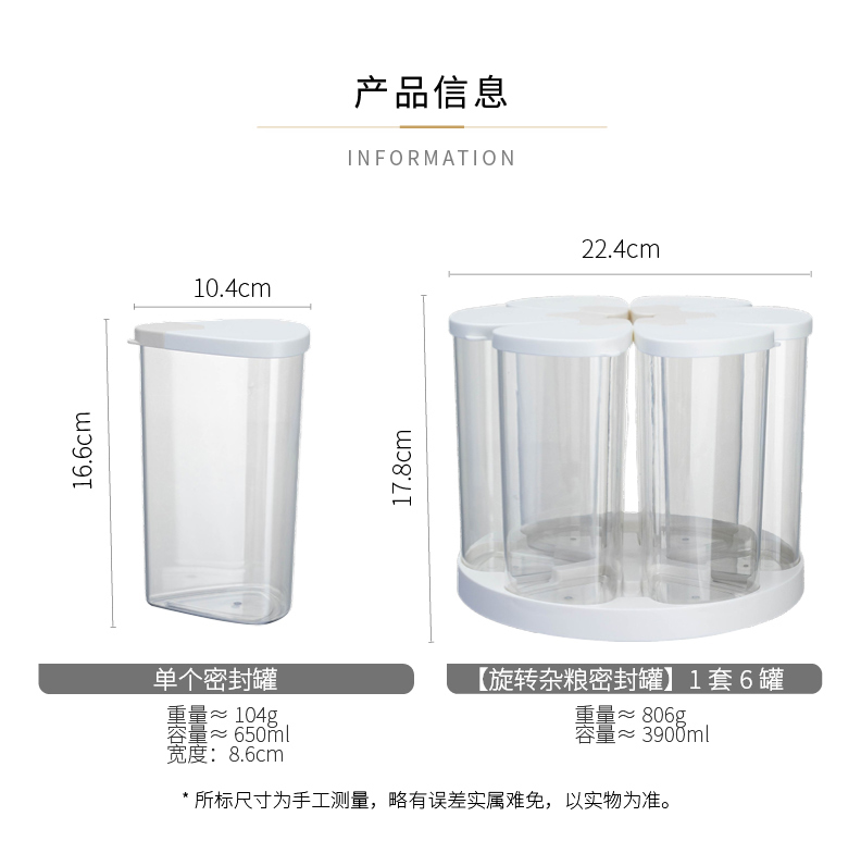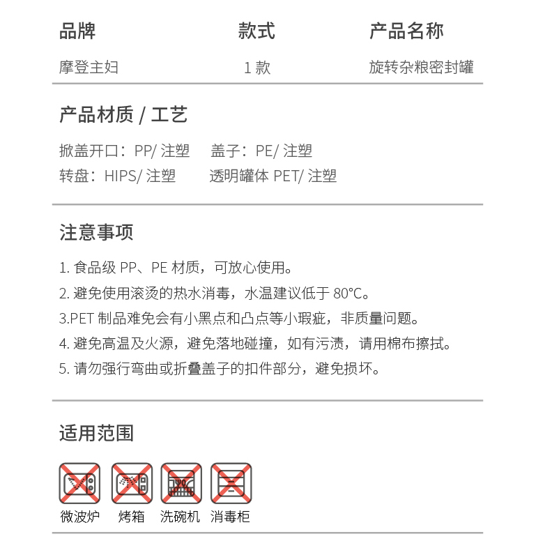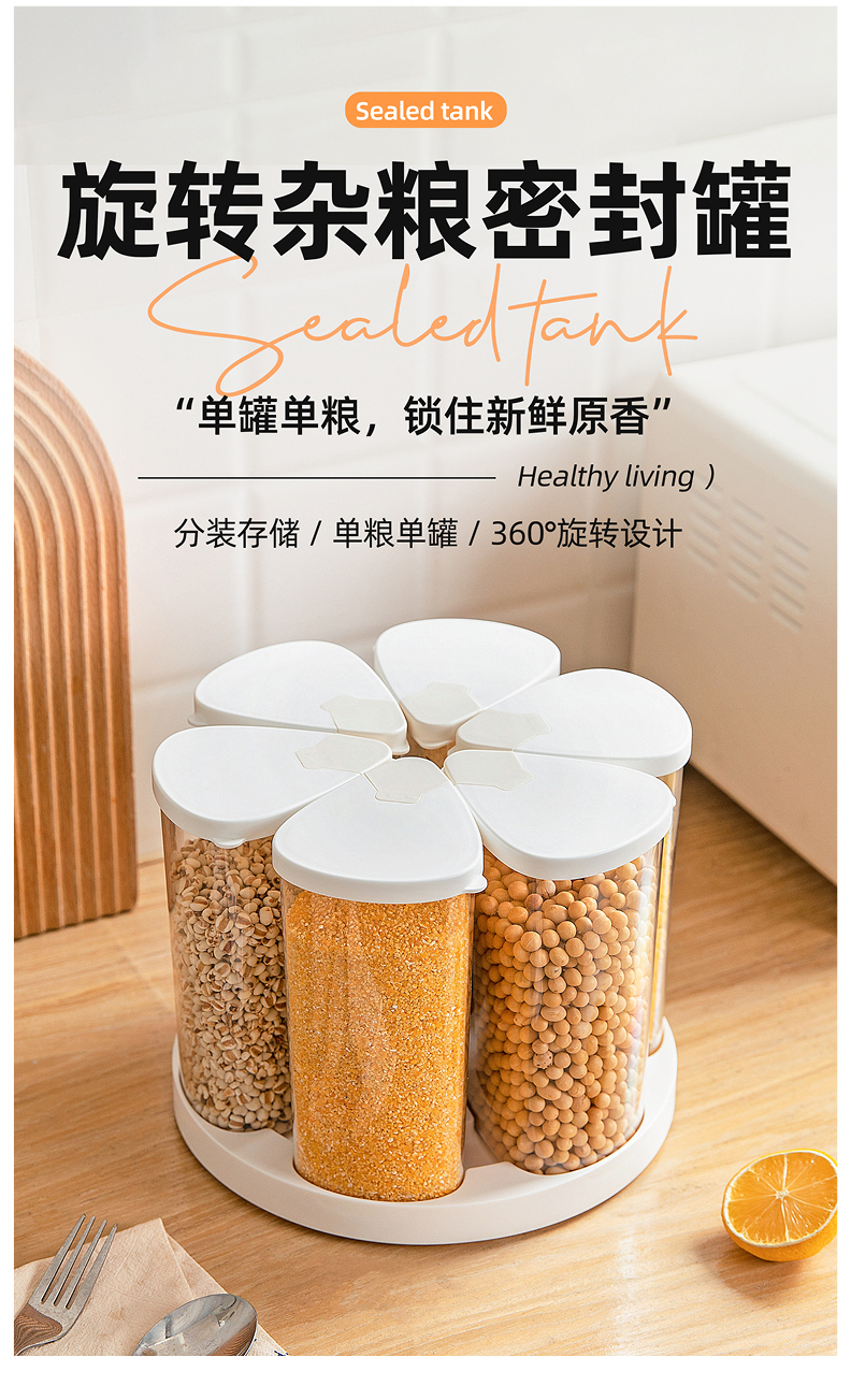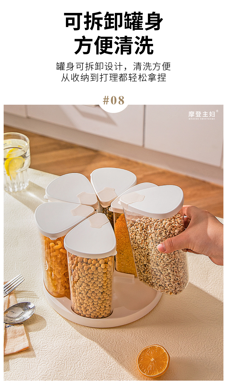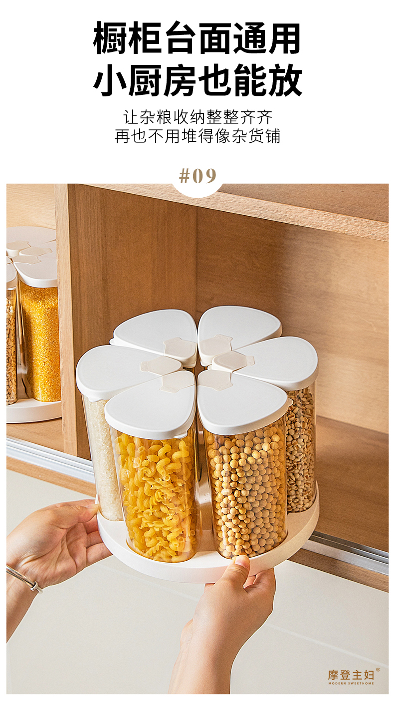 摩登主妇旋转五谷杂粮收纳盒家用密封防潮豆子储物储存罐分格米桶