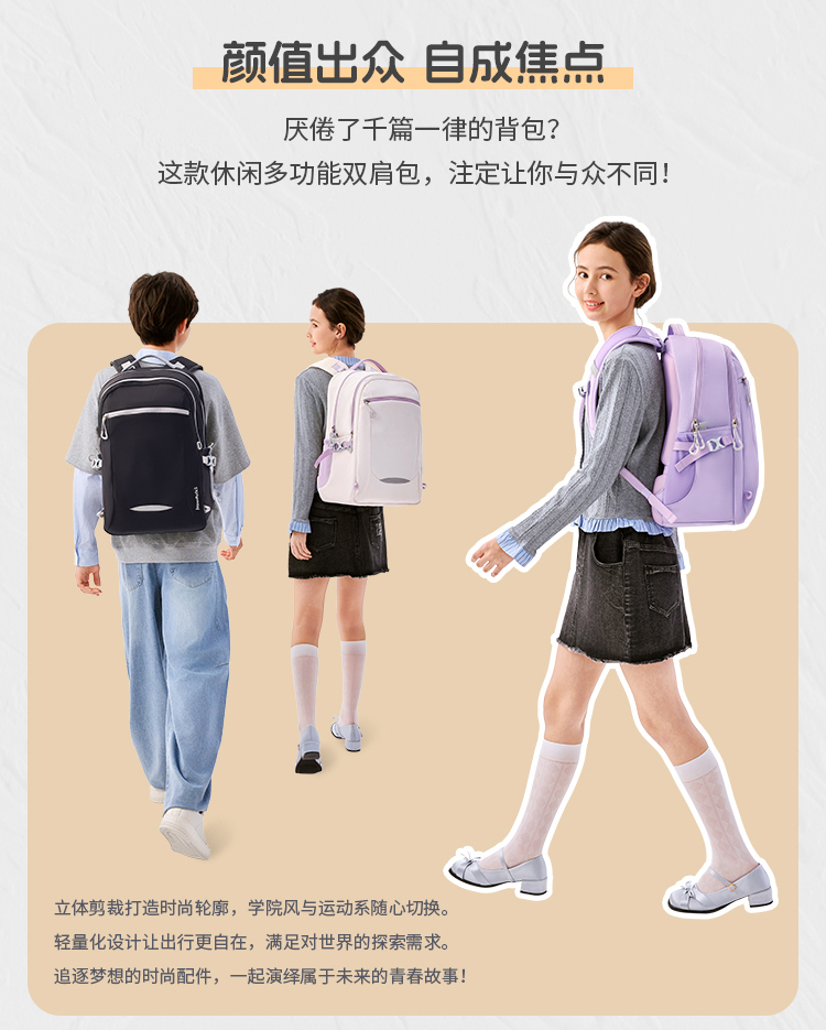 MoonRock梦乐初高中学生减负护脊书包超轻量大容量双肩包