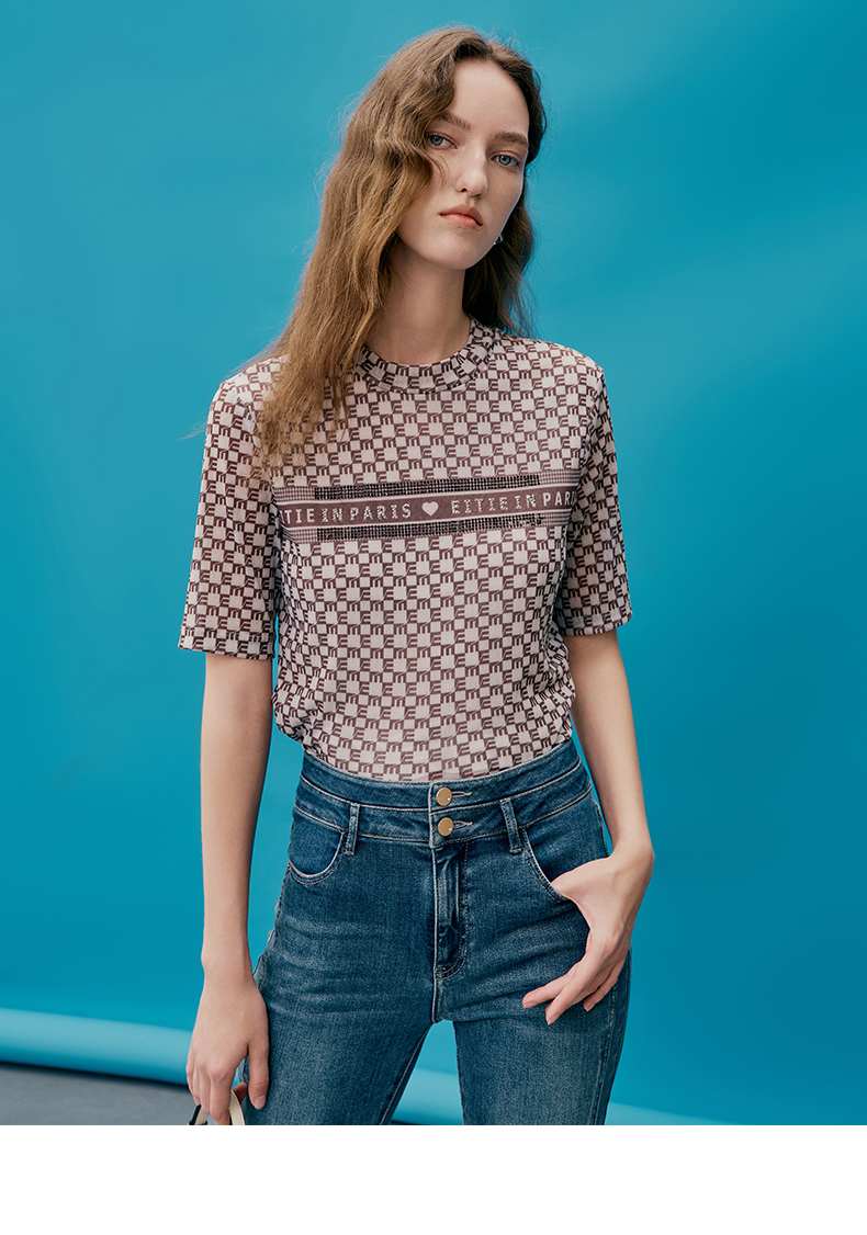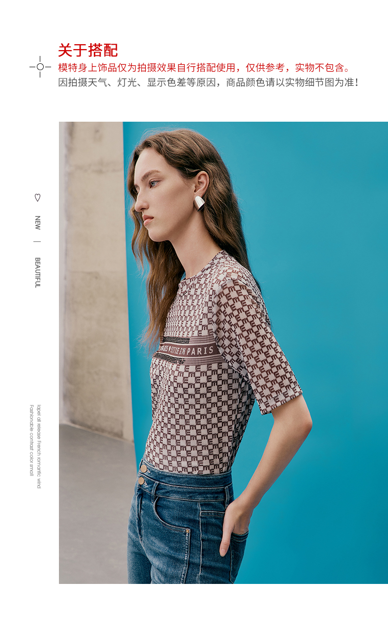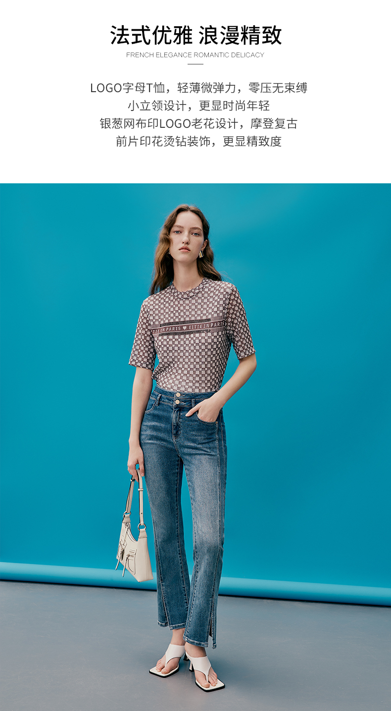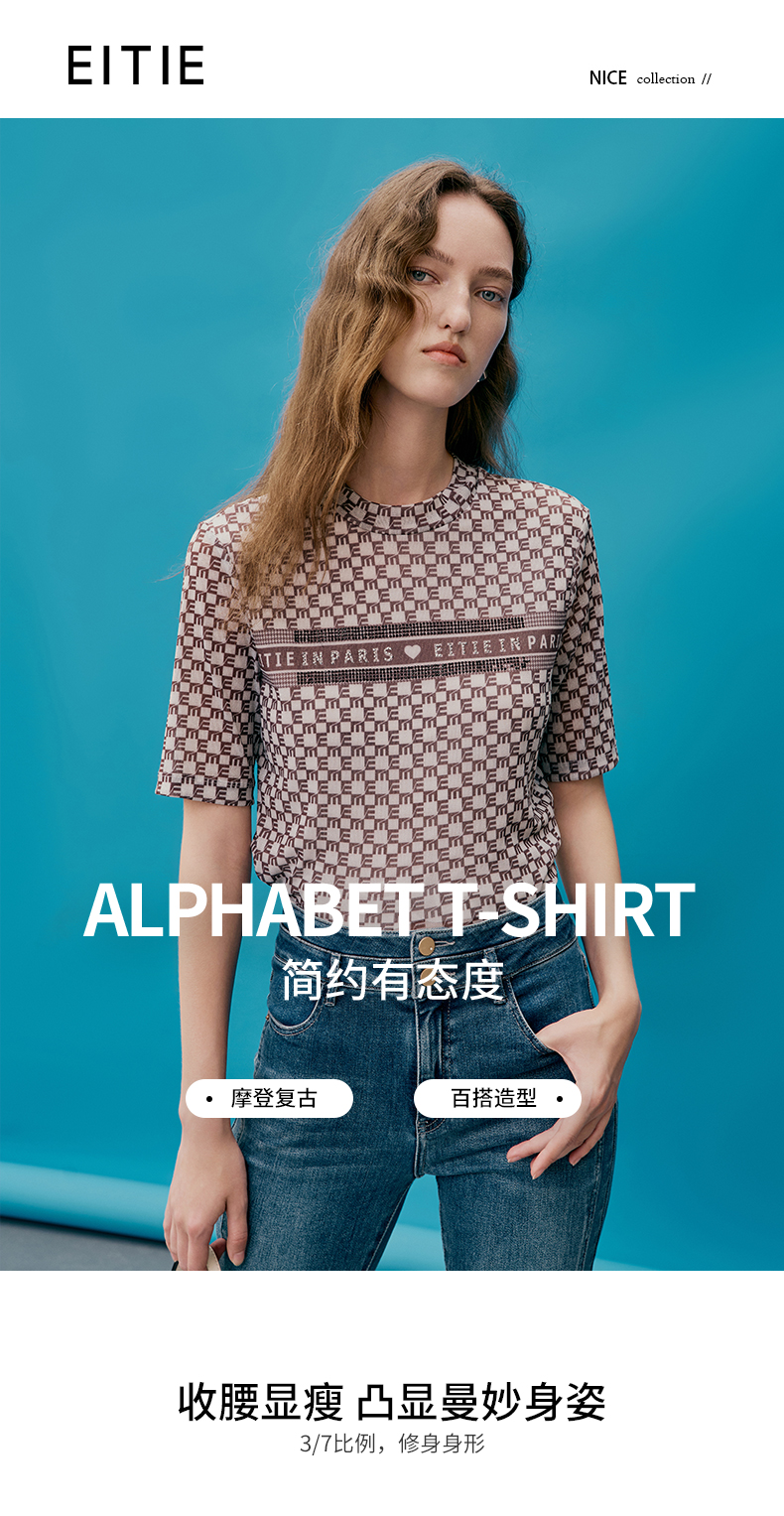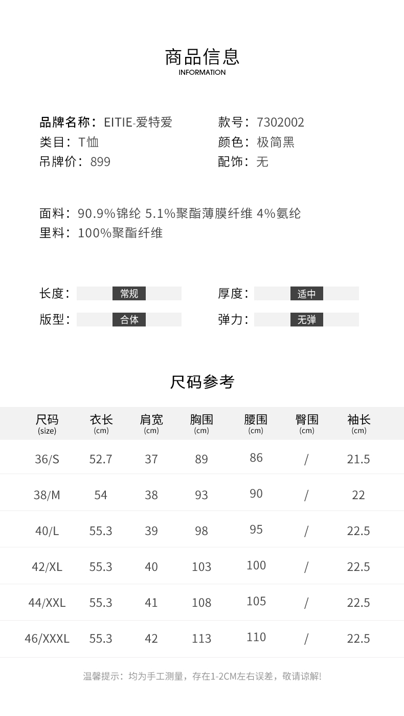 EITIEE爱特爱夏季新款舒适时尚简约亲肤打底短袖女上衣T恤7302002