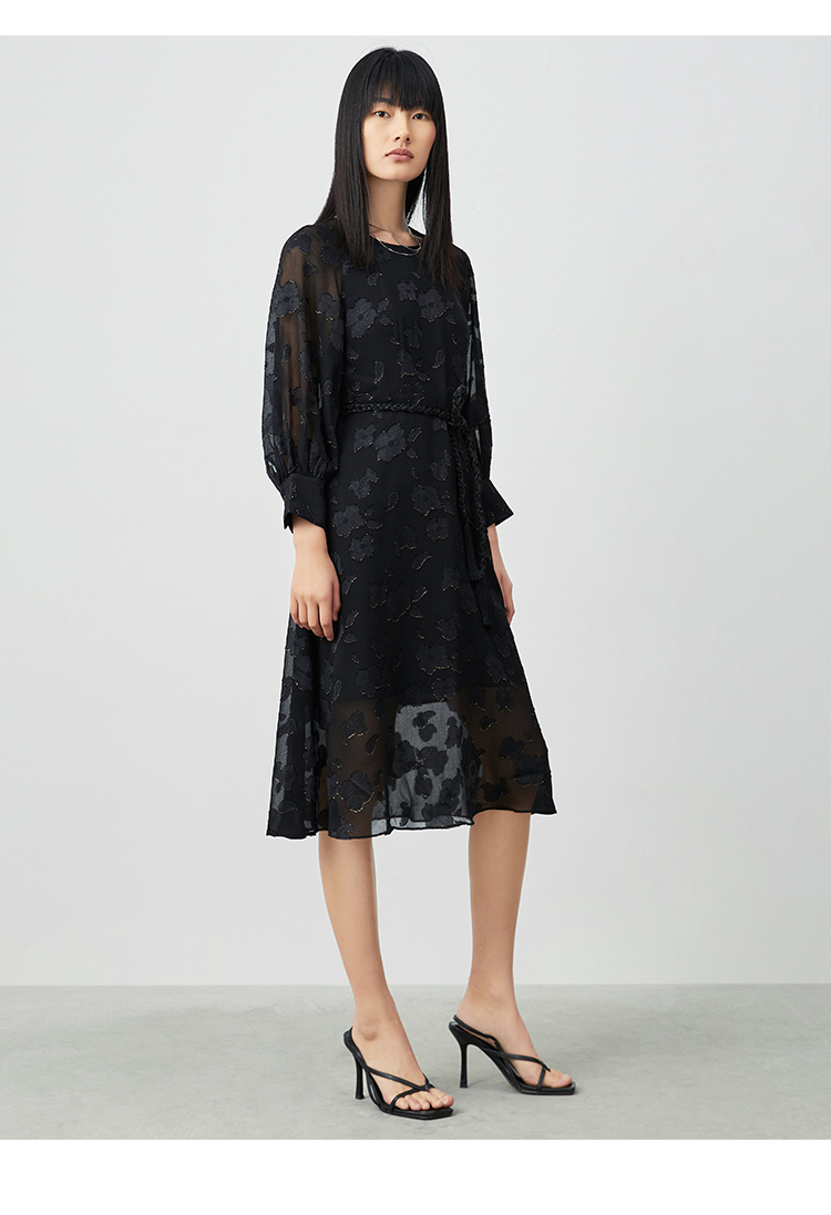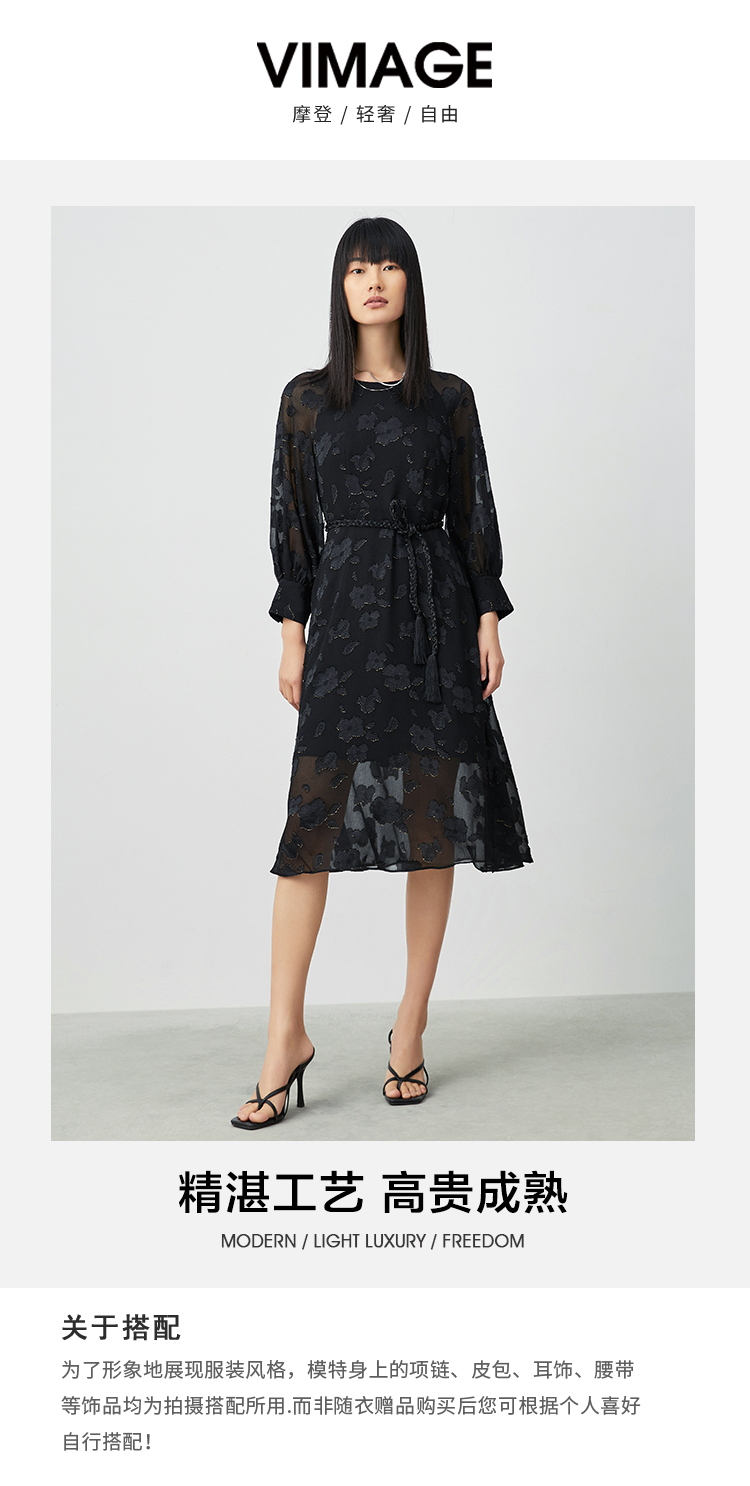 VIMAGE纬漫纪夏季新款优雅雪纺显瘦中长款连衣裙V1507116