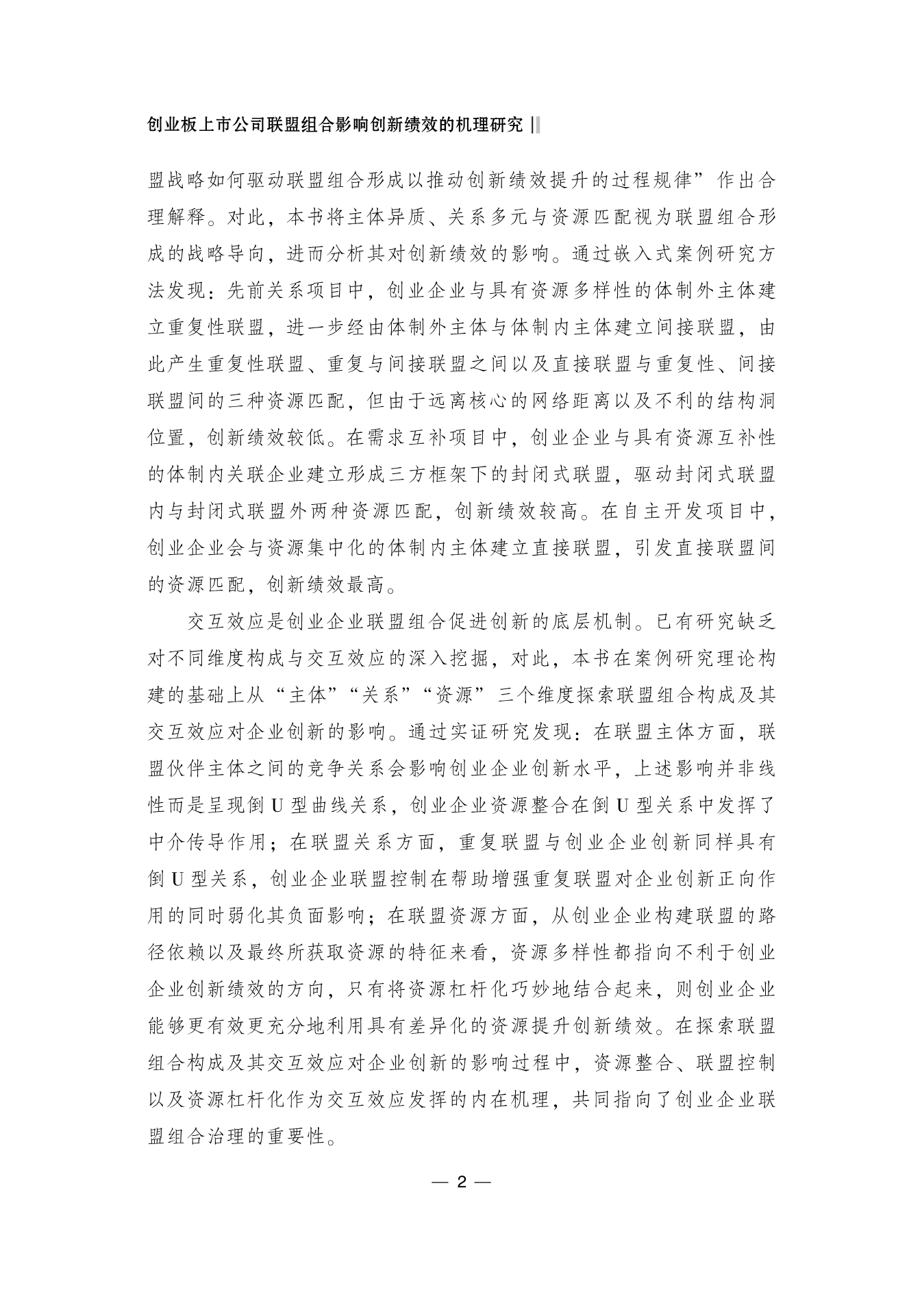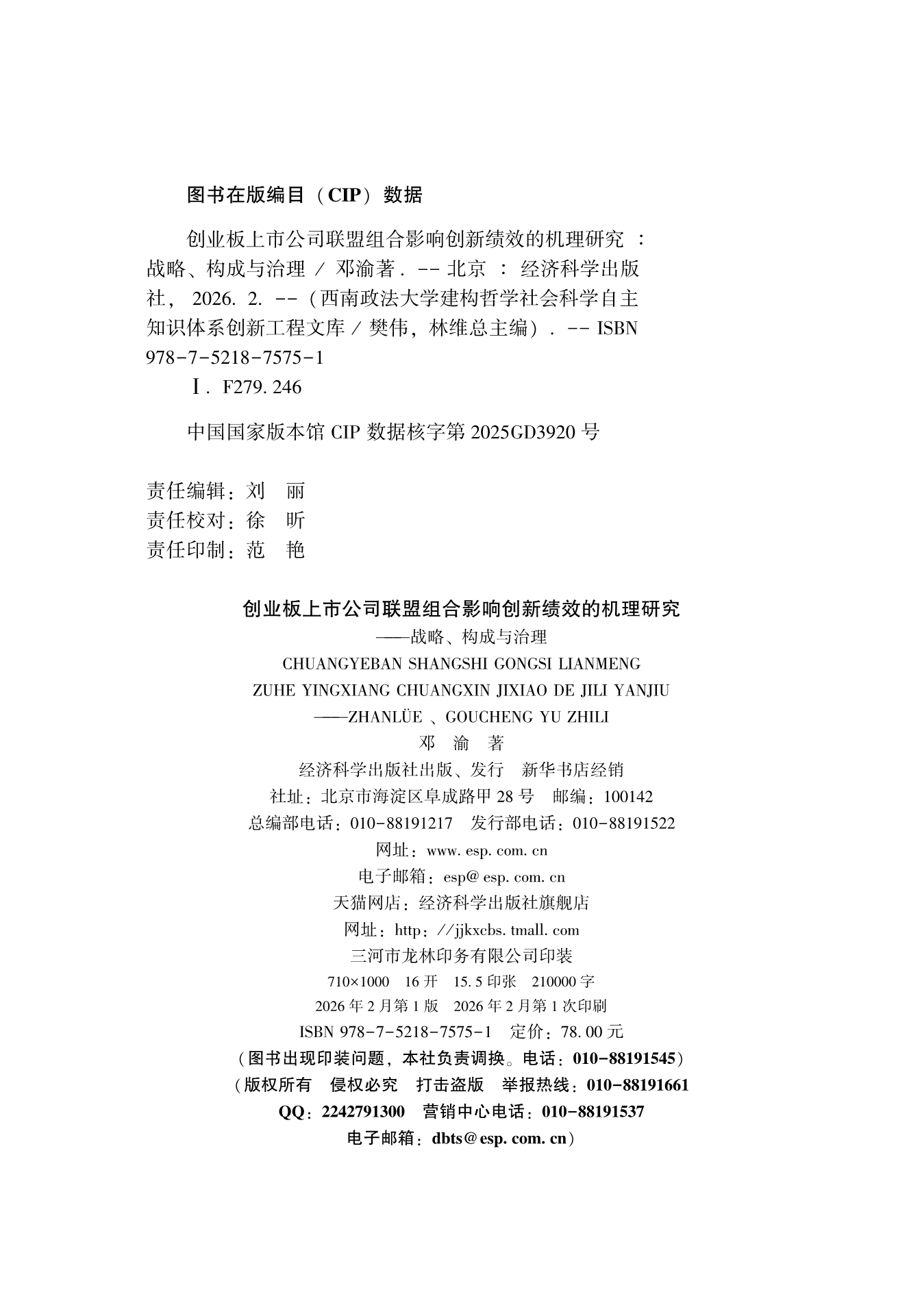 创业板上市公司联盟组合影响创新绩效的机理研究--战略、构成与治理