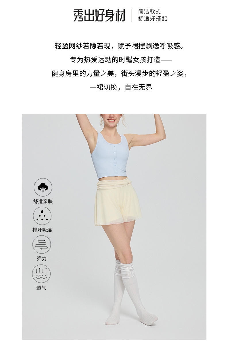 跃牌【周游世界】春夏新款瑜伽服女跳舞芭蕾网纱运动短裙裤显瘦时尚羽毛球网球裙SH3276