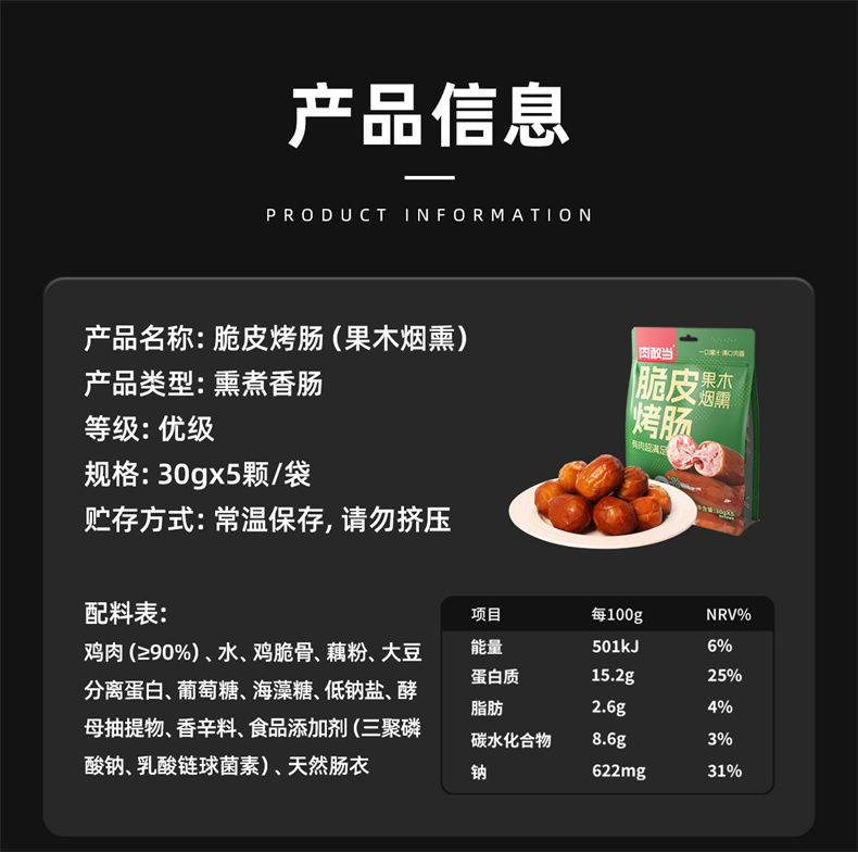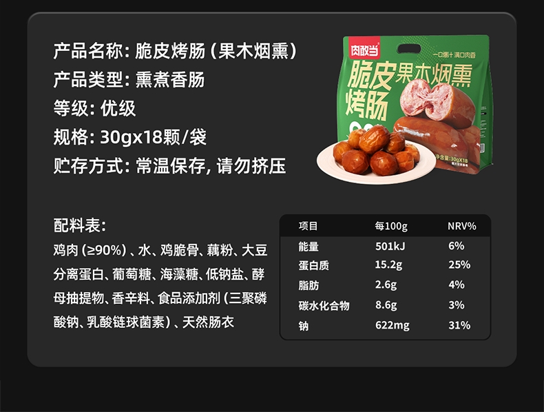肉敢当脆皮烤肠好吃鲜嫩便携袋装肉枣肠儿童早餐方便速食开袋即食