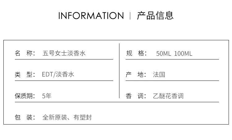 【门店直发】香奈儿 5号女士淡香水50ml淡香精清新持久留香