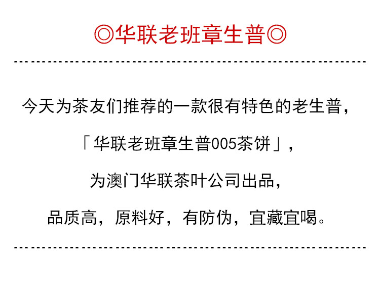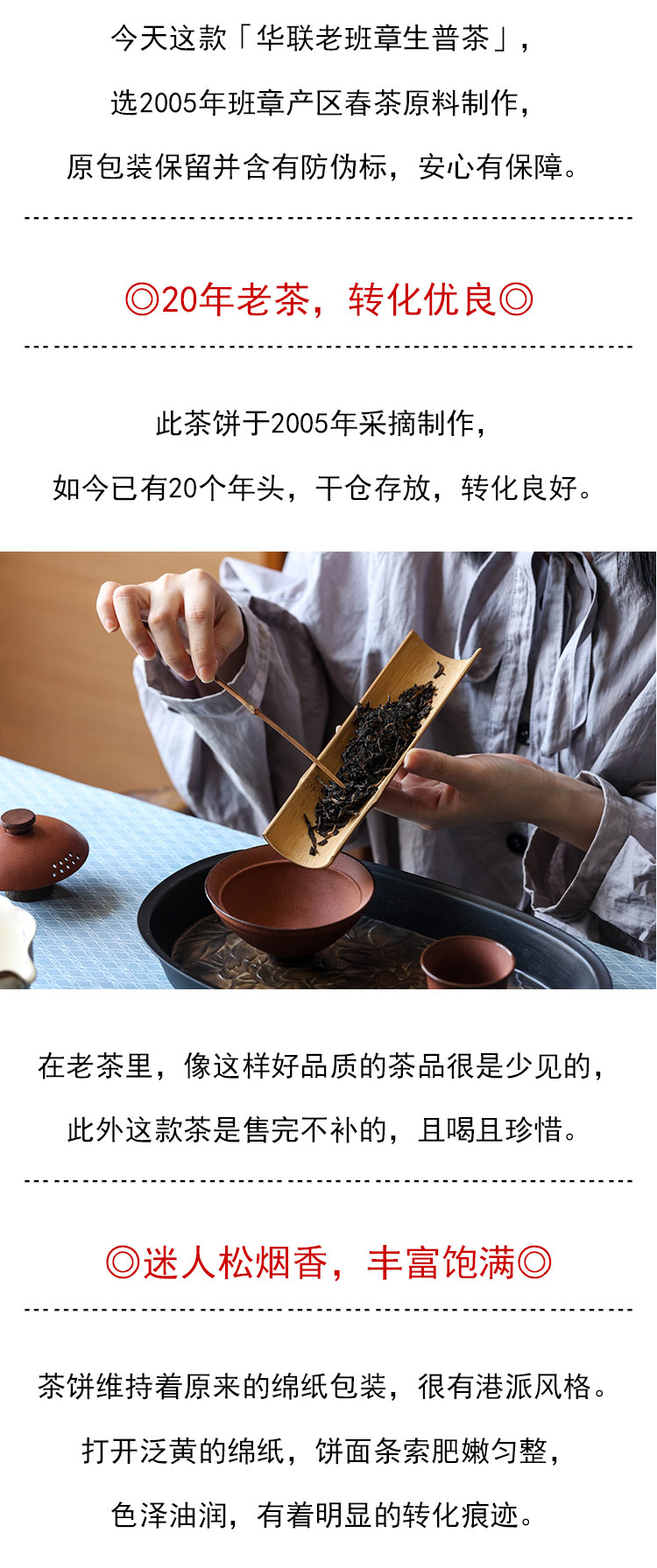 茶香记 华联老班章生普005茶饼大厂出品20年老茶转化优良普洱茶