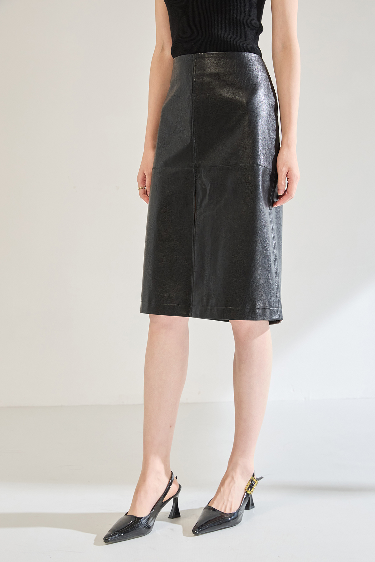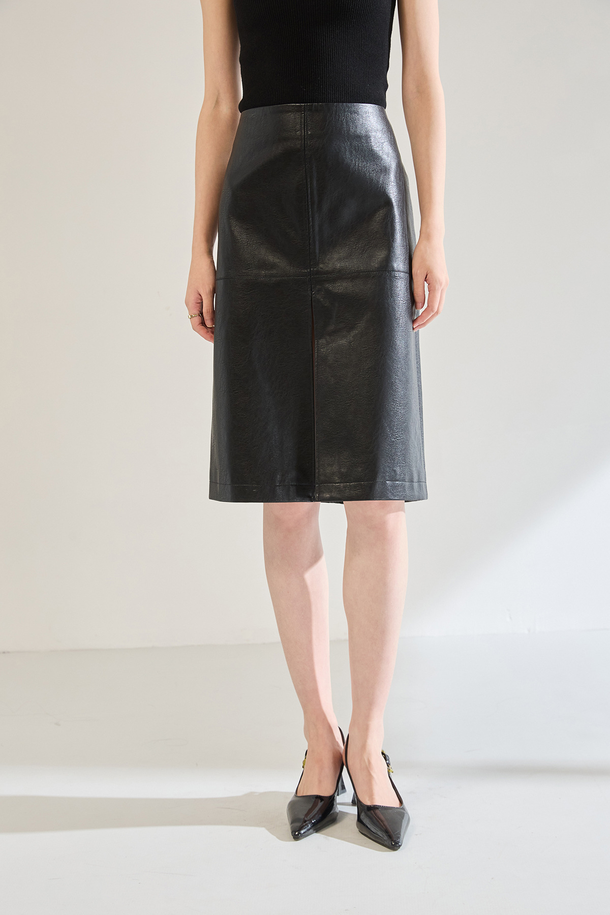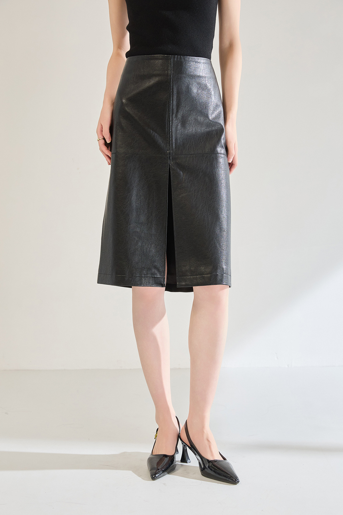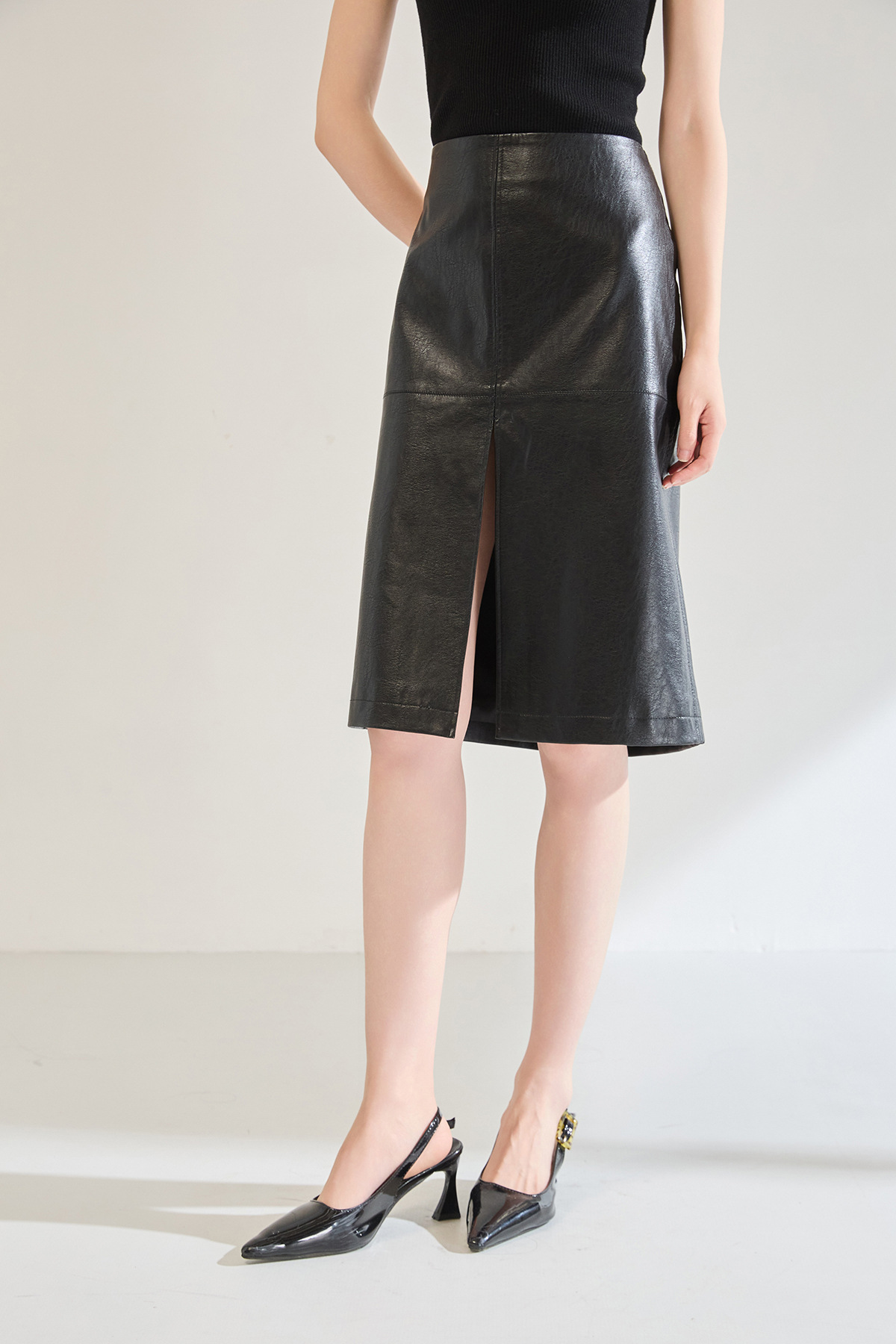 「高货sh」全新升级【铂金会员220/天猫289/差价69】(45329)洛诗琳新款油蜡半哑光皮裙2025秋季设计感开衩包臀半身裙