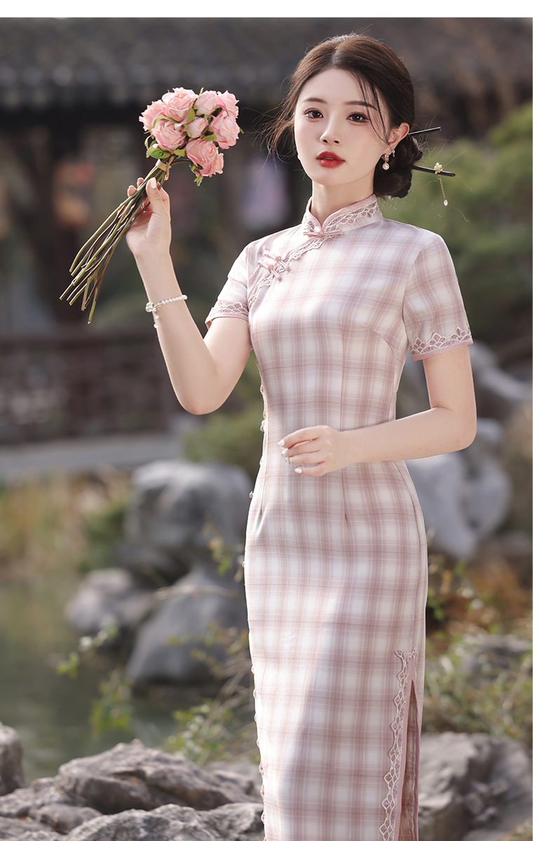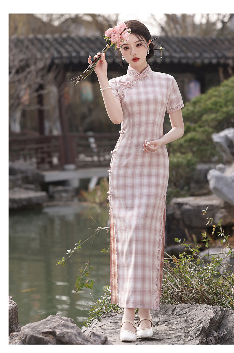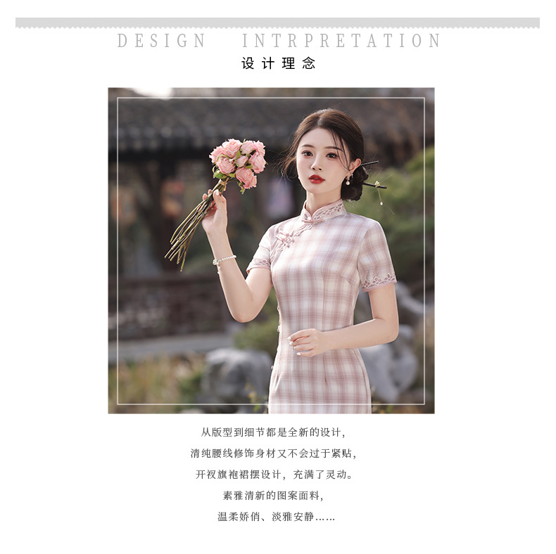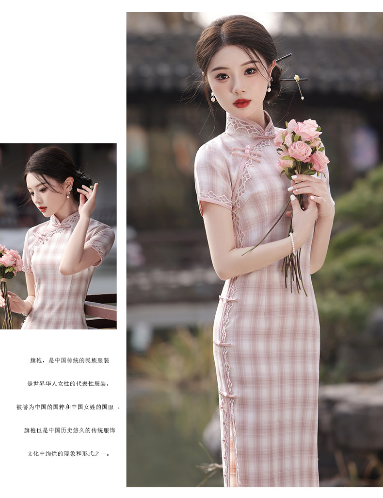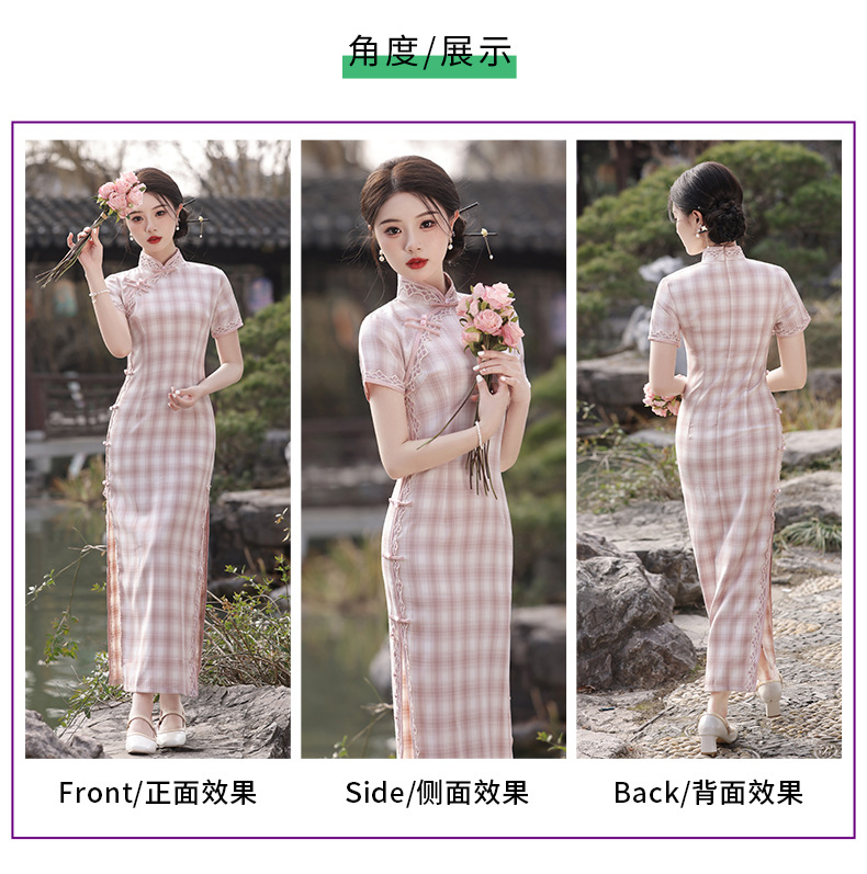 MLS711 新款蕾丝花边单层弹力棉少女感修身显瘦气质长款旗袍清新 商品图0