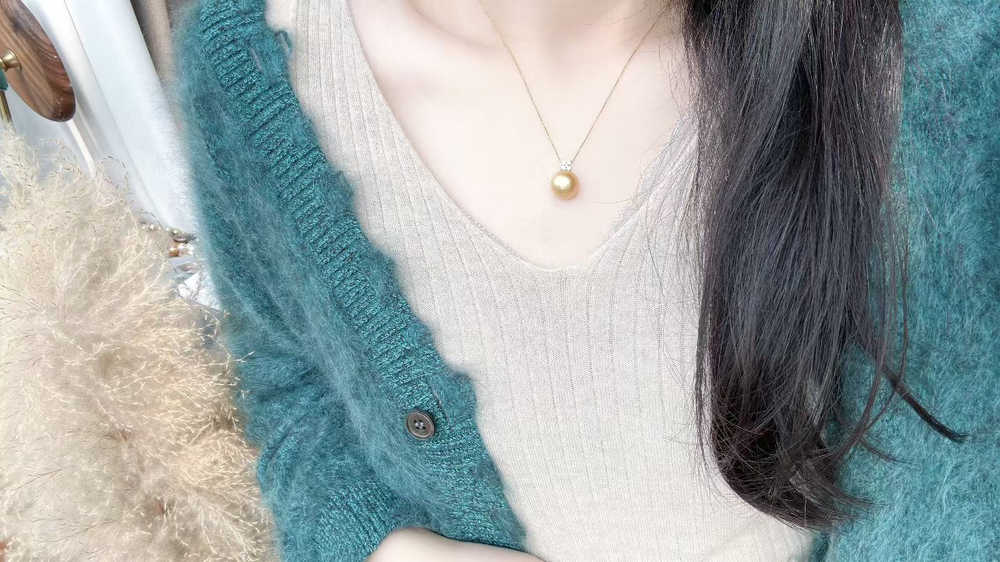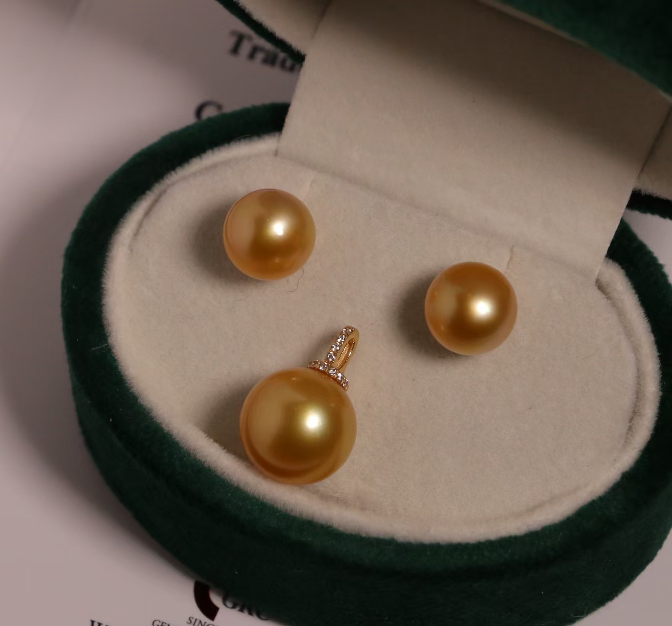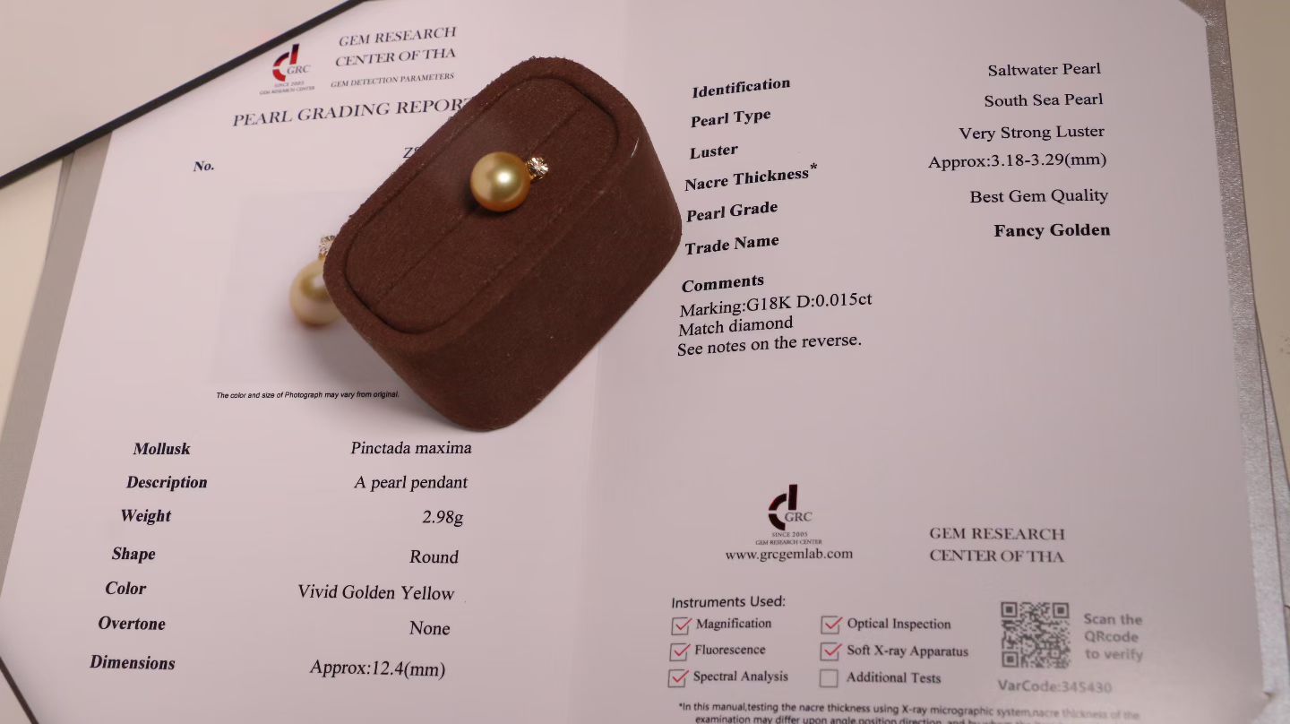 甄珠贝 篙端浓金莞美金珠 12-13mm ji光无暇 GRC大证 best gem quality蕞优珠宝品质 Fancy Golden 绚金色 18k纯金镶嵌