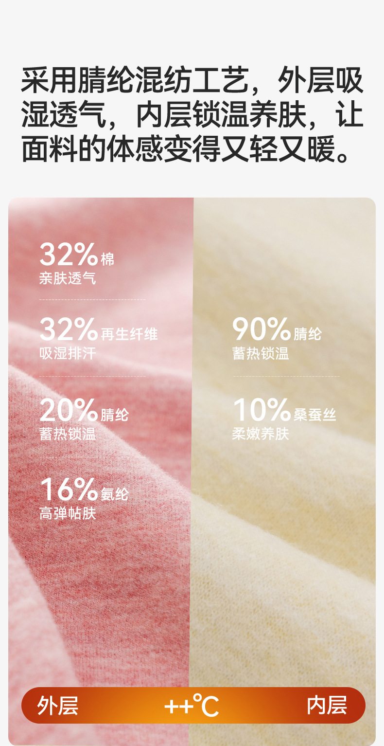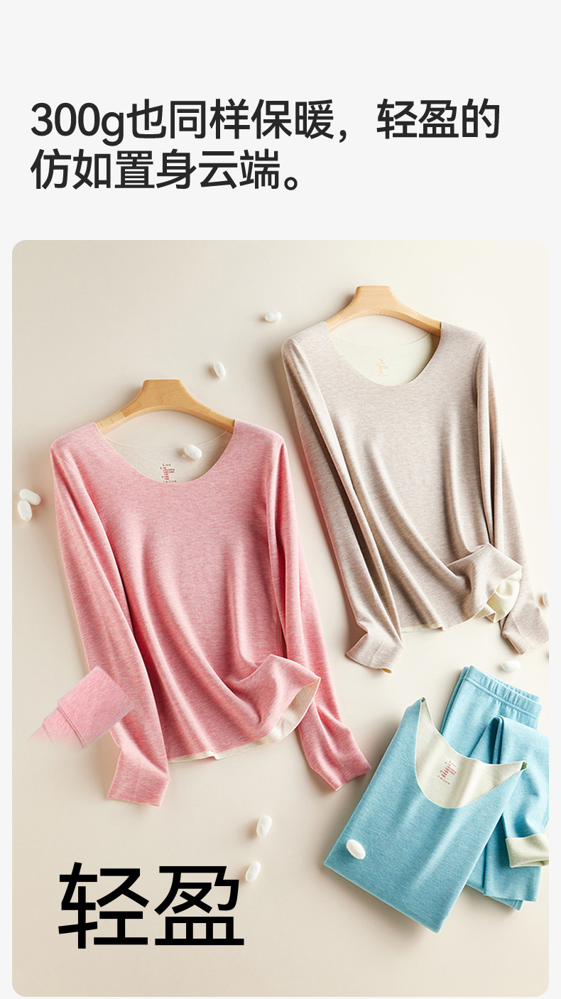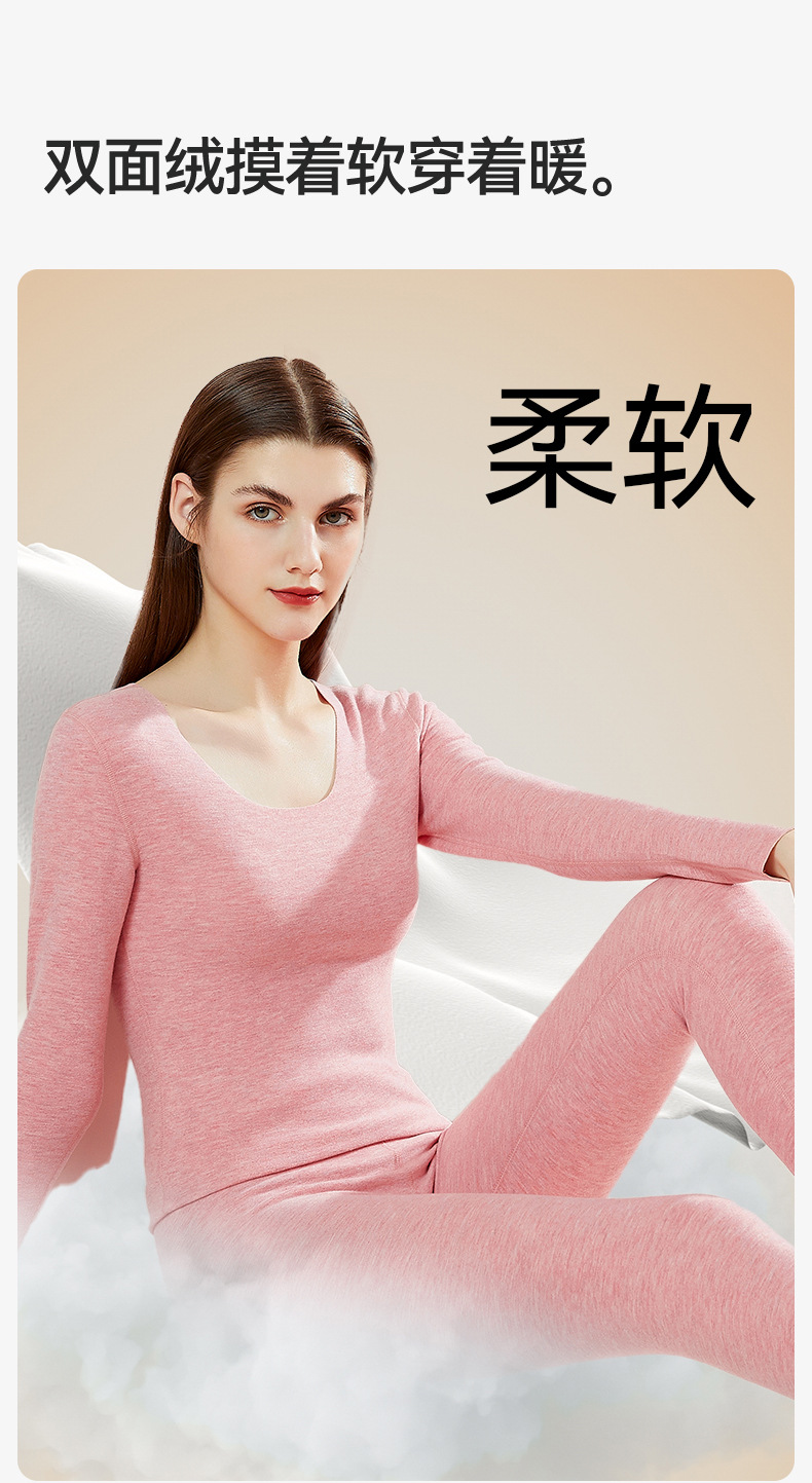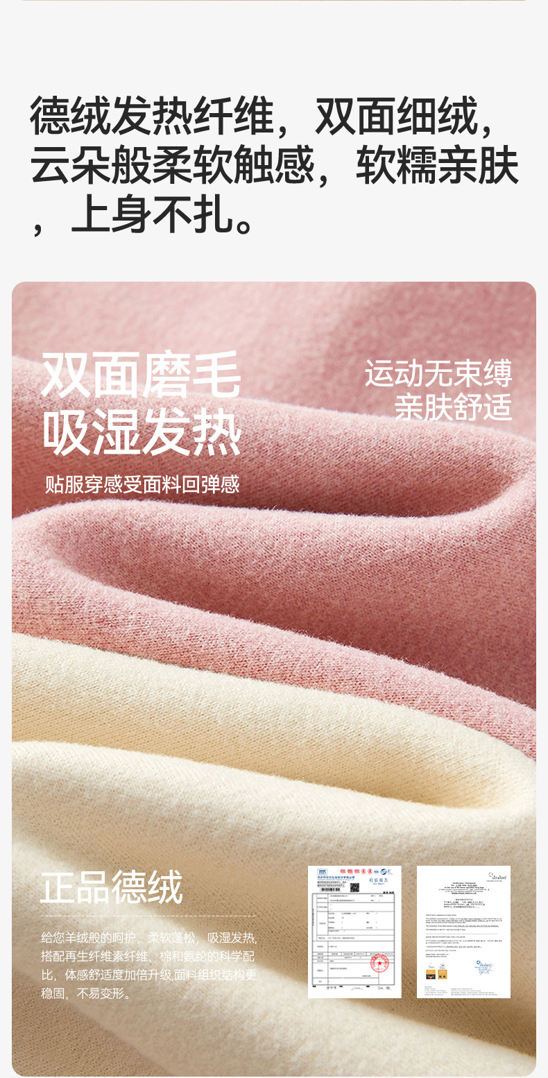 【高品质真蚕丝德绒】保暖内衣女士套装 双面无痕加绒加厚抗菌秋衣 H244270158