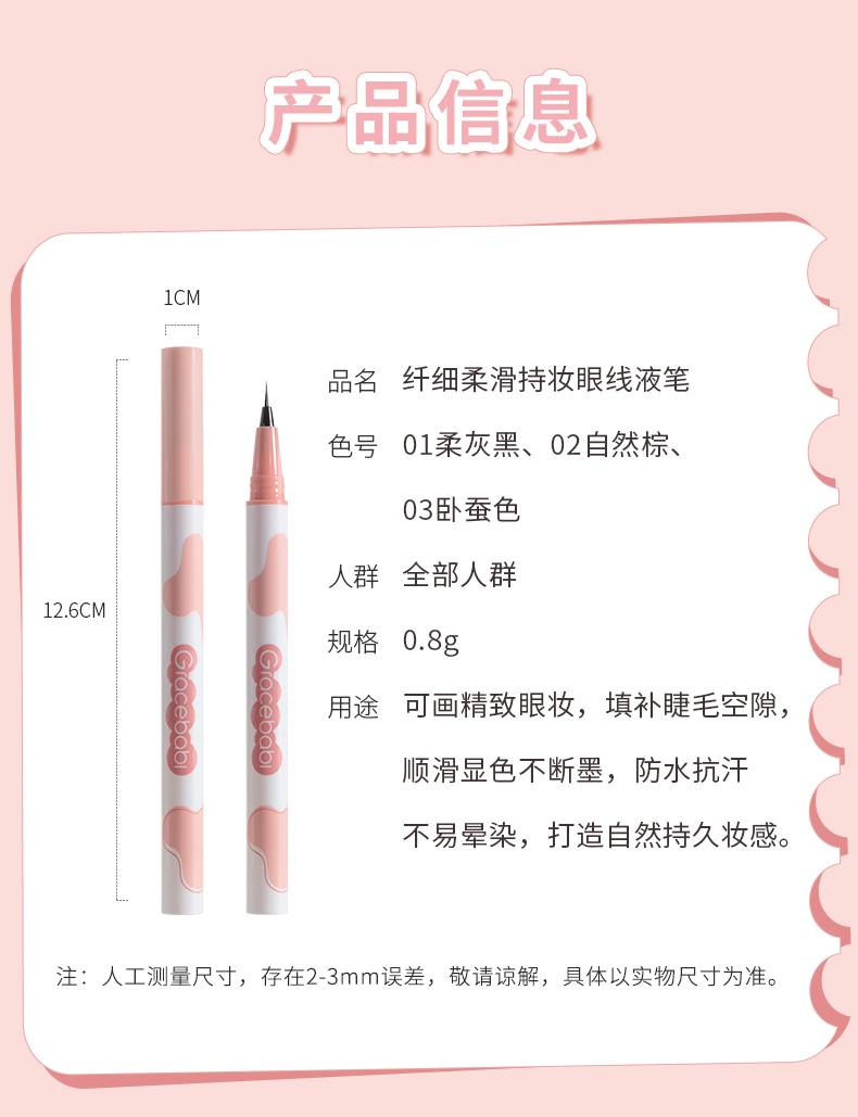 【品牌好物-两支装】Gracebabi纤细柔滑持妆眼线液笔 卧蚕笔持久 防水防汗