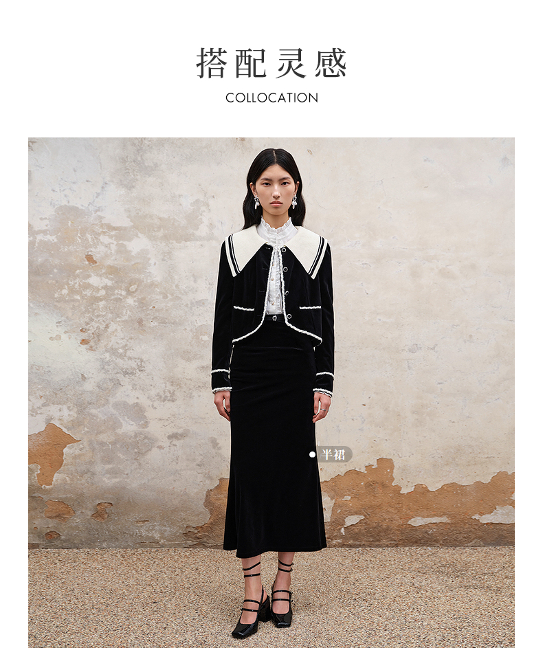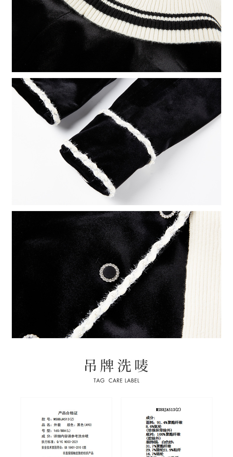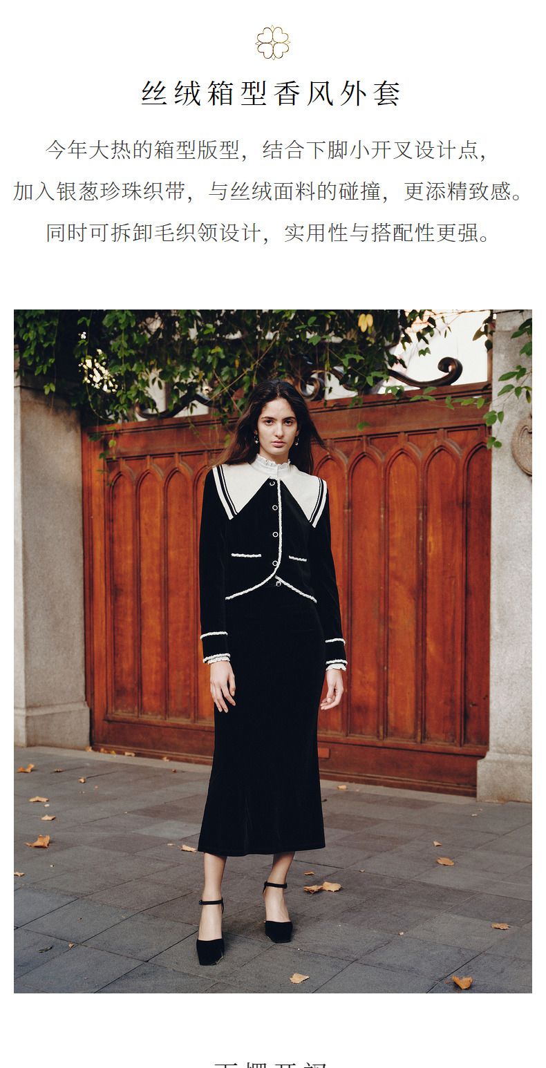 MAXRIENY法式复古氛围感小香风丝绒外套23秋季高级优雅气质感(货号:MS88JA513)