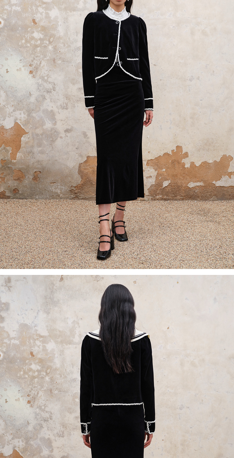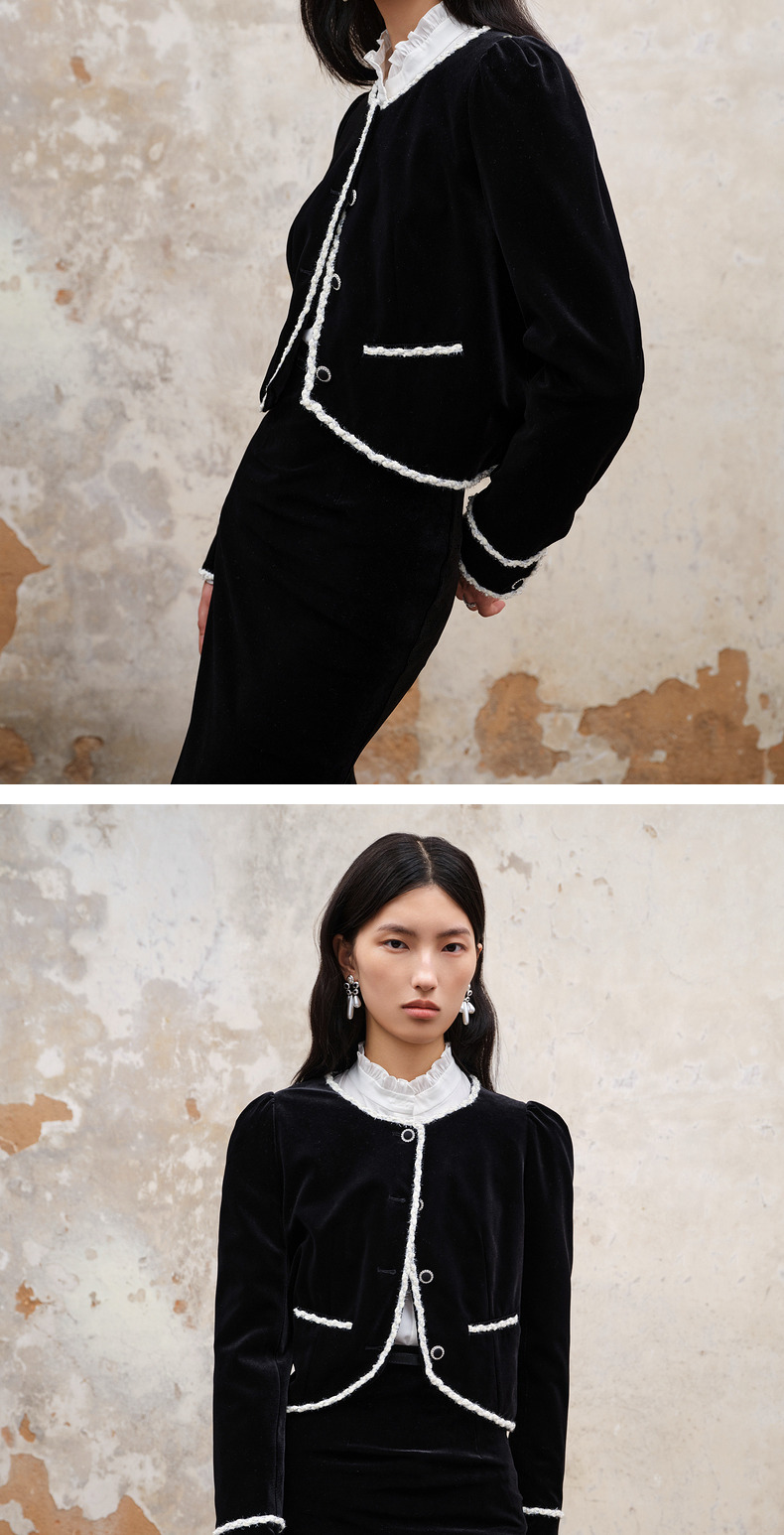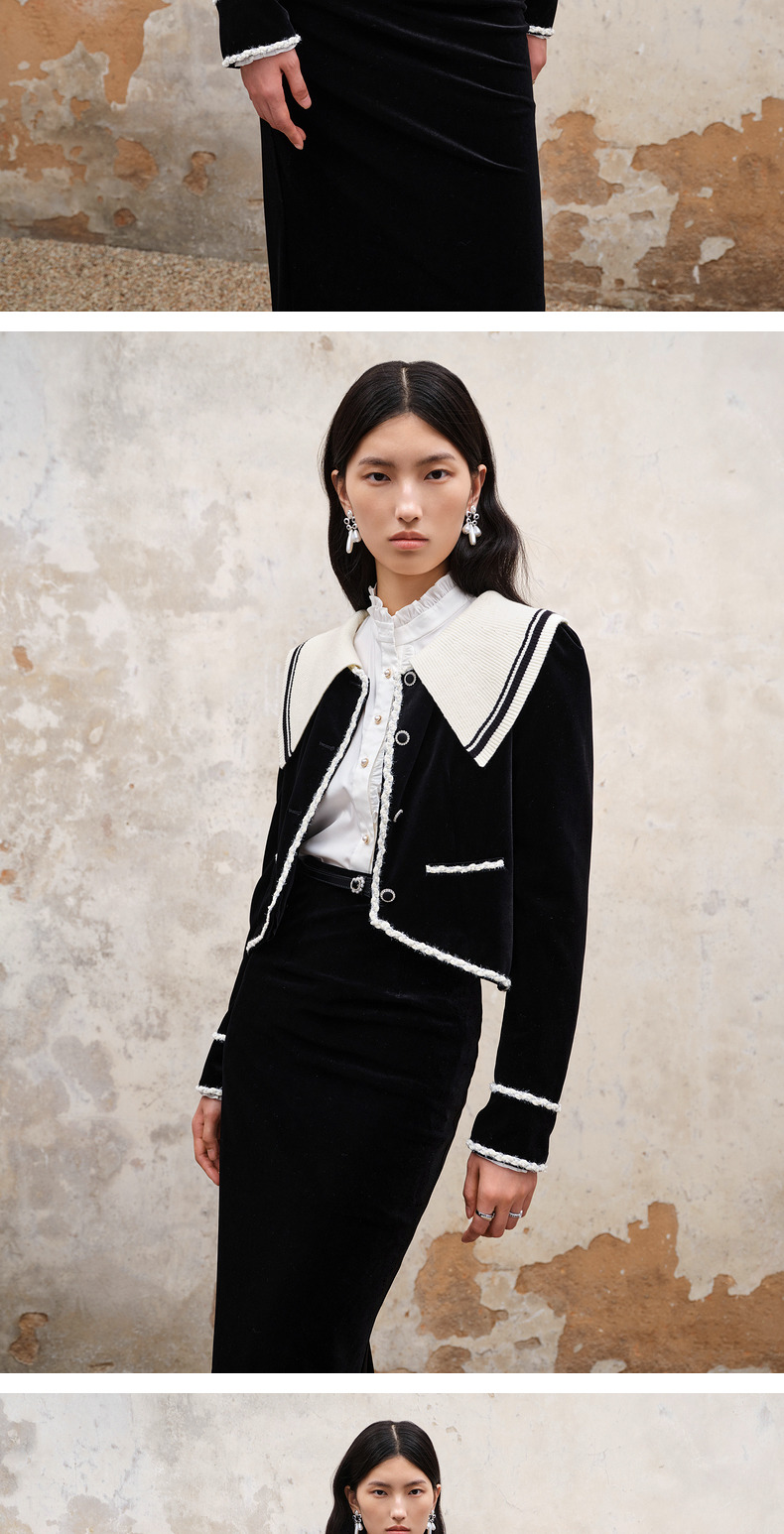 MAXRIENY法式复古氛围感小香风丝绒外套23秋季高级优雅气质感(货号:MS88JA513)