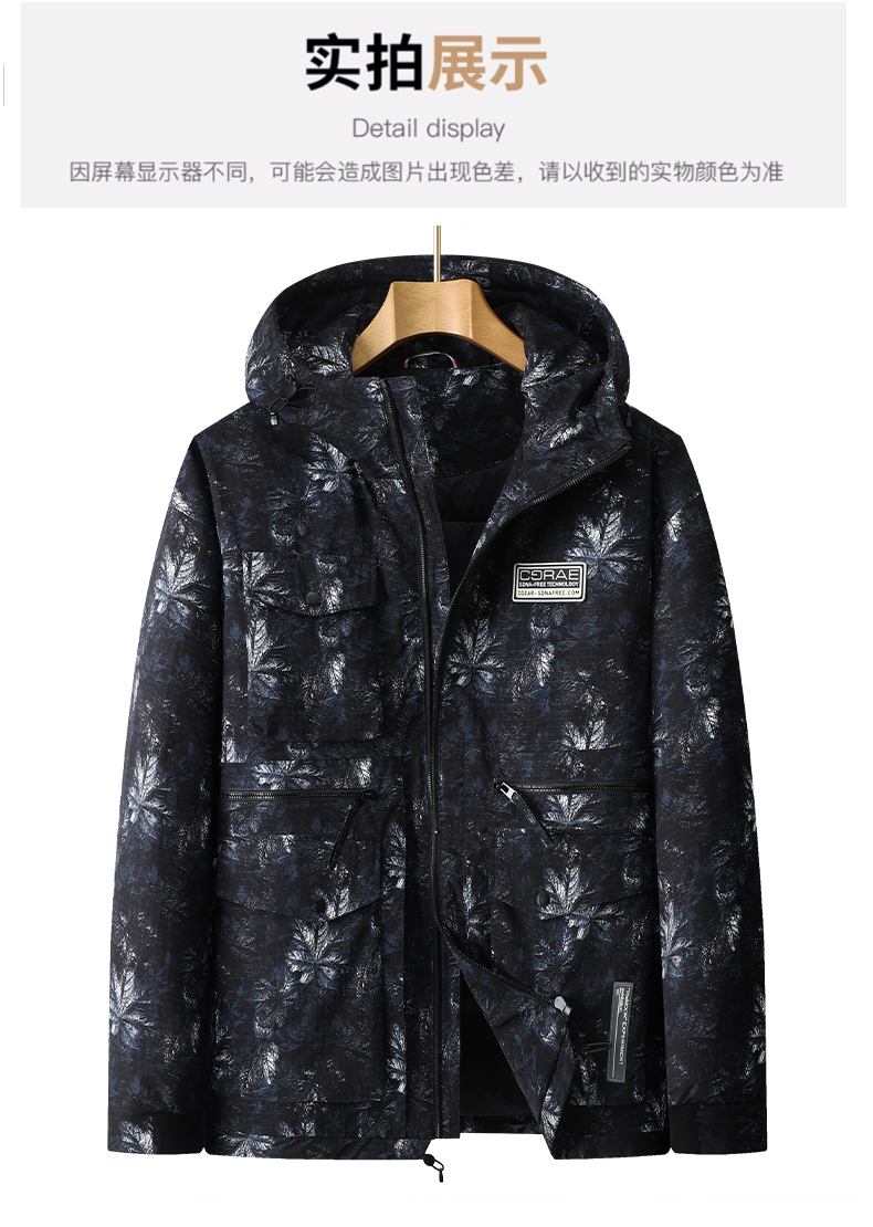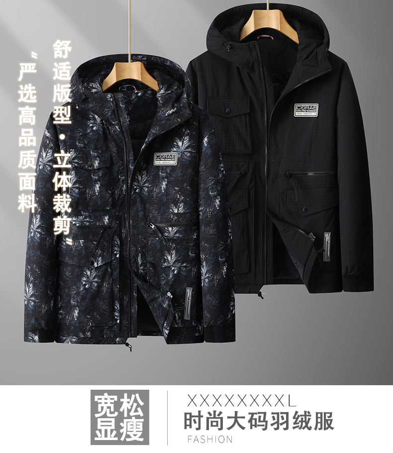 【特大码】【新款DPX】大依优型大码潮款迷彩工装连帽羽绒服鸭绒外套休闲胖子大码男休闲宽松加肥加大上衣