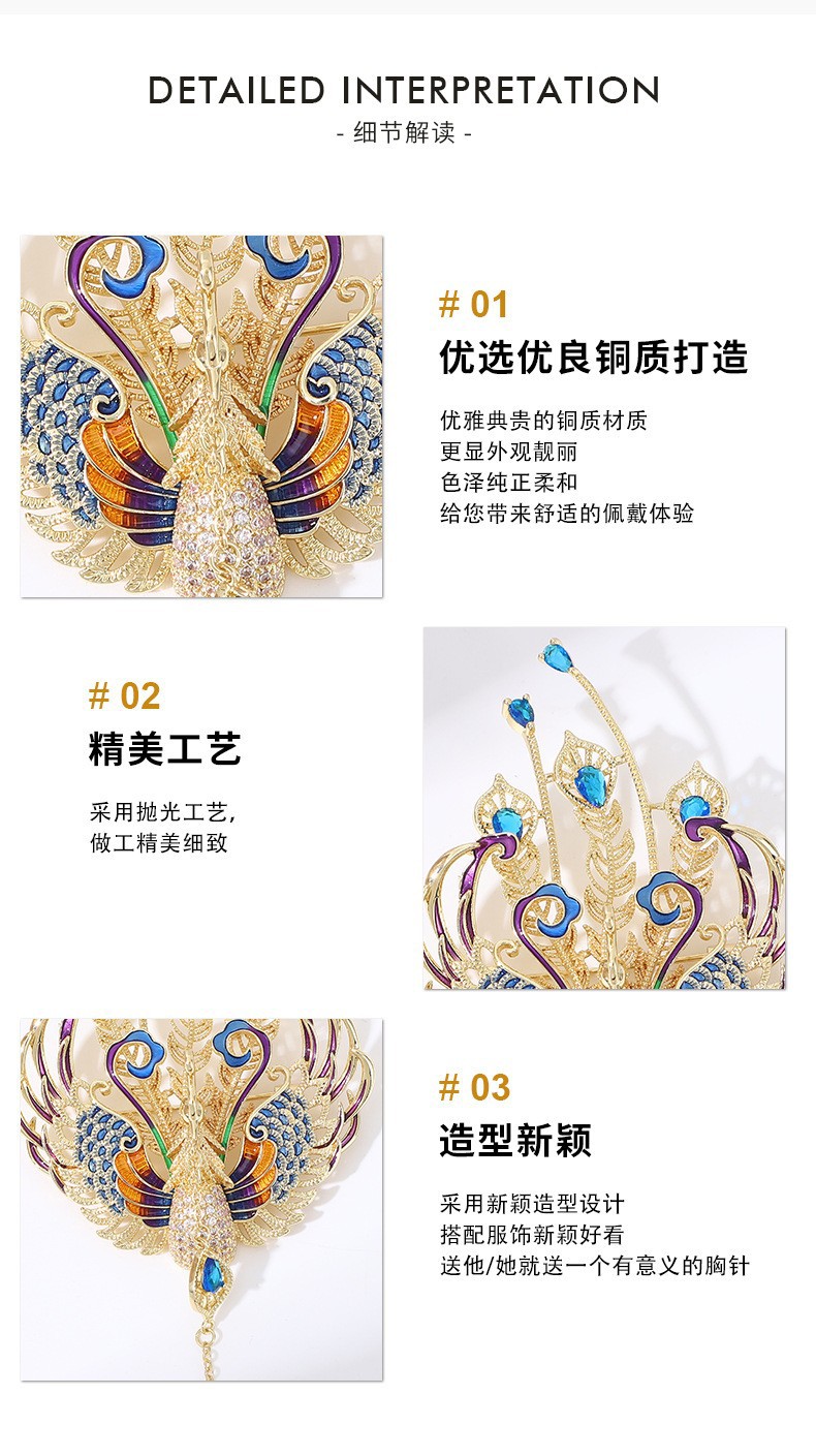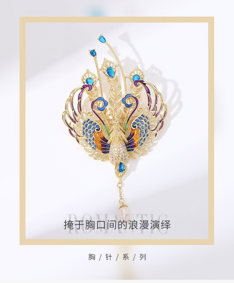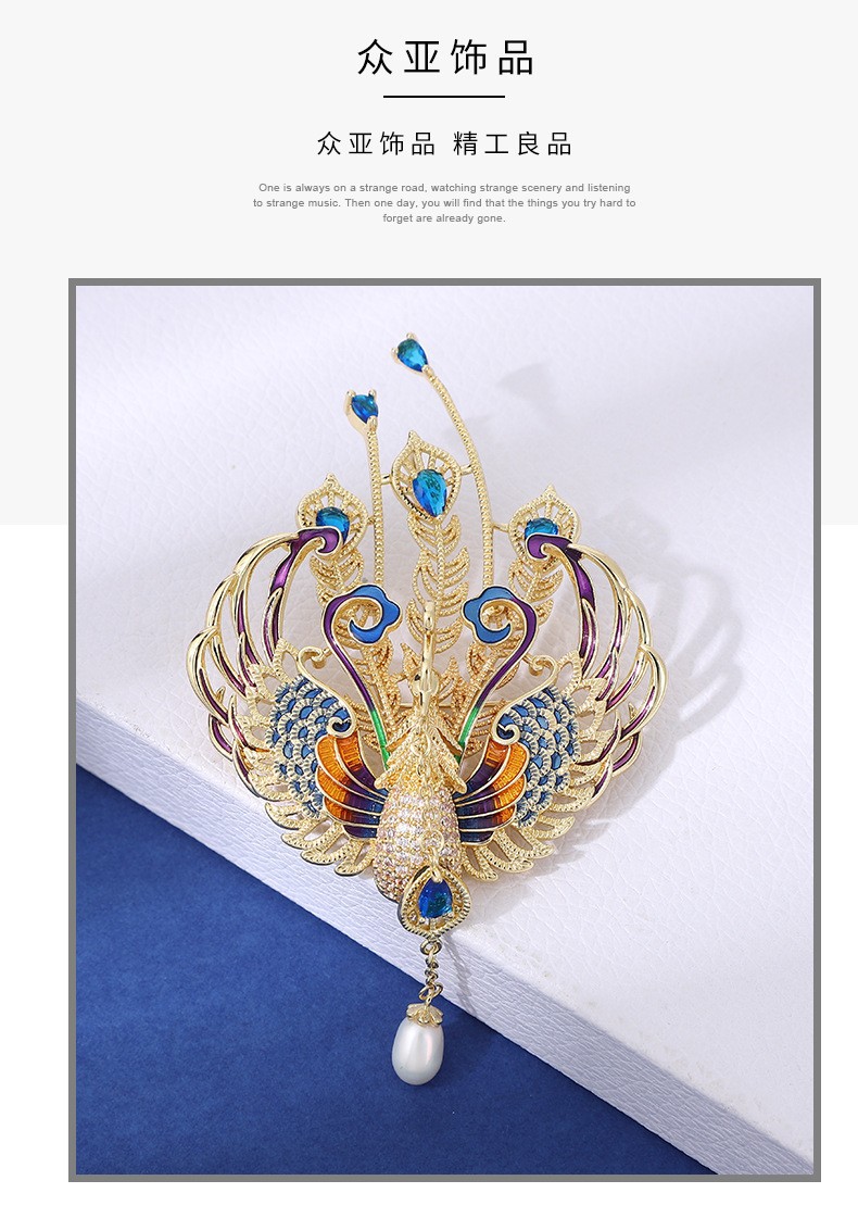 雀说 中国风百鸟朝凤奢华珐琅凤凰胸针T4651
