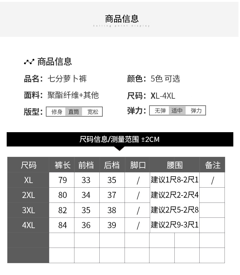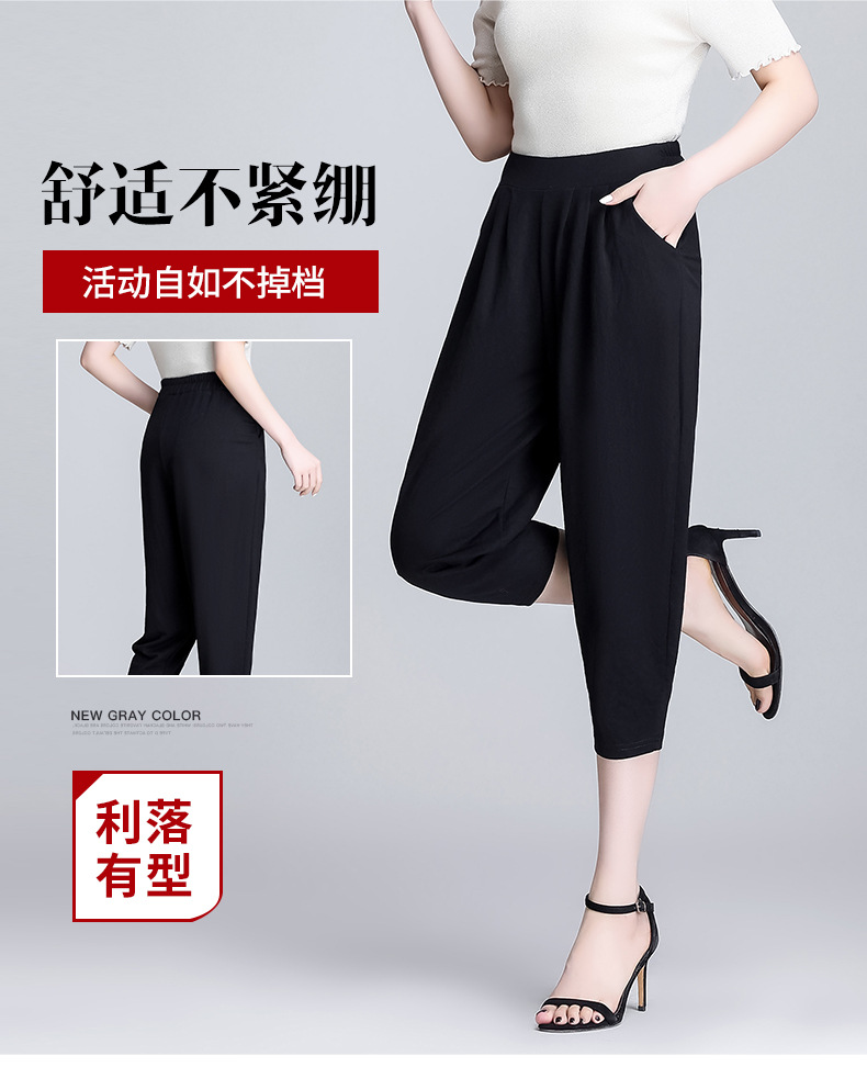MQ-1758-2009夏季薄新款松紧高腰加大七分休闲裤YY