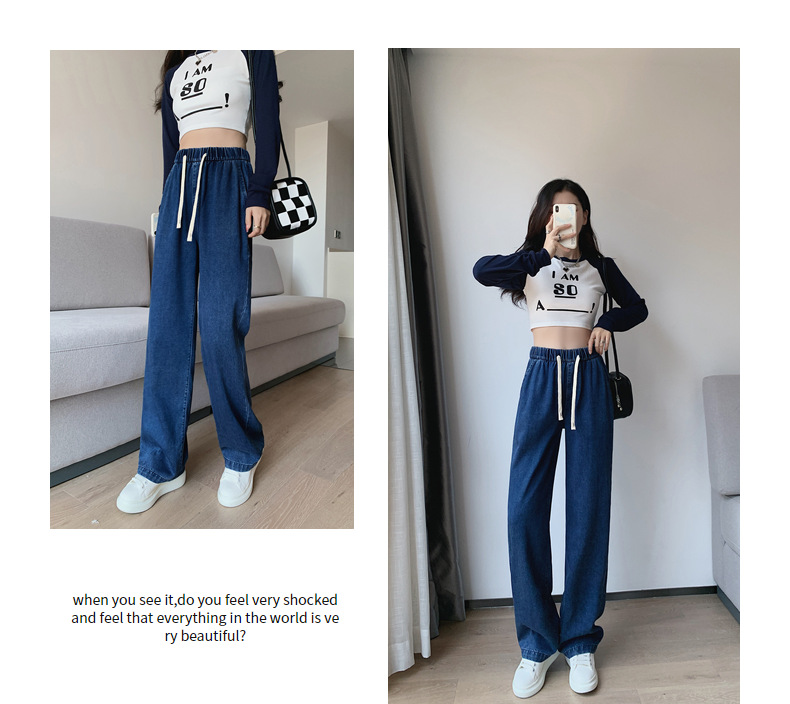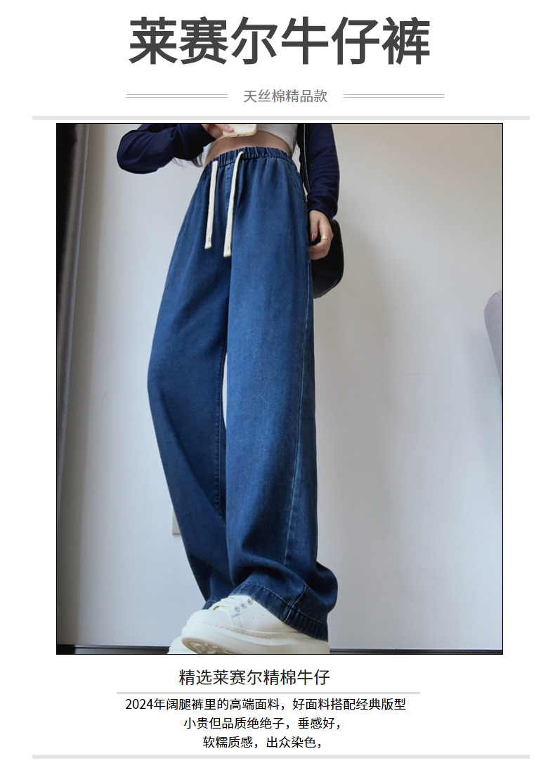 雀说【天丝牛仔裤】莱赛尔天丝棉牛仔直筒阔腿休闲女裤子ALC166