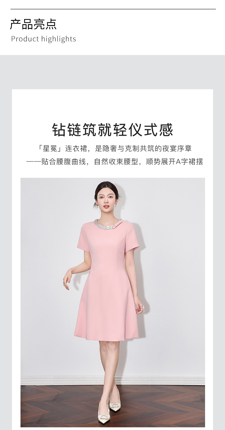 「高货wl」全新升级【铂金会员330/天猫449/差价119】(35725)洛诗琳法式重工钉钻连衣裙2025夏季新款蝴蝶结轻礼服裙女
