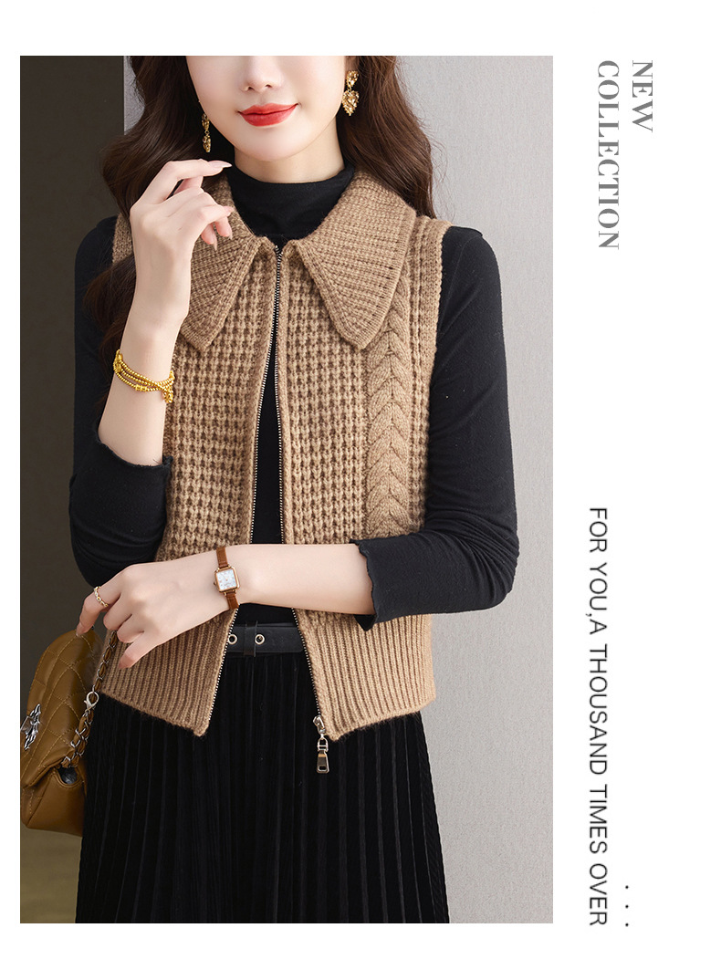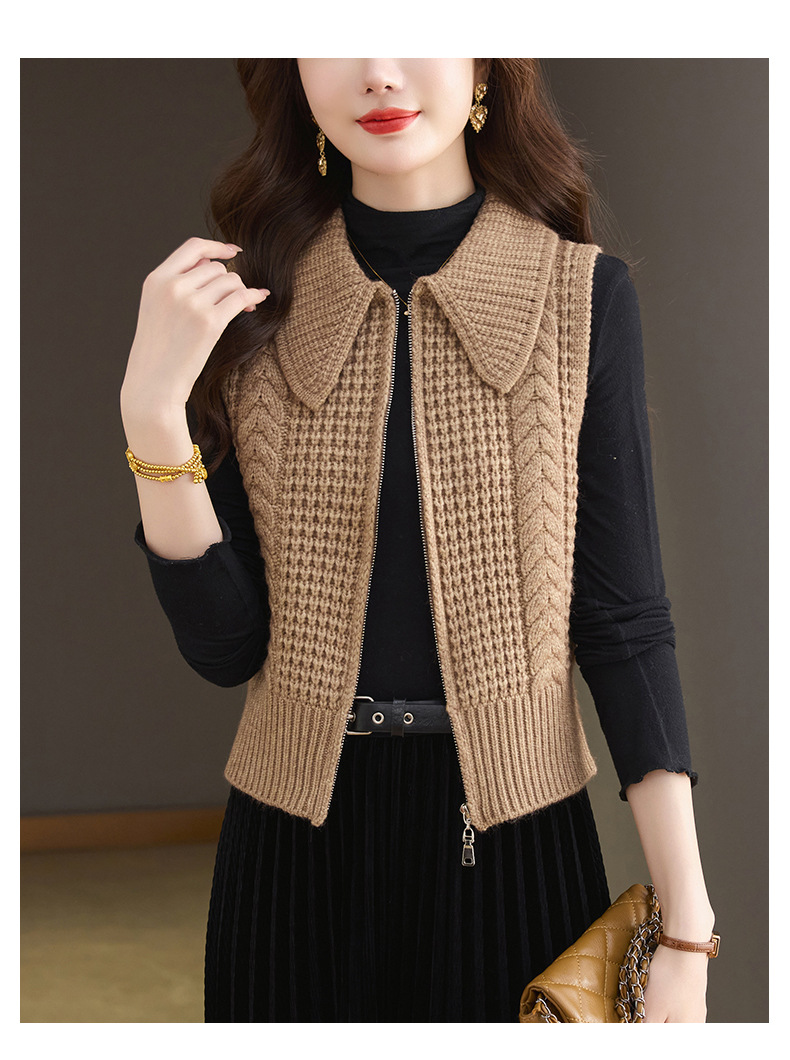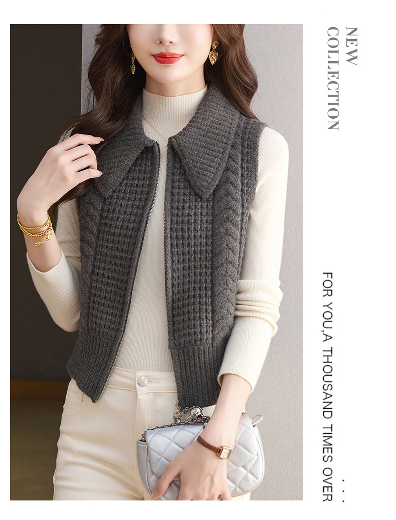 CC26-9122翻领针织马甲女士秋冬外穿2025早秋新款拉链叠穿宽松毛衣背心外搭