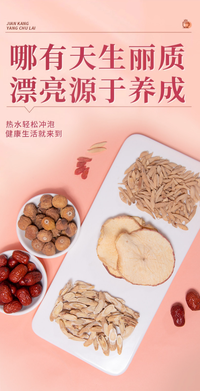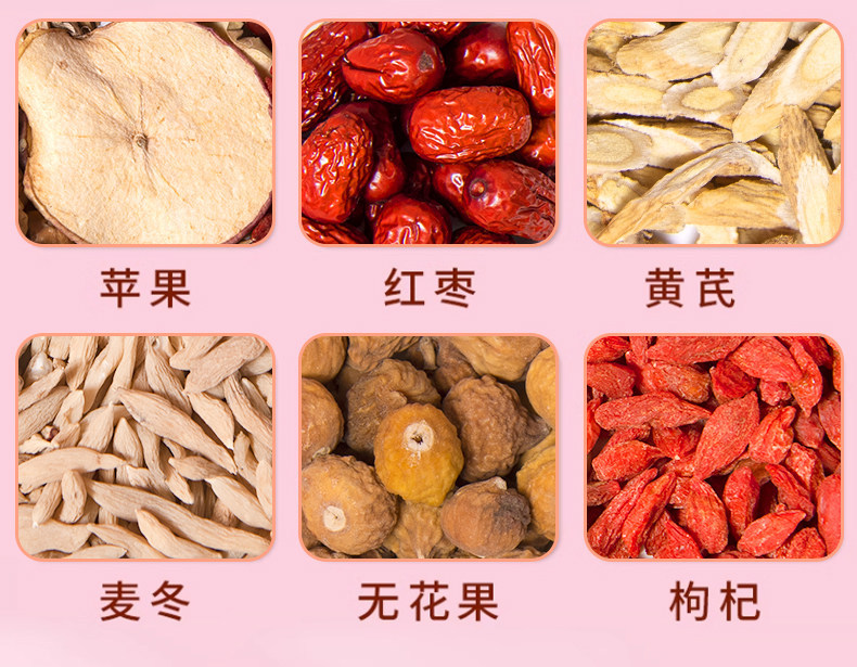 【去黄提亮!养出红润素颜肌】苹果黄芪水麦冬红枣素颜枸杞苹果干女生泡水喝的花果茶包冬季养生。xa