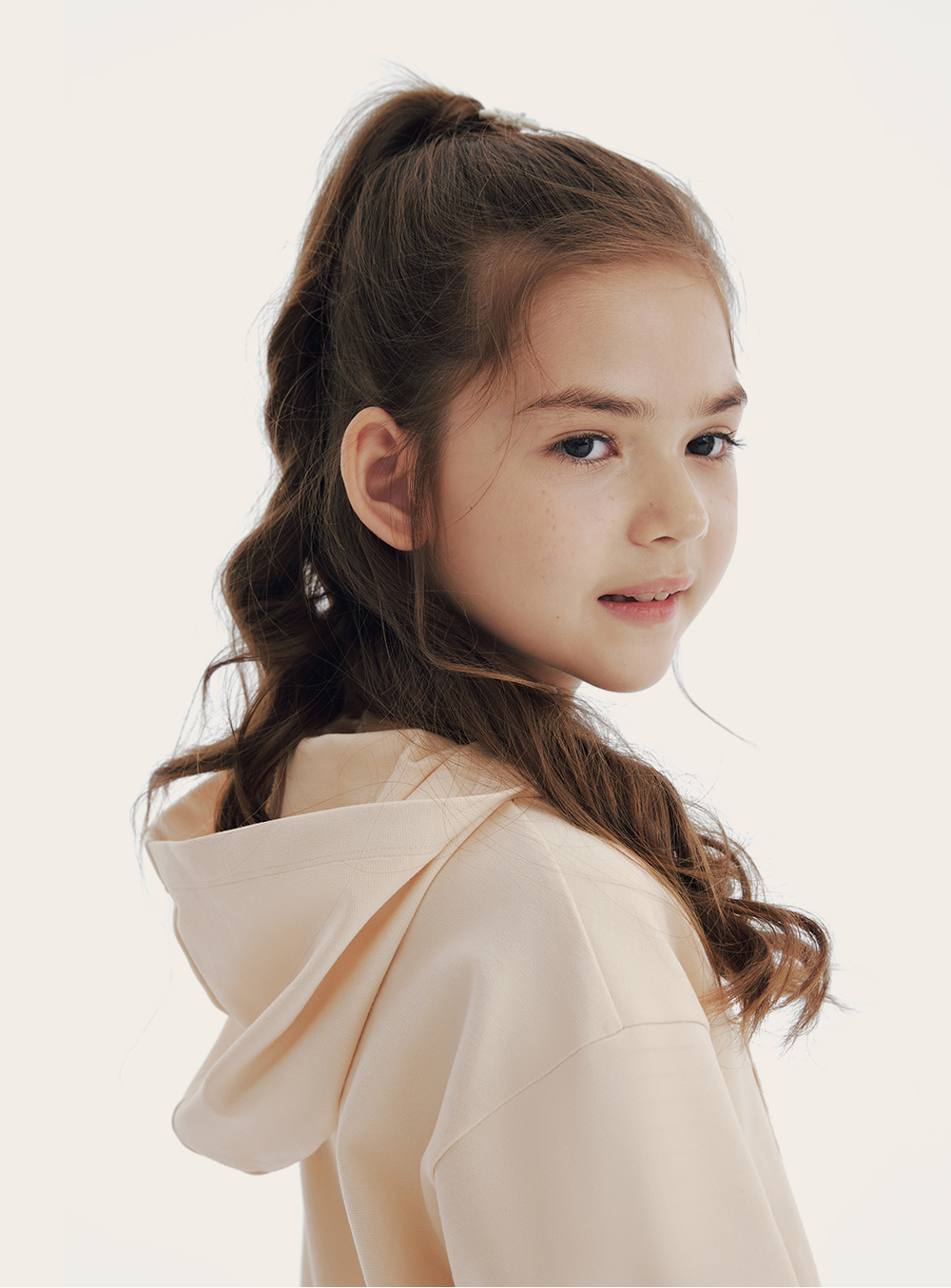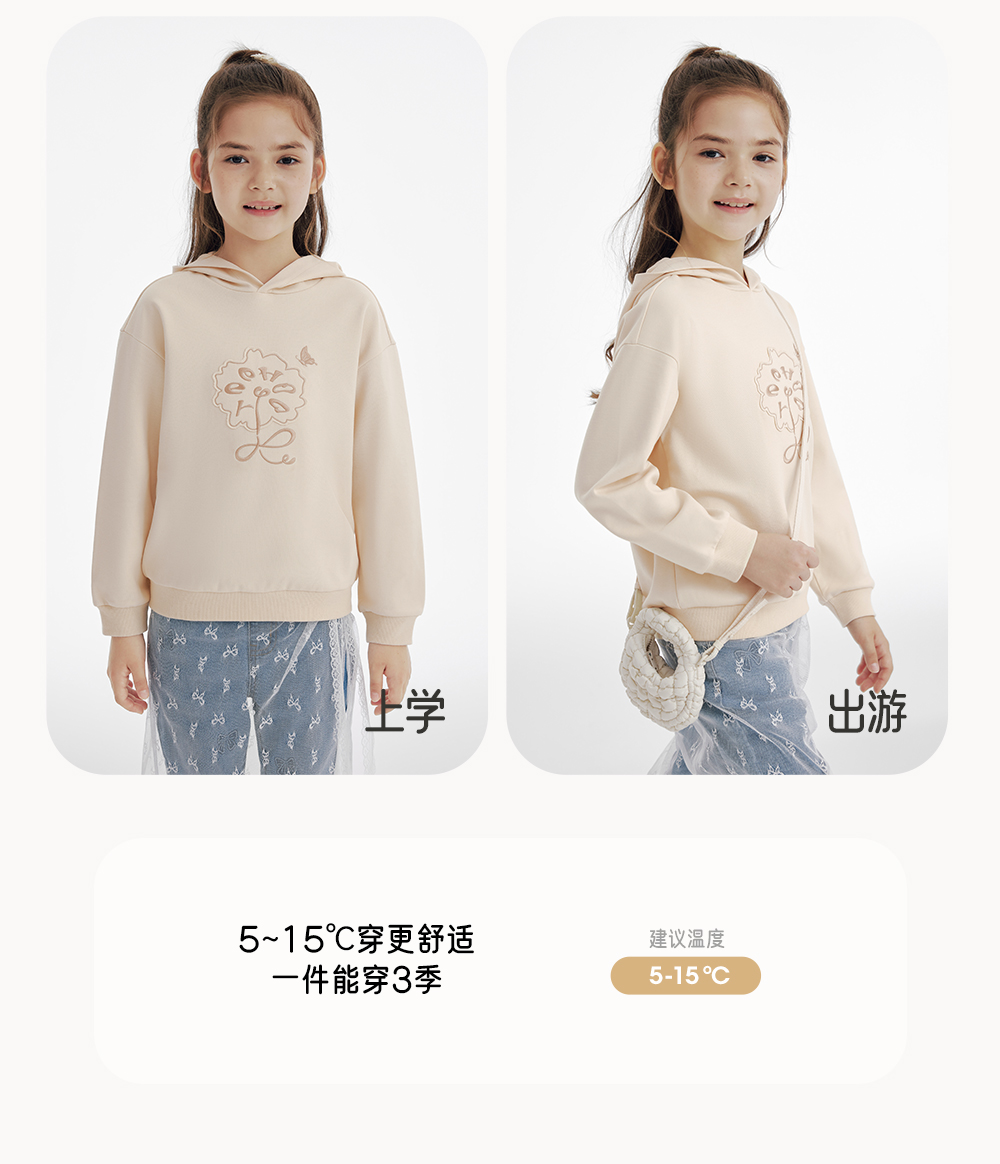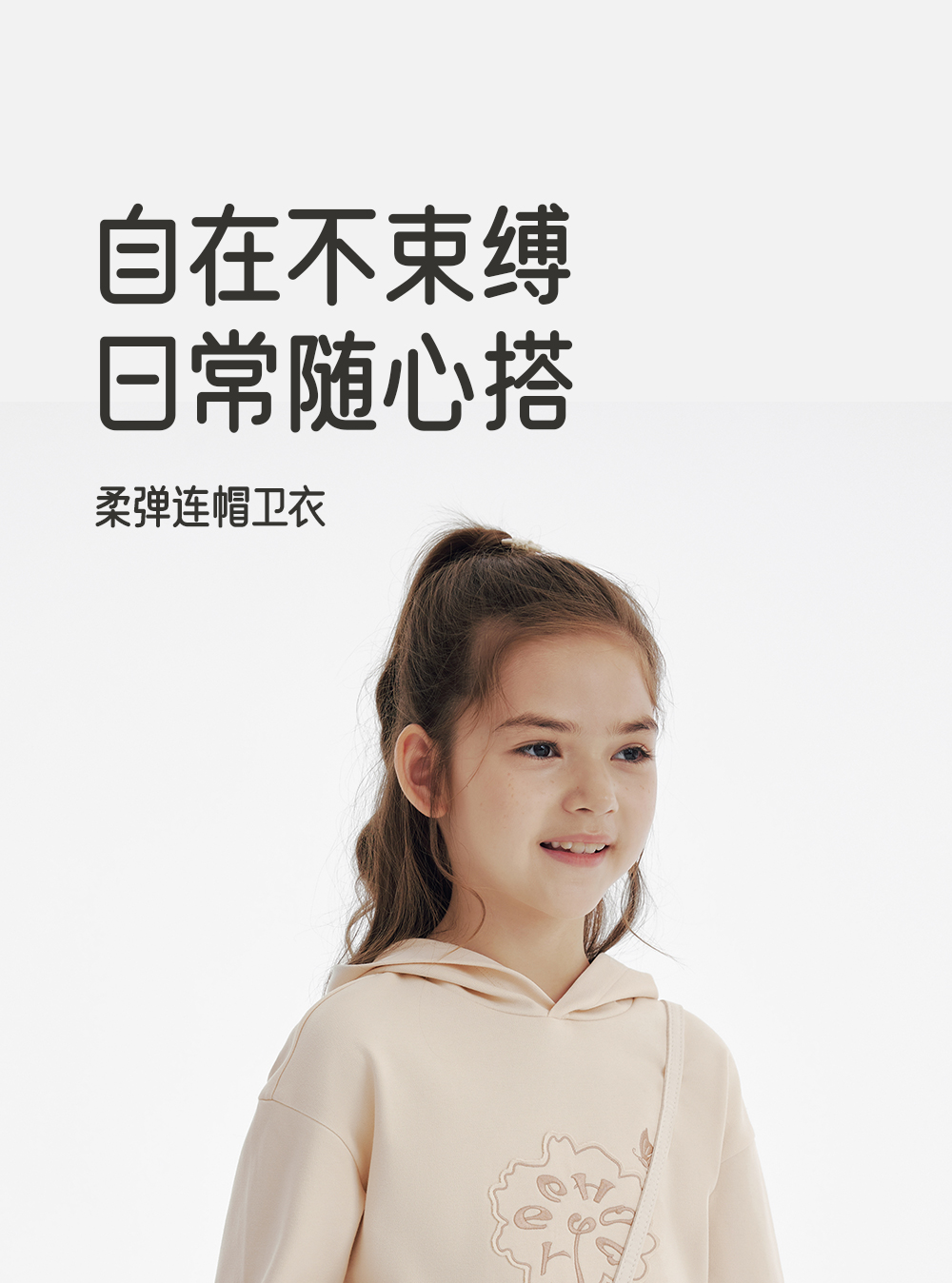 英氏女童连帽卫衣2025秋季新款休闲宽松上衣中大童纯色长袖套头衫