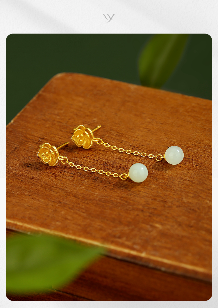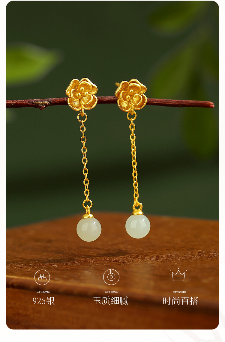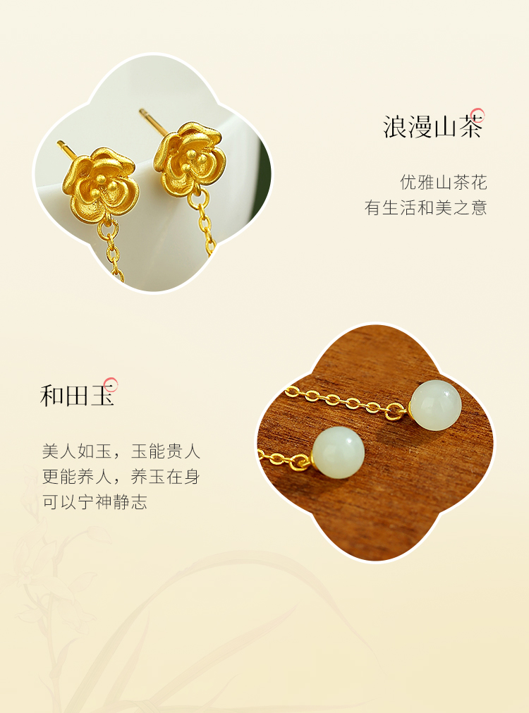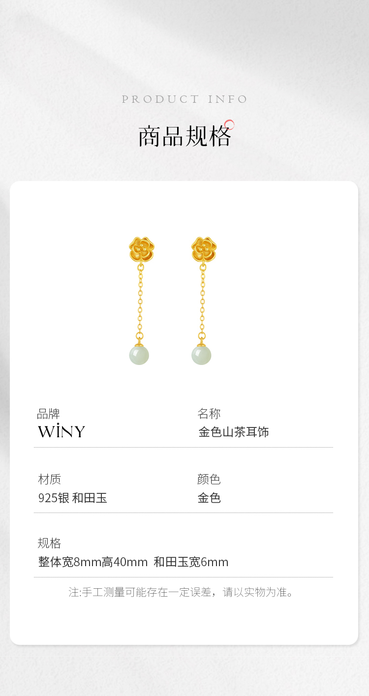 Winy925纯银金色山茶耳饰送女友闺蜜节日生日礼物