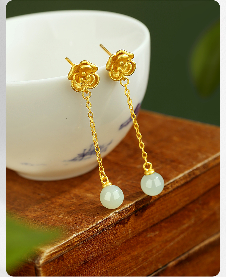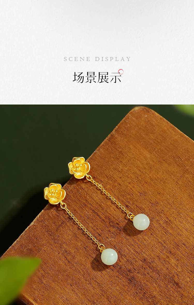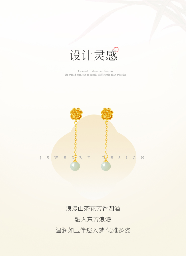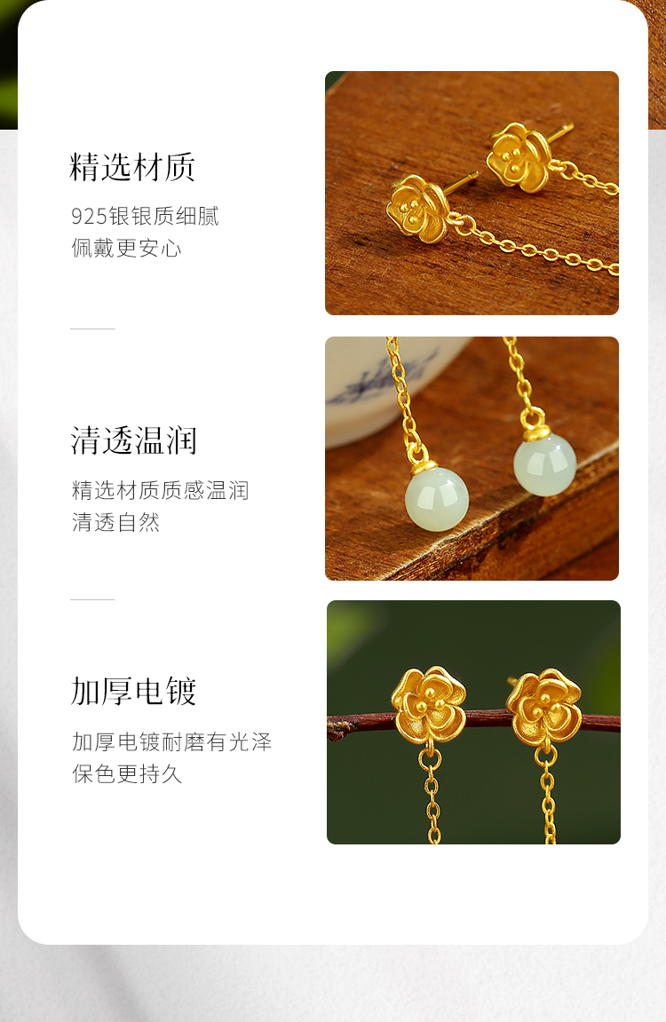 Winy925纯银金色山茶耳饰送女友闺蜜节日生日礼物