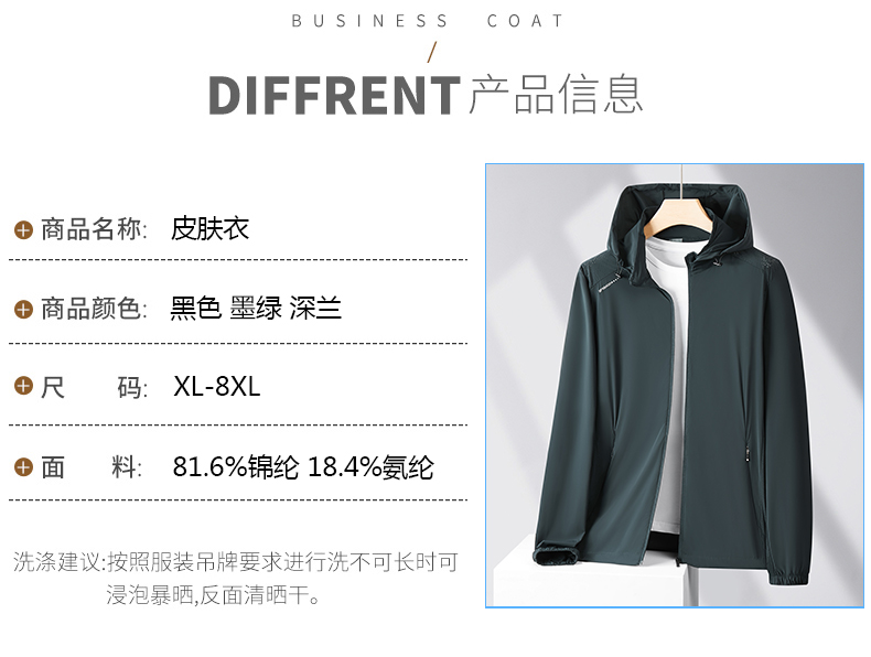 【防晒衣】【DWN】大依优型大码可拆卸帽外套高弹皮肤衣防晒外套男宽松加肥加大码上衣夹克薄款