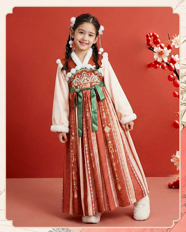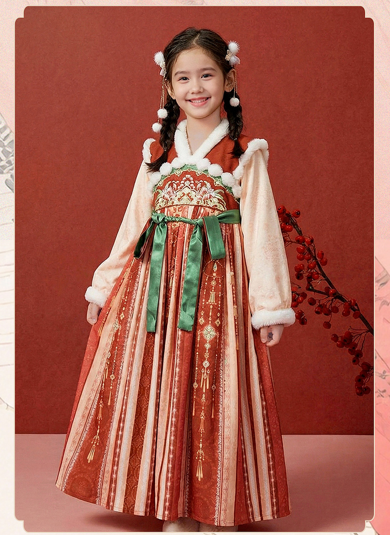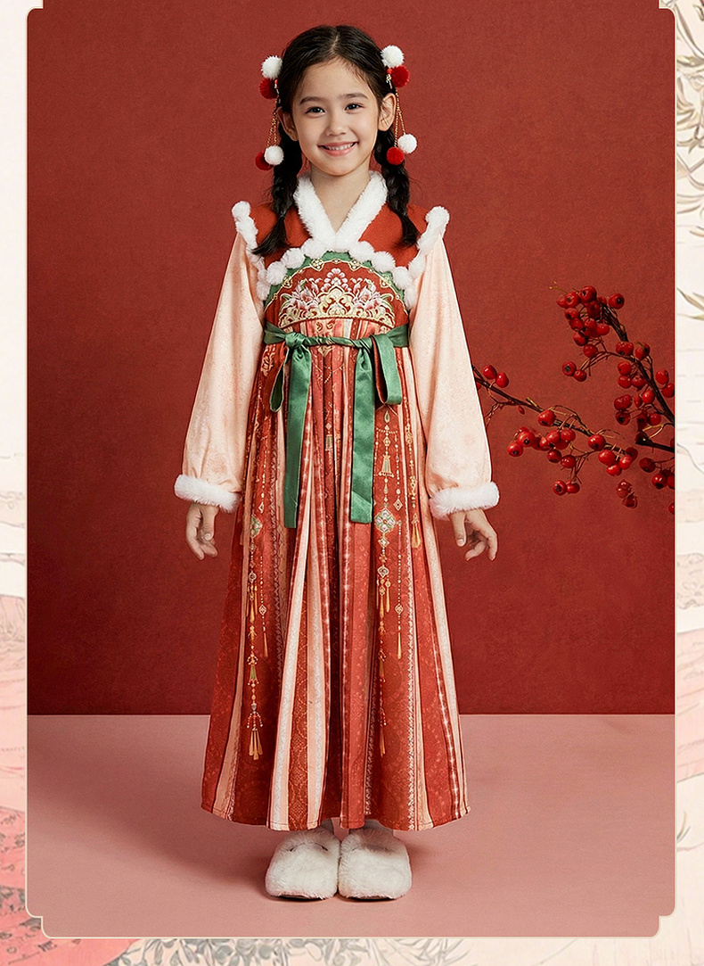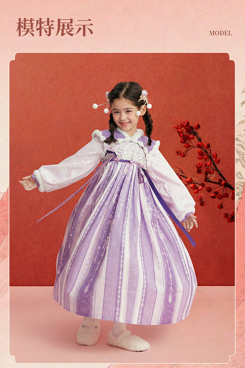 笛莎/Deesha 观山见中大童女童冬季国风连衣裙