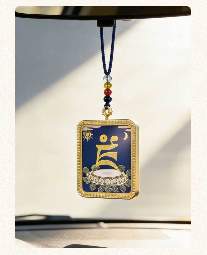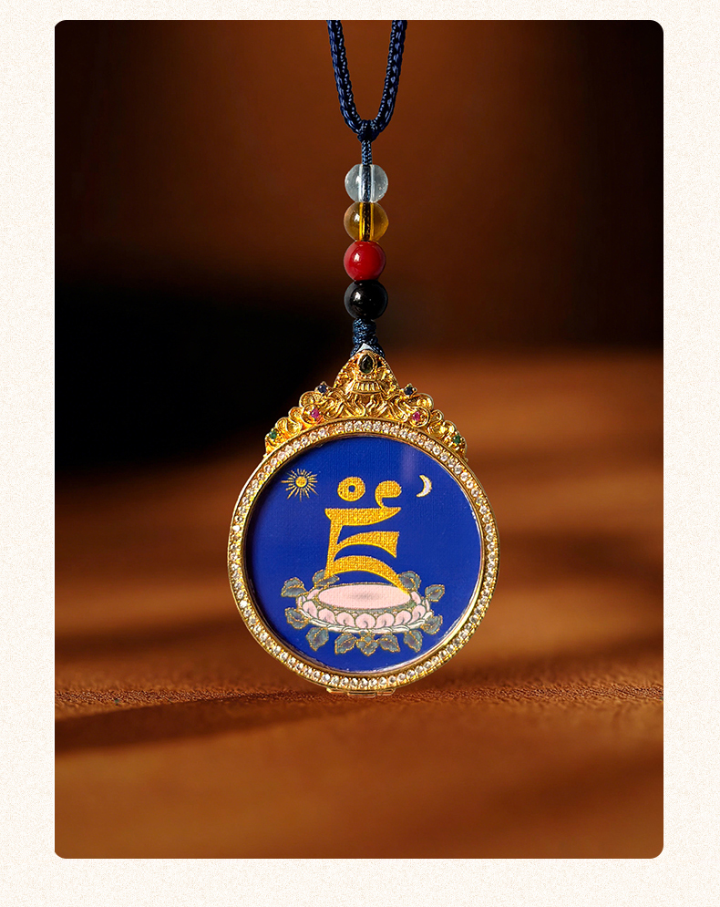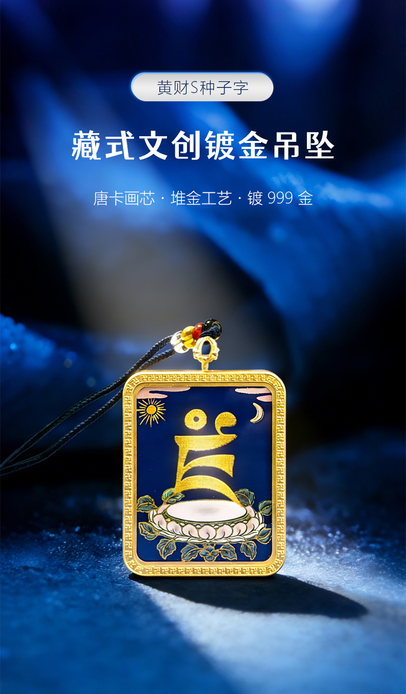 新品黄财神种子字藏式文创镀金嘎乌盒挂件唐卡画心堆金工艺
