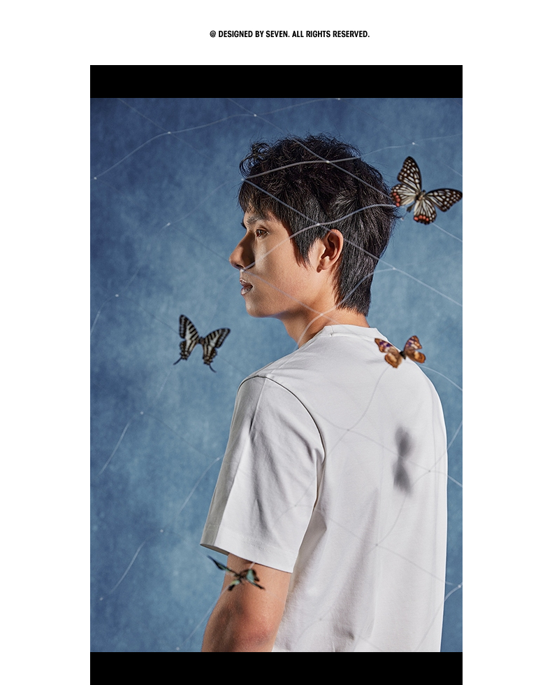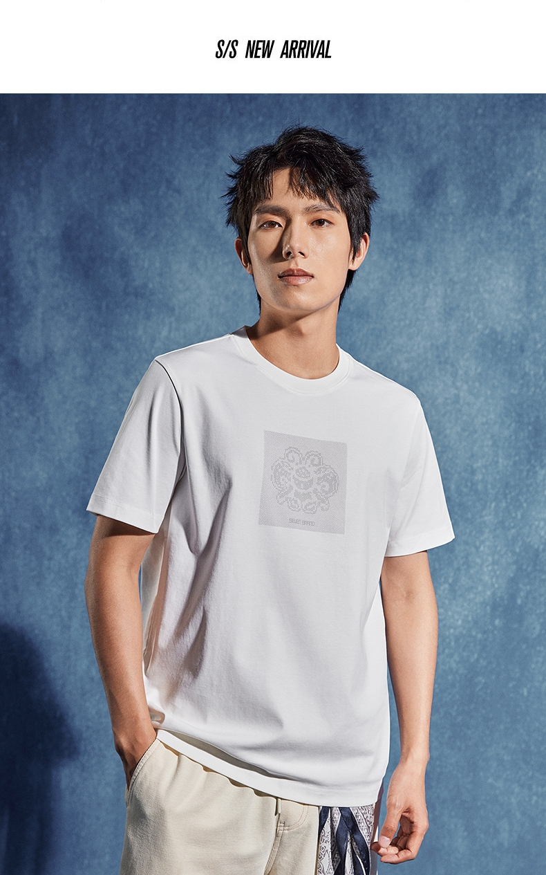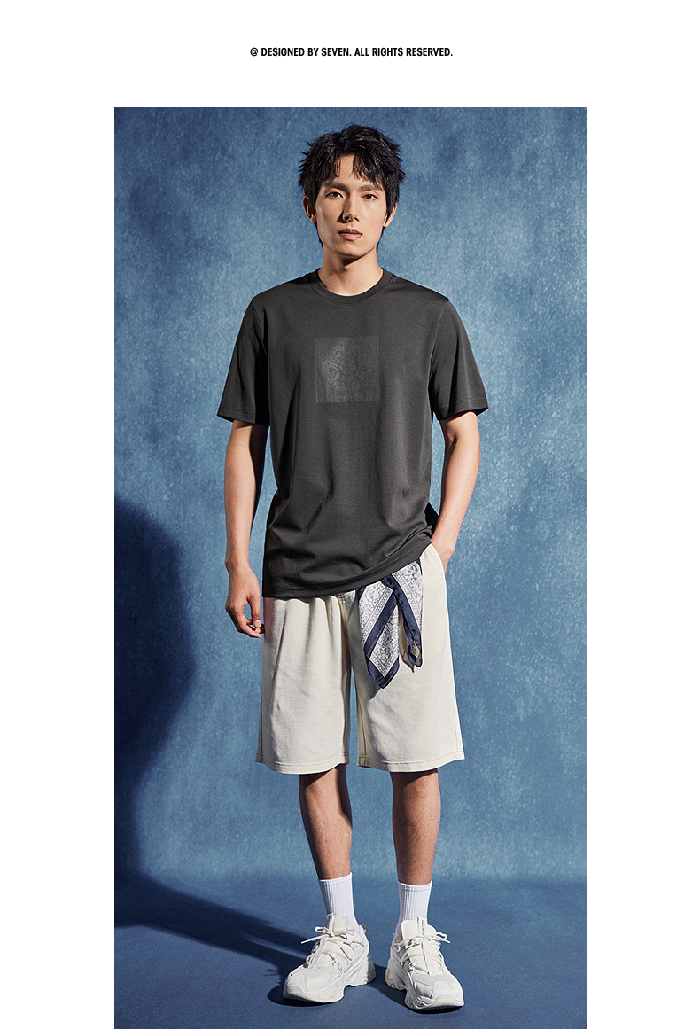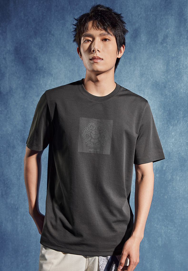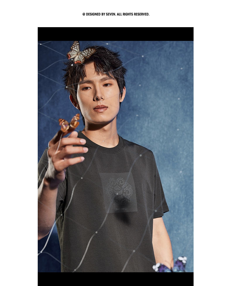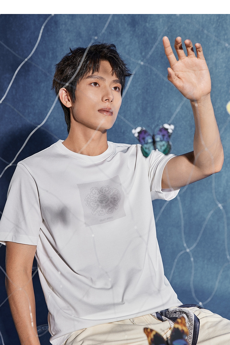 【非遗苗绣蝴蝶妈妈系列】柒牌短袖T恤男夏季新款时尚休闲上衣薄 126T72690
