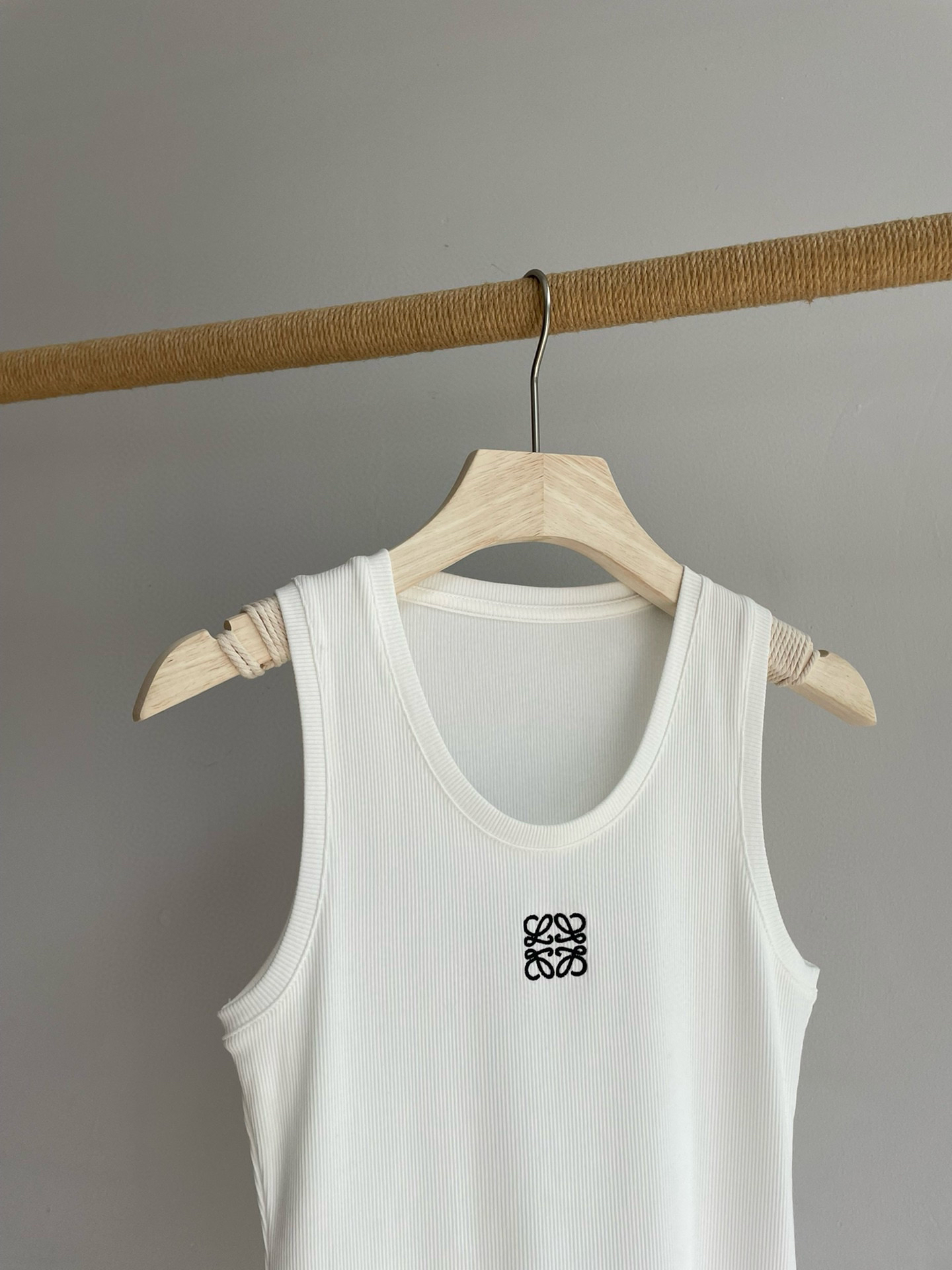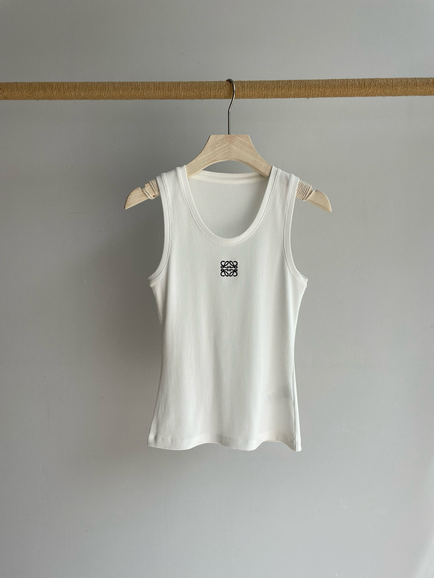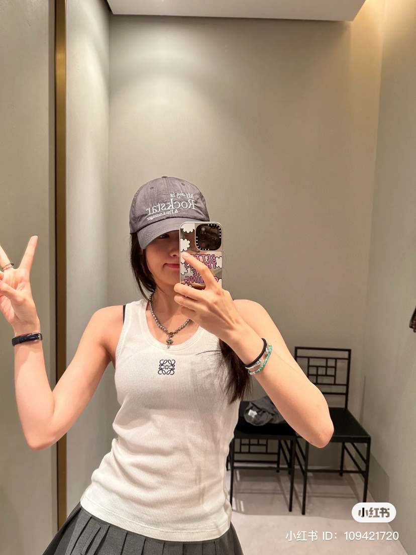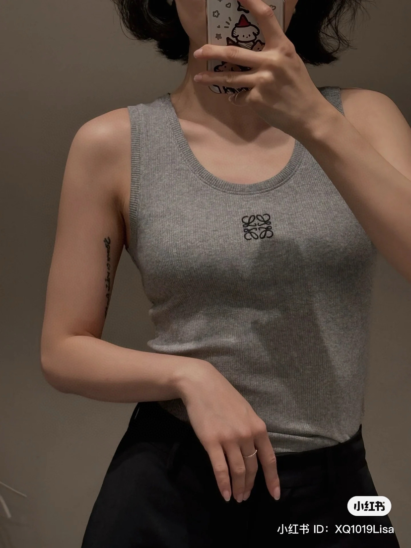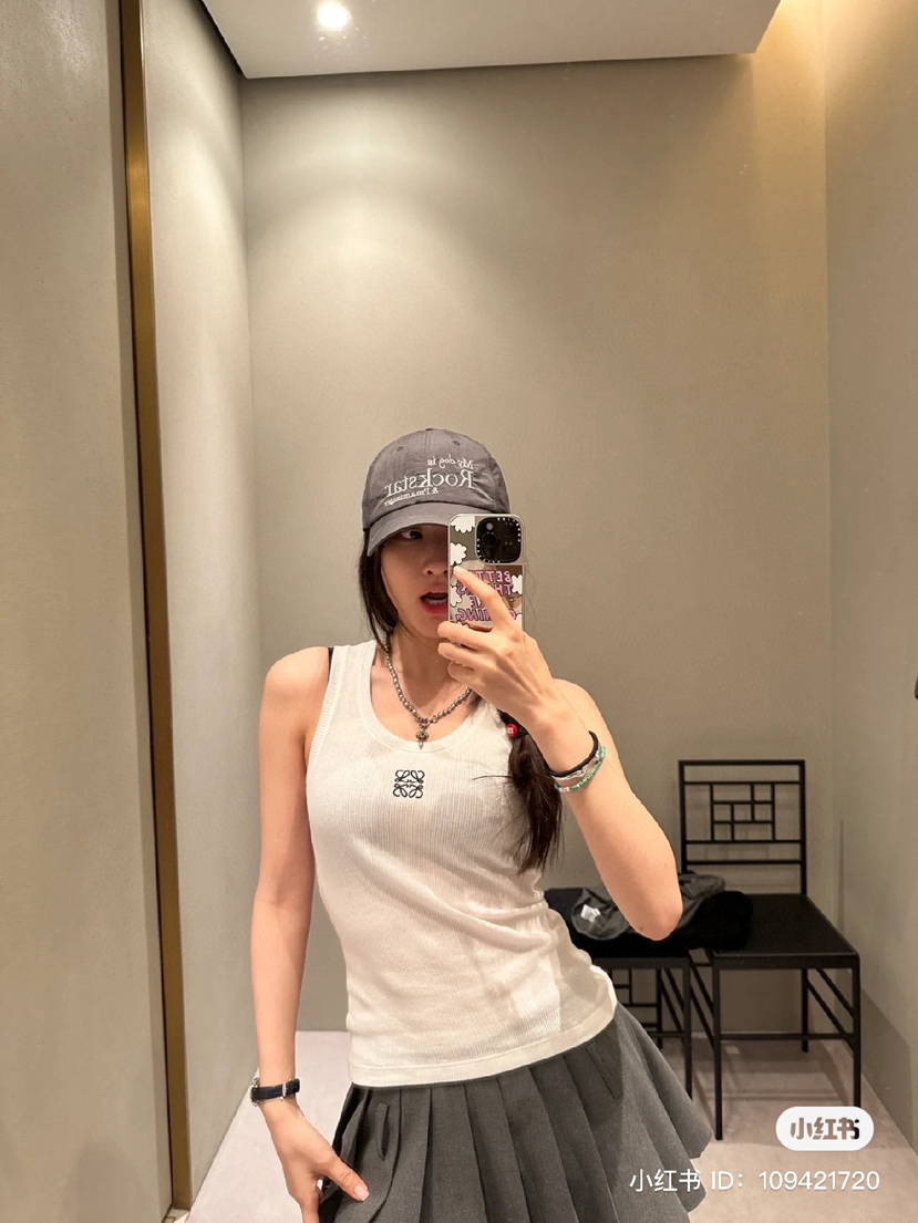 19-2 女神们集体入手 lew徽标刺绣 经典U领 坑条弹力背心 我穿L理想 白色等十天