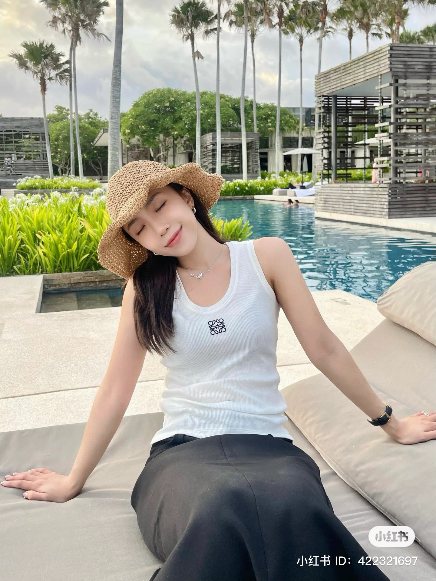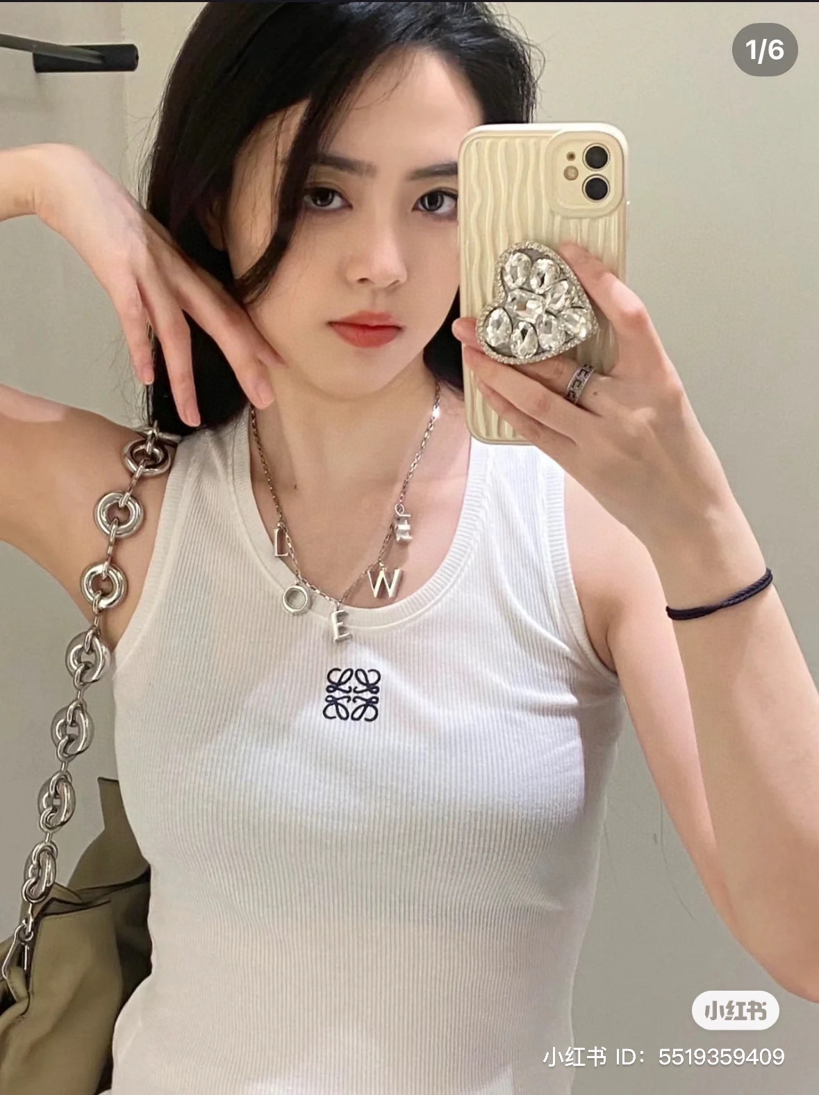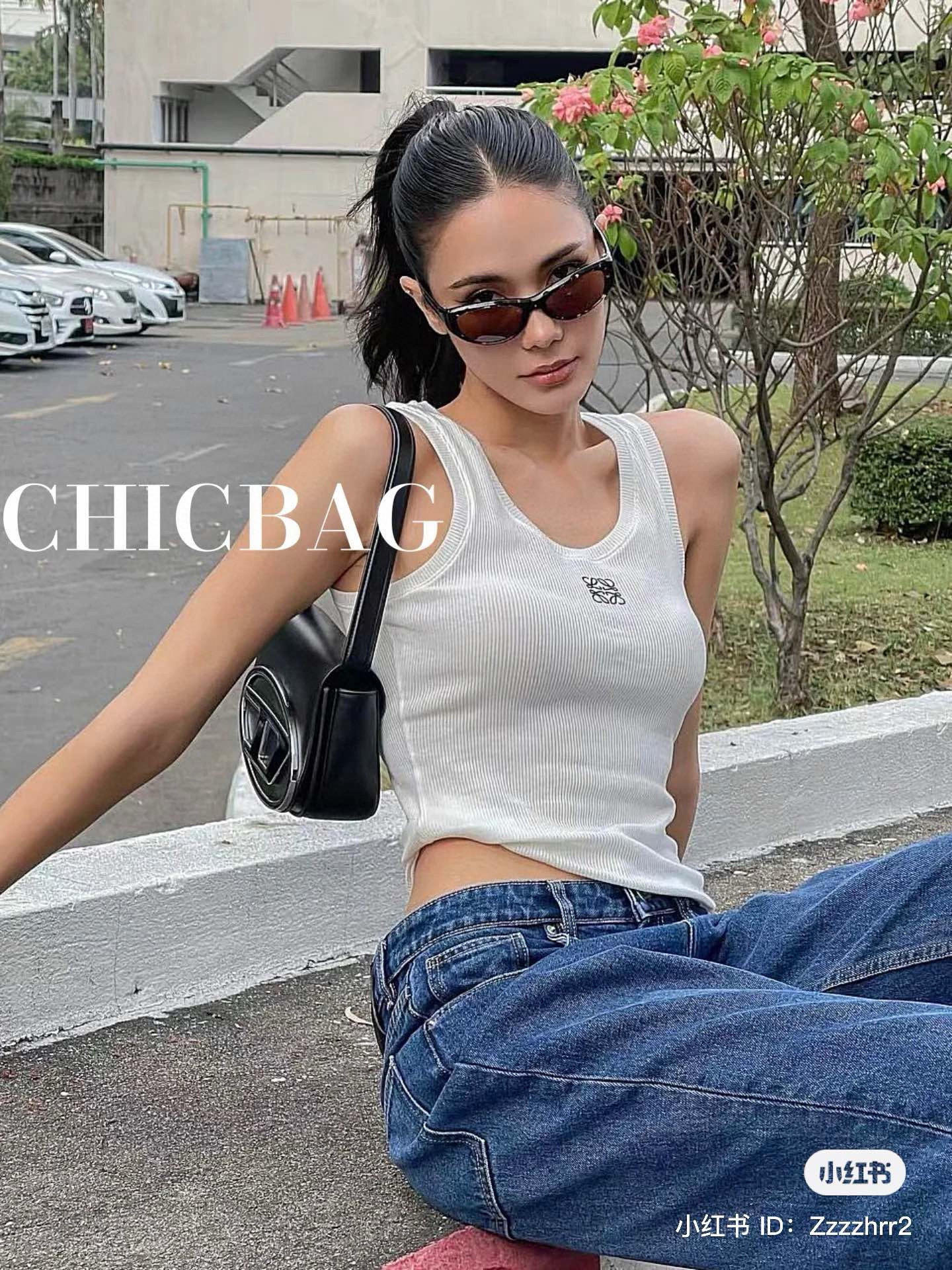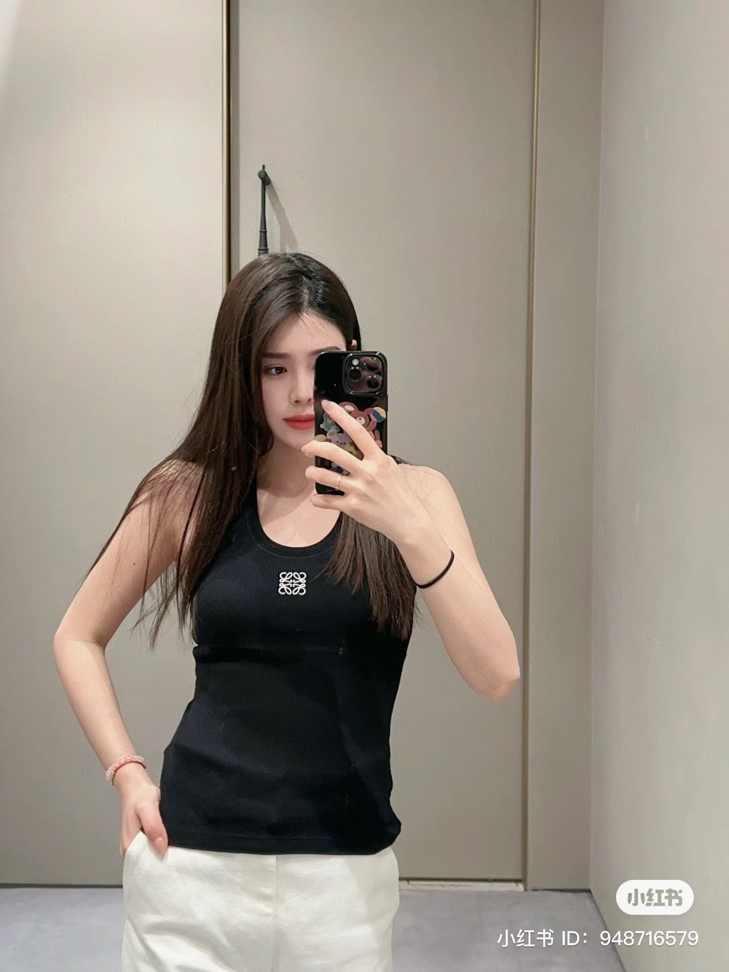 19-2 女神们集体入手 lew徽标刺绣 经典U领 坑条弹力背心 我穿L理想 白色等十天