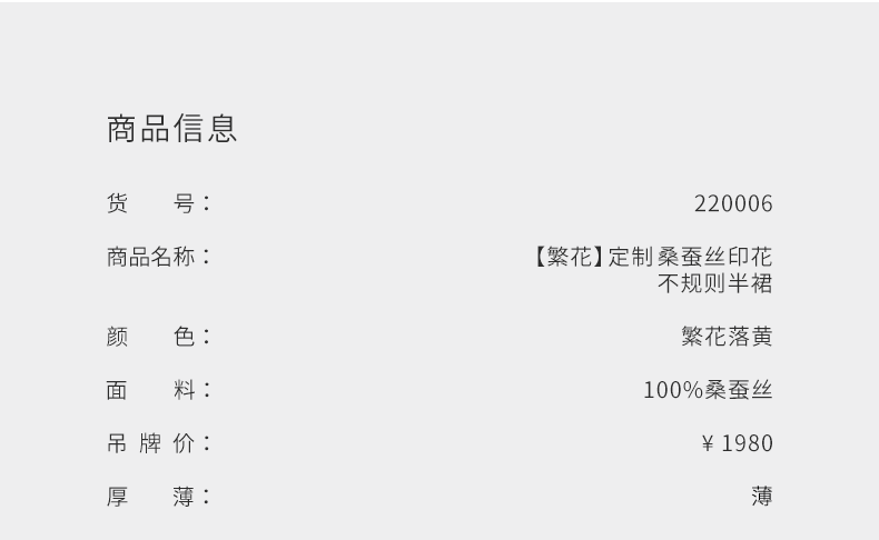 【繁花】品牌定制桑蚕丝印花不规则半裙/220006