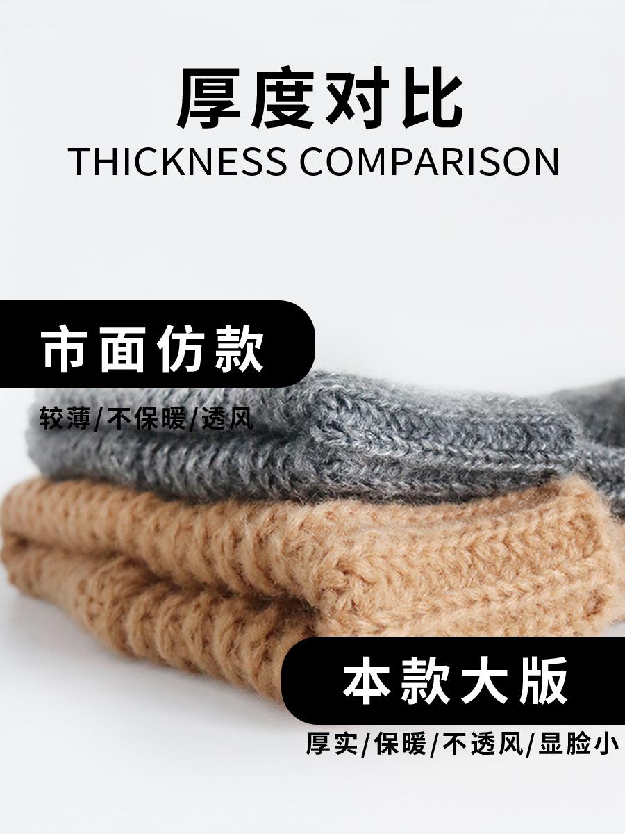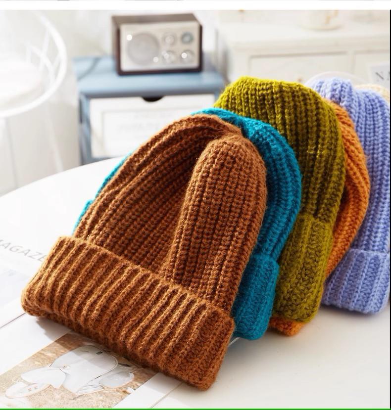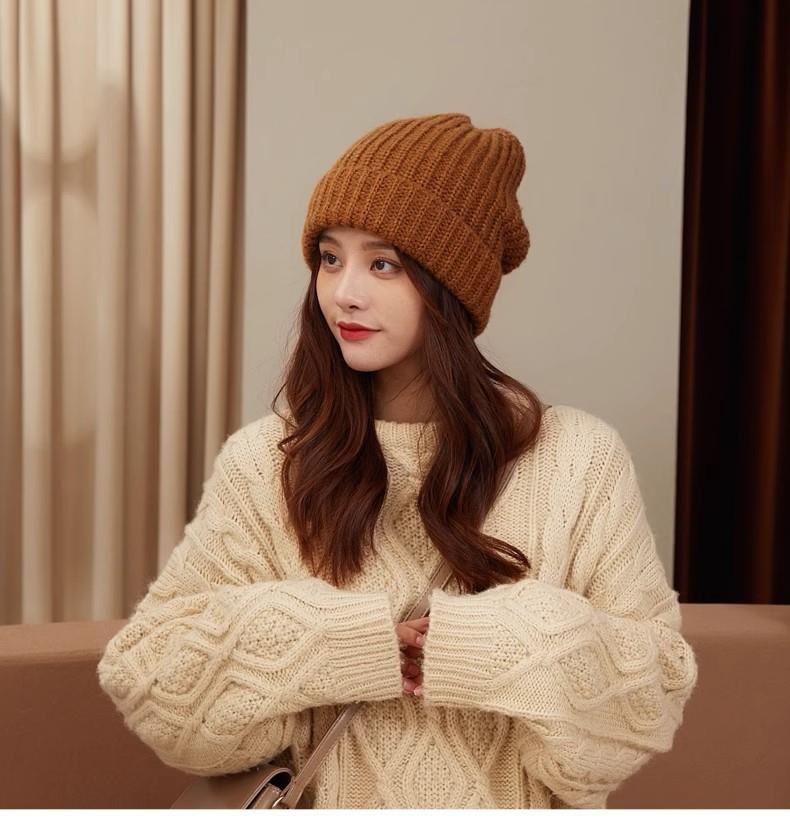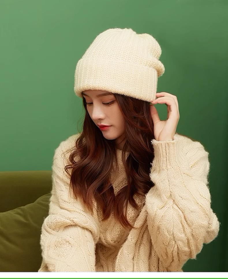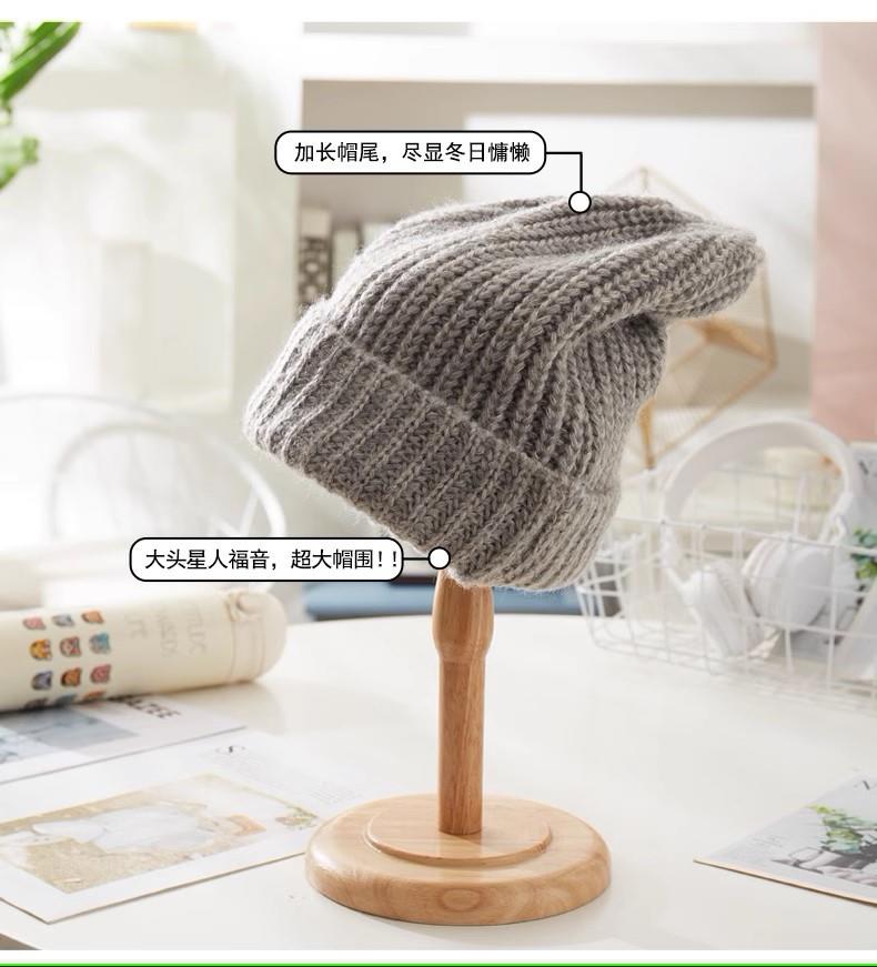 加绒加厚冷帽女冬百搭大头围毛线帽子宽松显脸小护耳粗针织堆堆帽