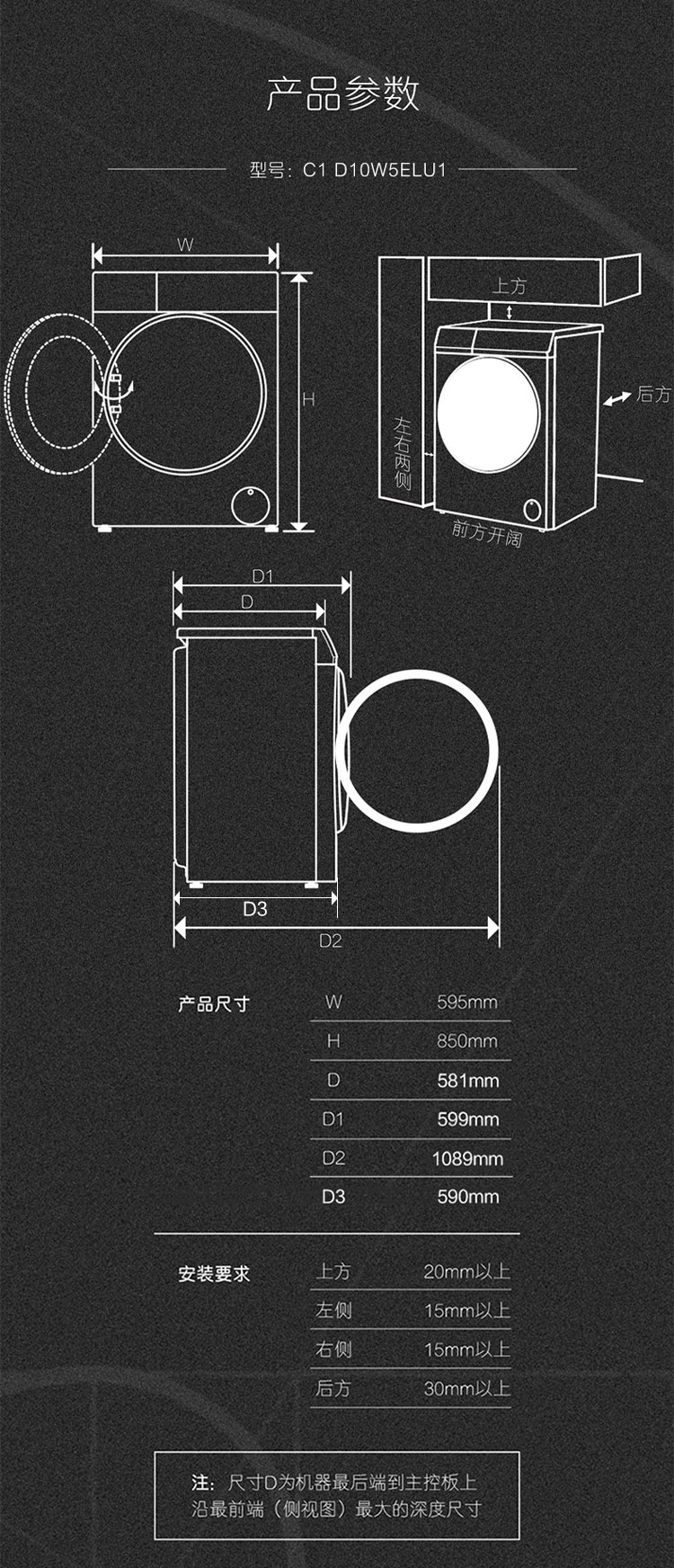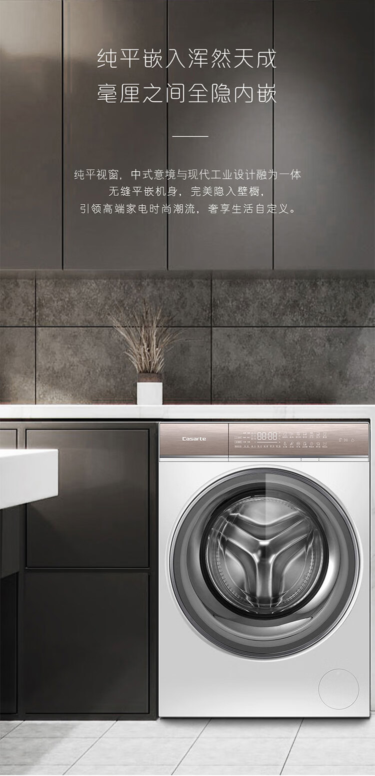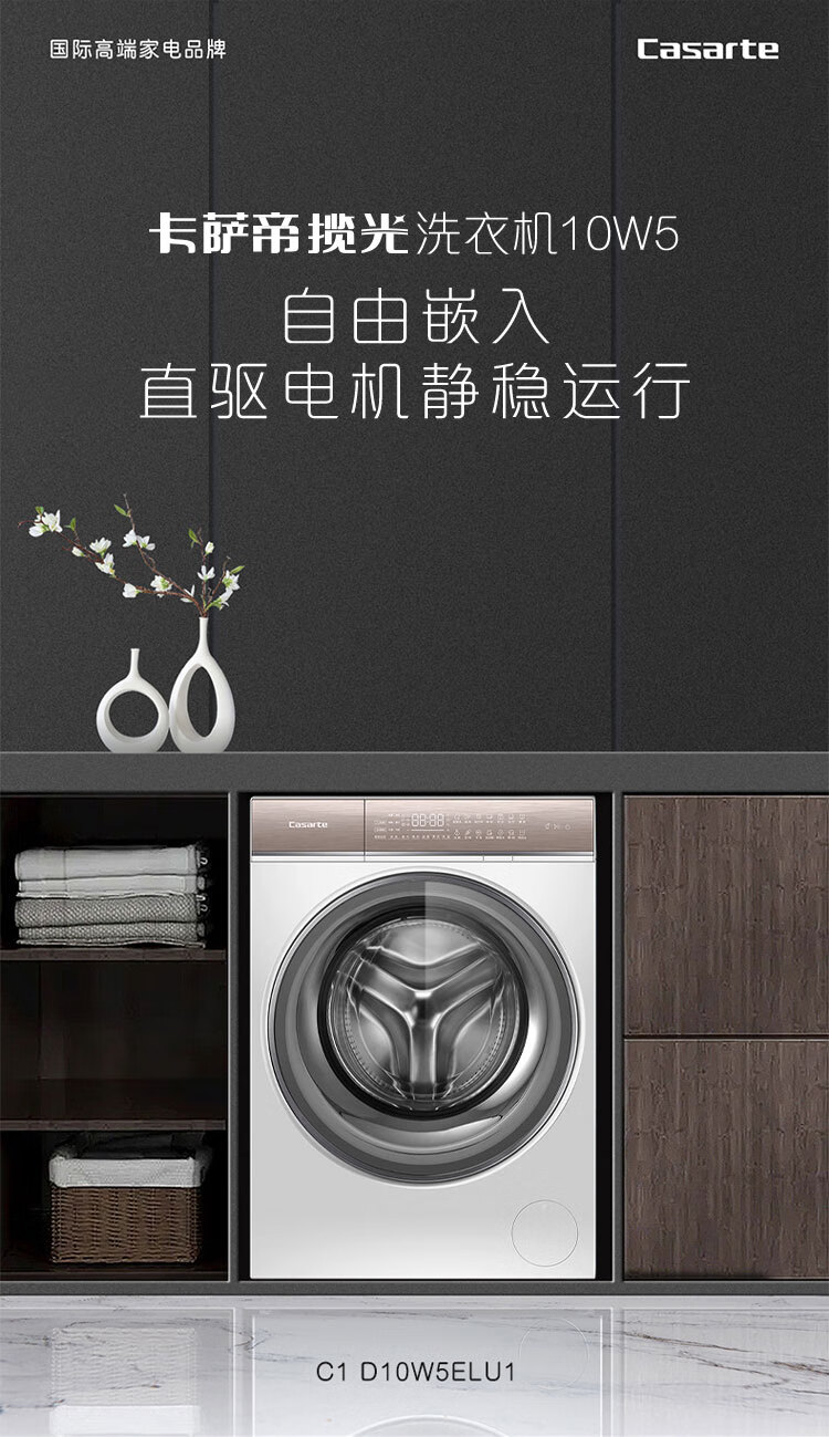 卡萨帝(Casarte)揽光W5滚筒洗衣机全自动家用 10公斤直驱变频 纯平嵌入 1.1洗净比 智能投放 紫外线除菌 D10W5ELU1单洗