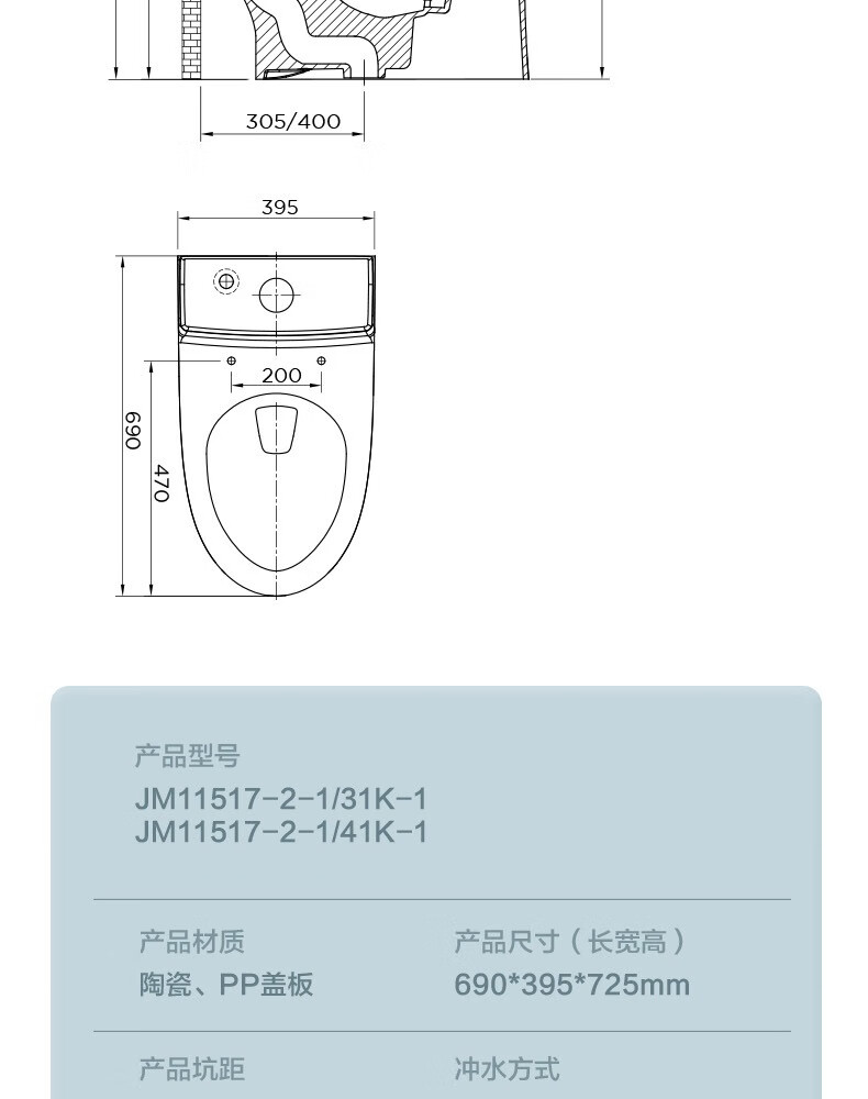 九牧(JOMOO)JM11517抗菌易洁马桶 305/300mm