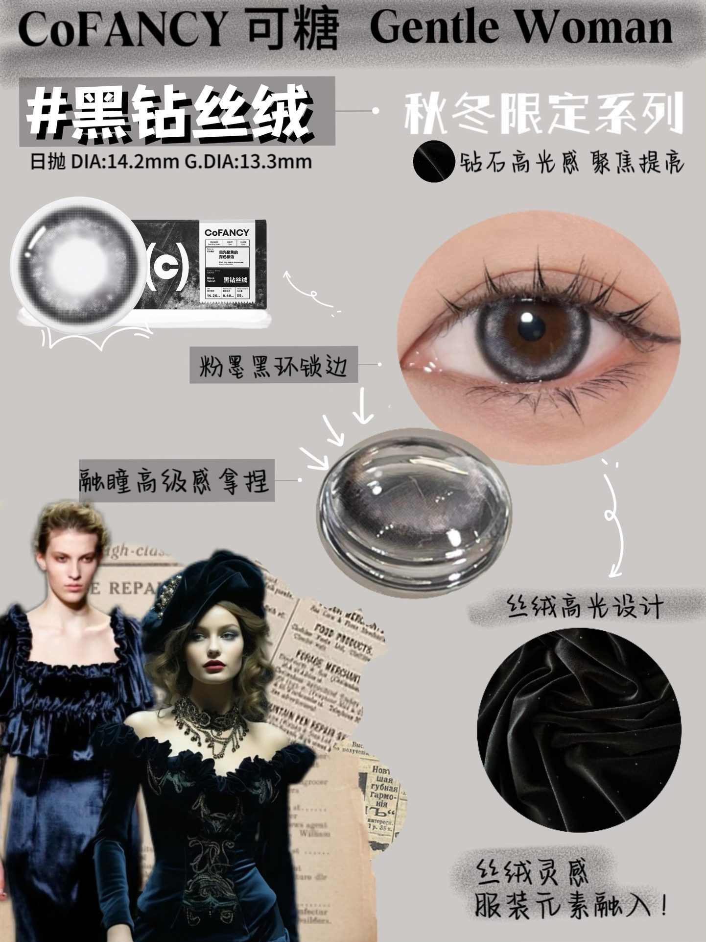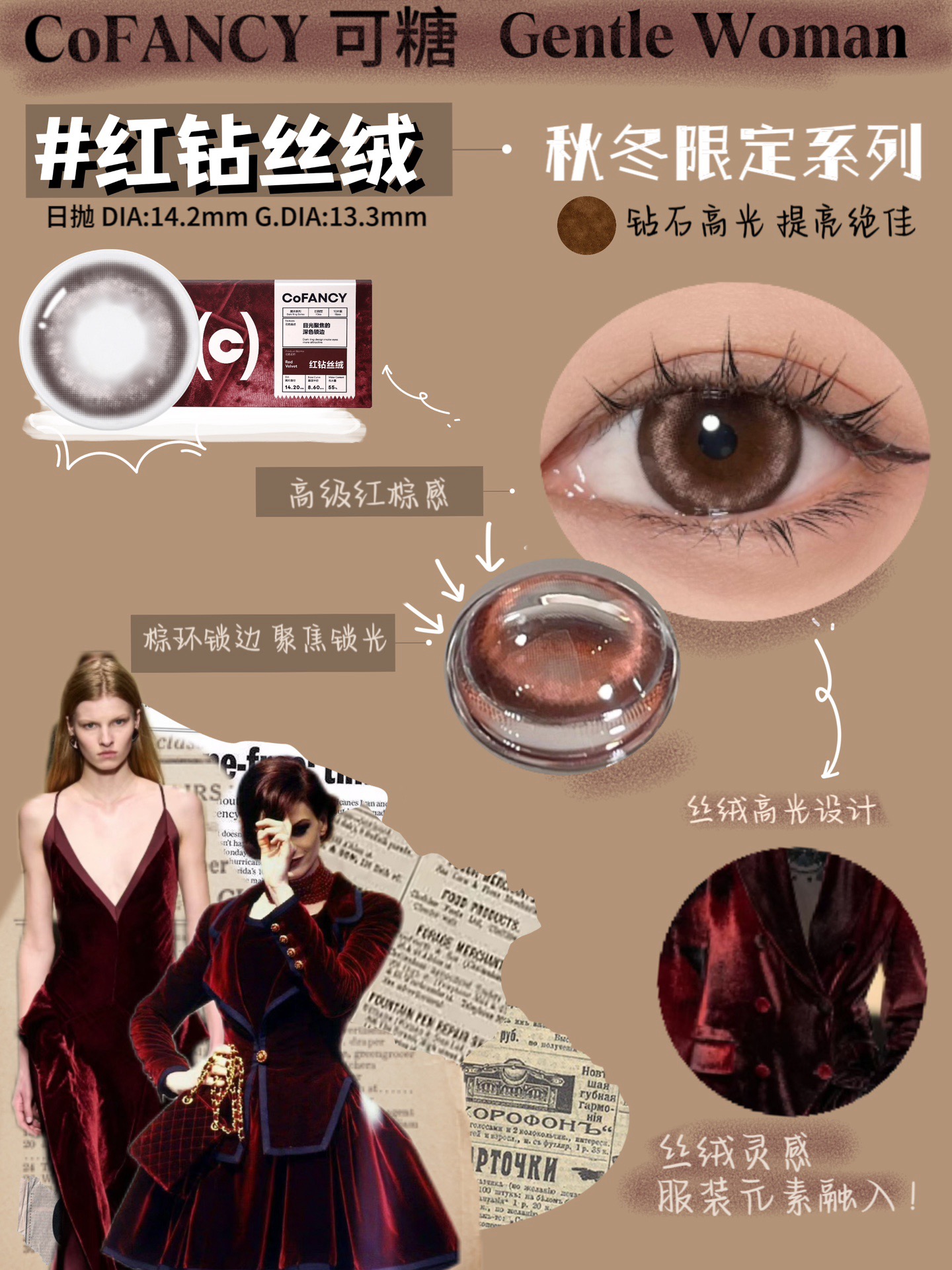 颜色: 黑钻丝绒、红钻丝绒 共2色入
