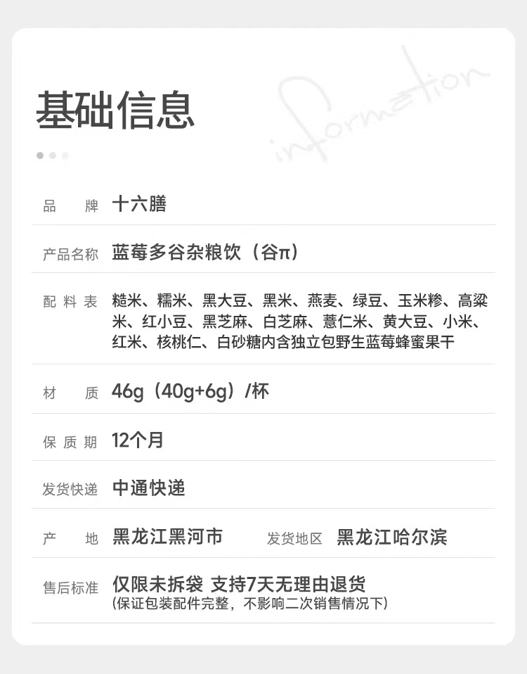 【有机】蓝莓多谷杂粮饮,46g/杯,谷物天然0添加,10余种谷物杂粮科学配比