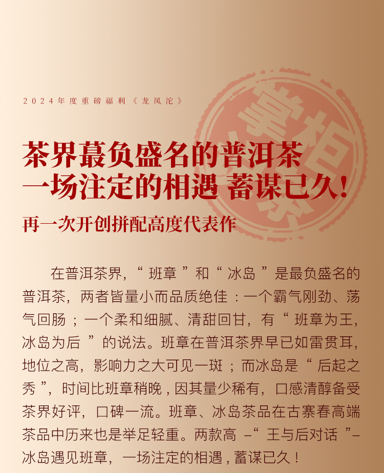 【龙凤沱】2024年班章与冰岛的完美融合 龙凤呈祥,祝您好事成双,福禄双全!成本福利价发售 500克/沱 拍5发6 拍20发25