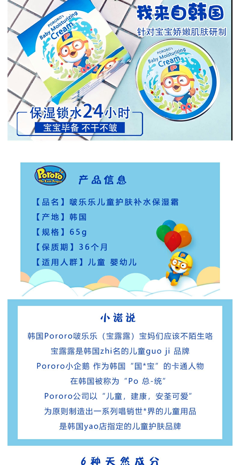【YZ】韩国Pororo/啵乐乐 宝露露铁盒面霜儿童面霜补水保湿润肤霜65g