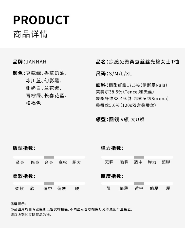 【JANNAH】夏季 新款醋酸蚕丝短袖