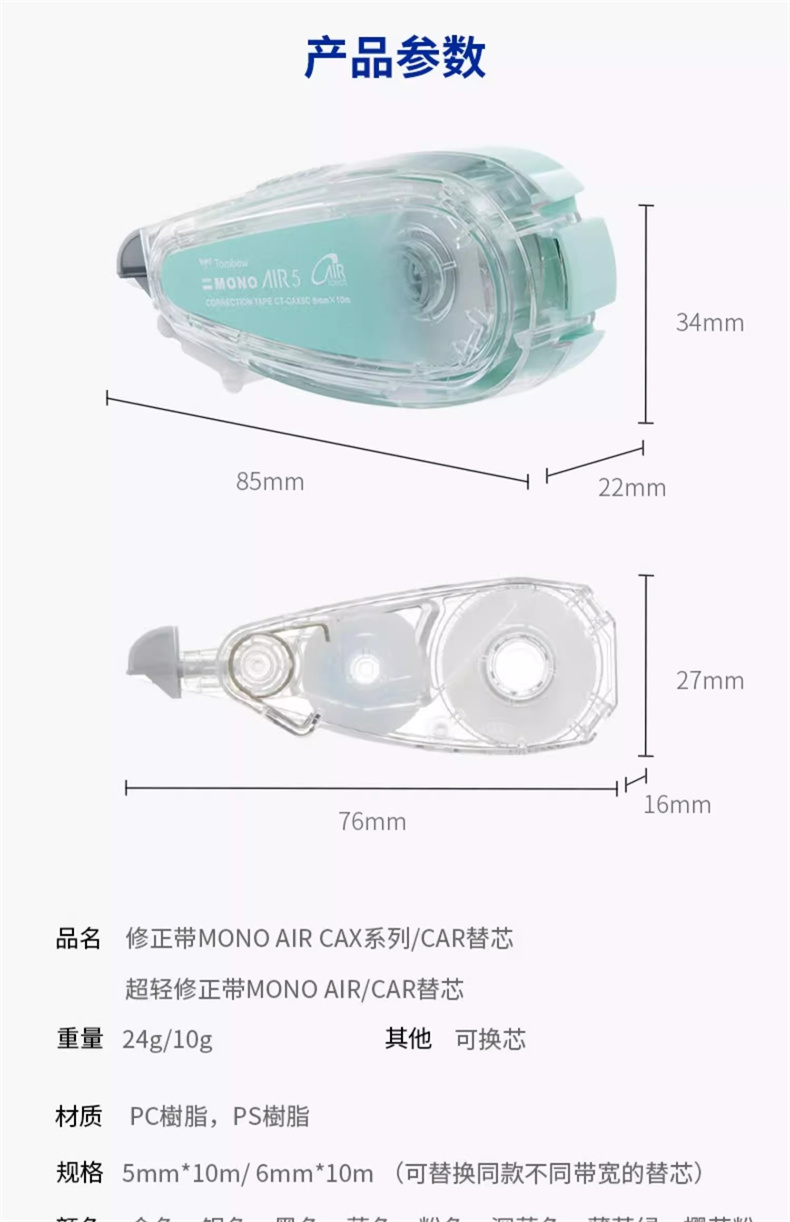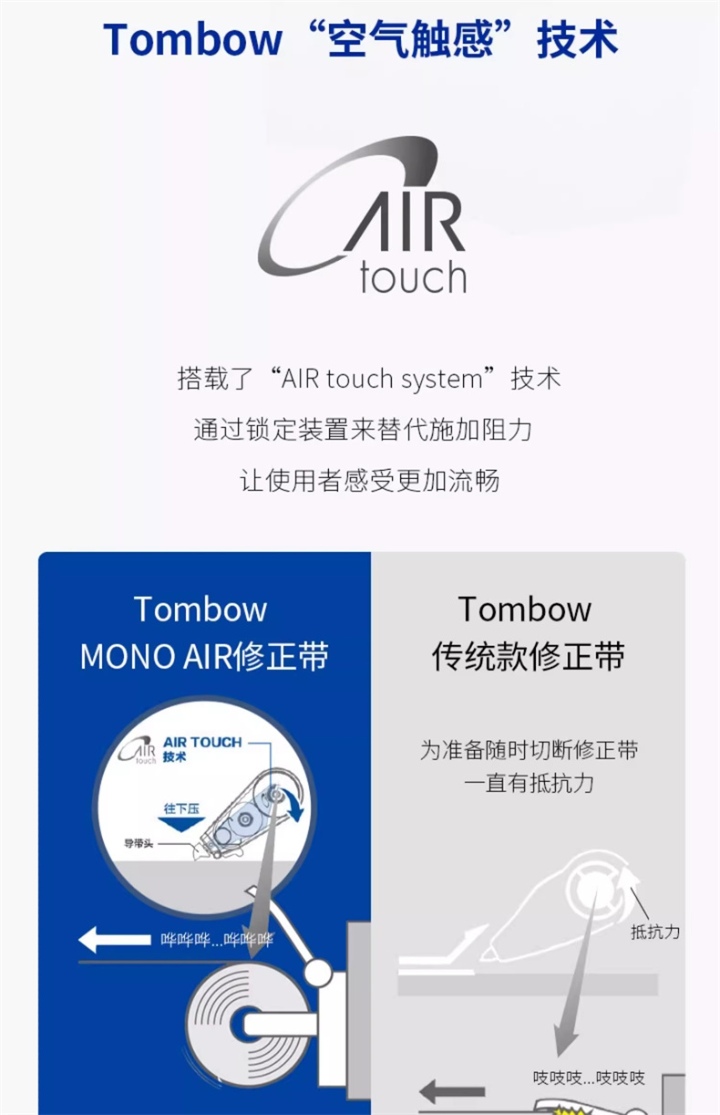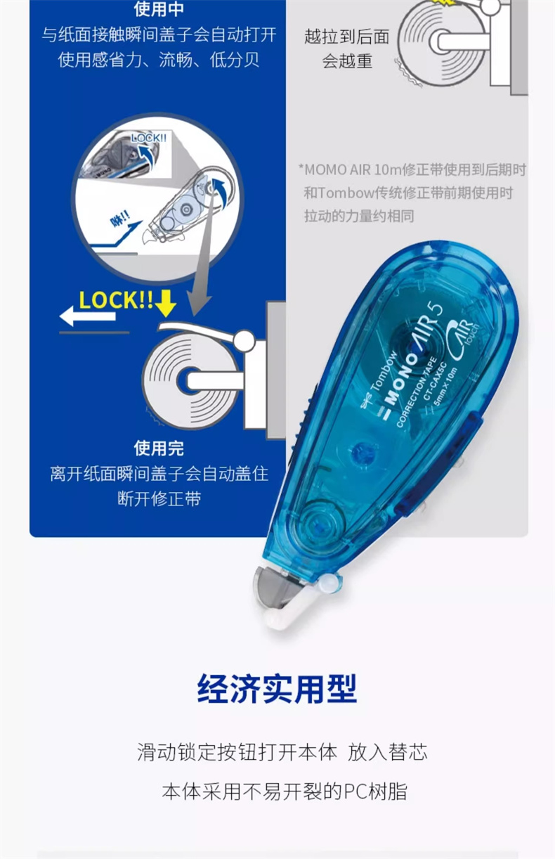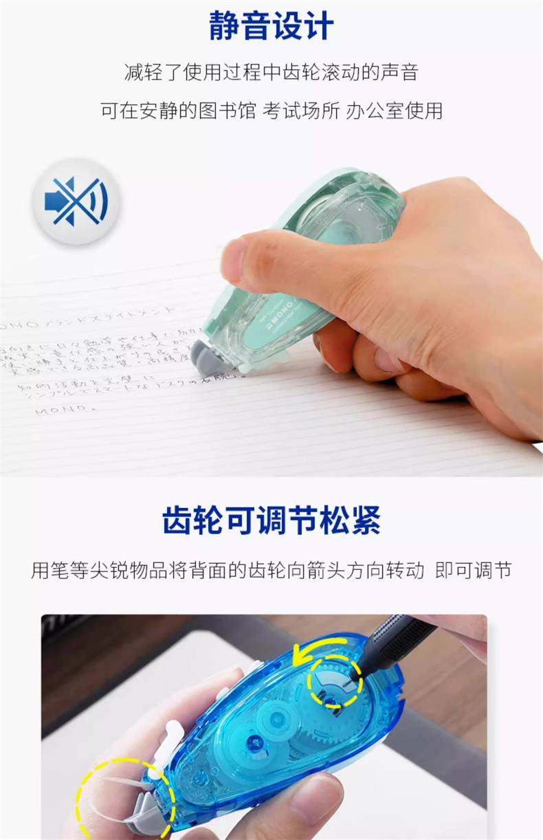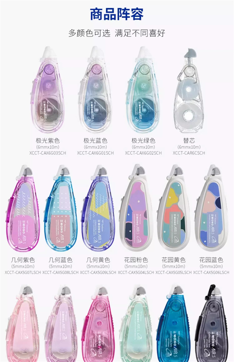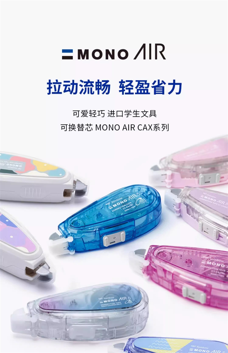 Tombow蜻蜓MONO静音修正带air款高颜值女生涂改带学生用大容量可换替芯改正带不易断带文具